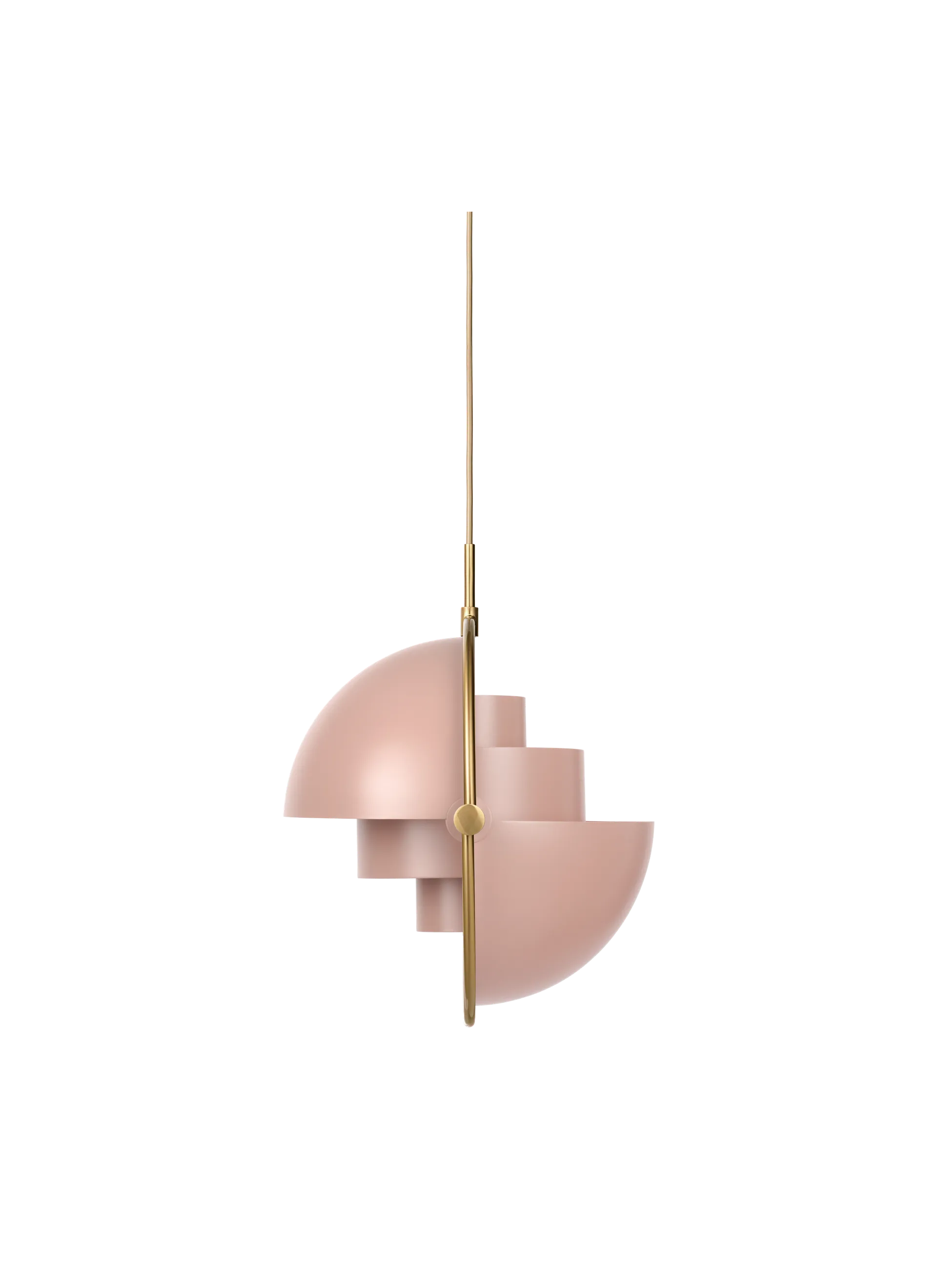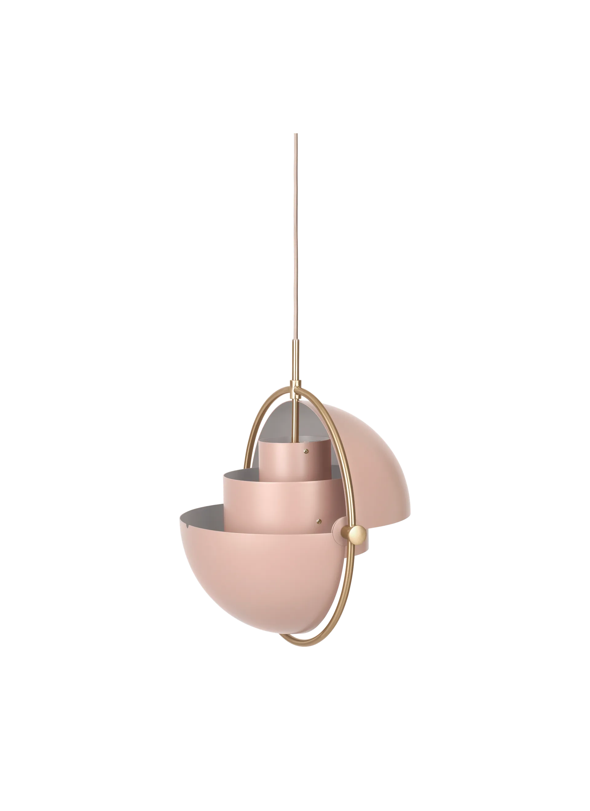 The Multi-Lite Pendant embraces the golden era of Danish design with its characteristic shape of two opposing outside, mobile shades that enable creating a personal installation and a wide range of lighting values in a room. By individually rotating the shades, the Multi-Lite Pendant can be transformed into multiple combinations where the light can be directed upwards, downwards or exude an asymmetrical art light. The Multi-Lite was first drawn in 1972 when Louis Weisdorf did an exception to his own design custom of using multiple repeating elements. Instead, it reflects his passion for diversity. Two cylindrical shapes lay the foundation of the lamp and a metal ring encompasses it and anchors the two quarter-spherical shades, which ultimately completes a picture of an iconic design with multiple purposes. The Multi-Lite Pendant has a timeless expression that fits into any domestic setting.