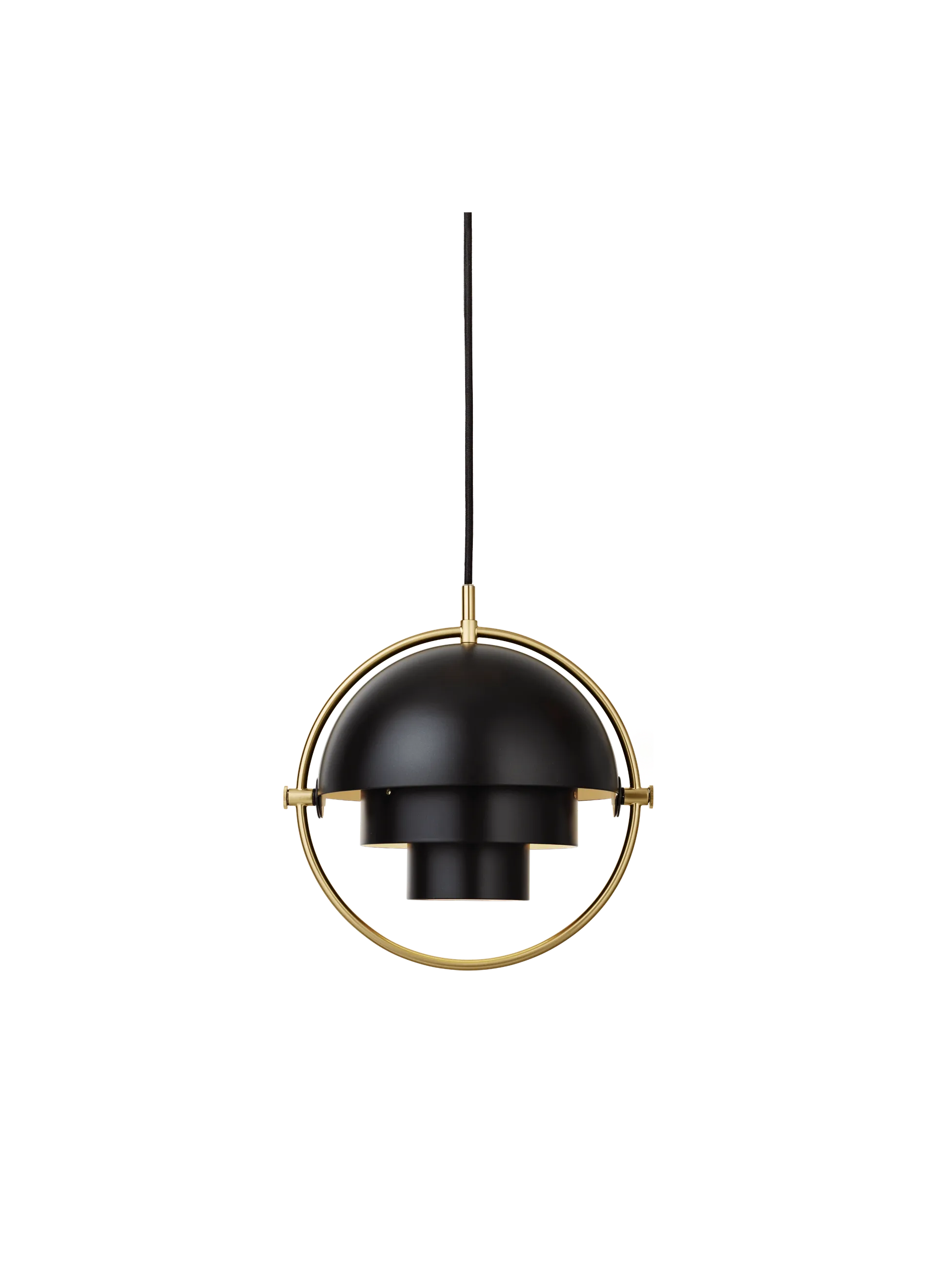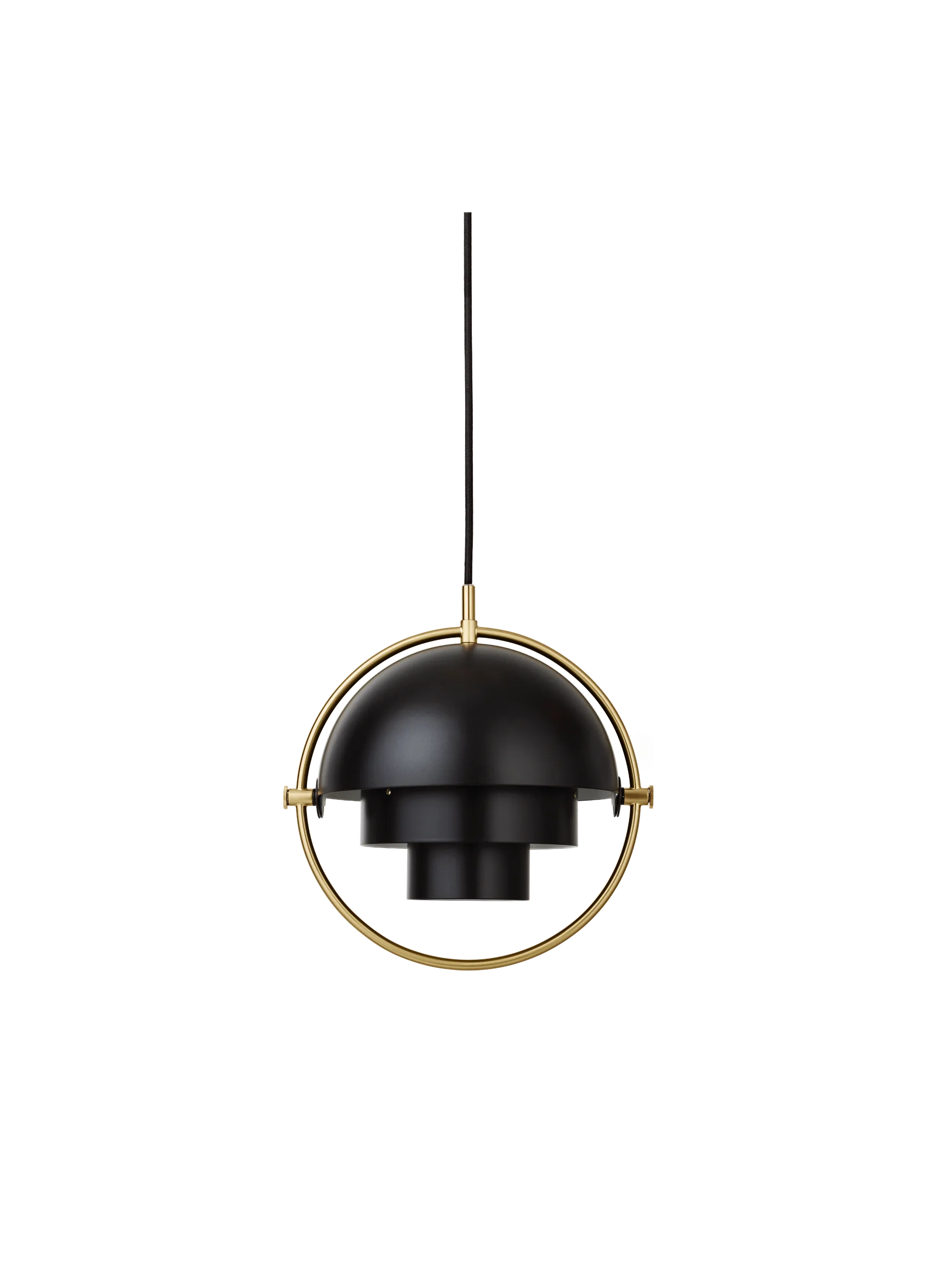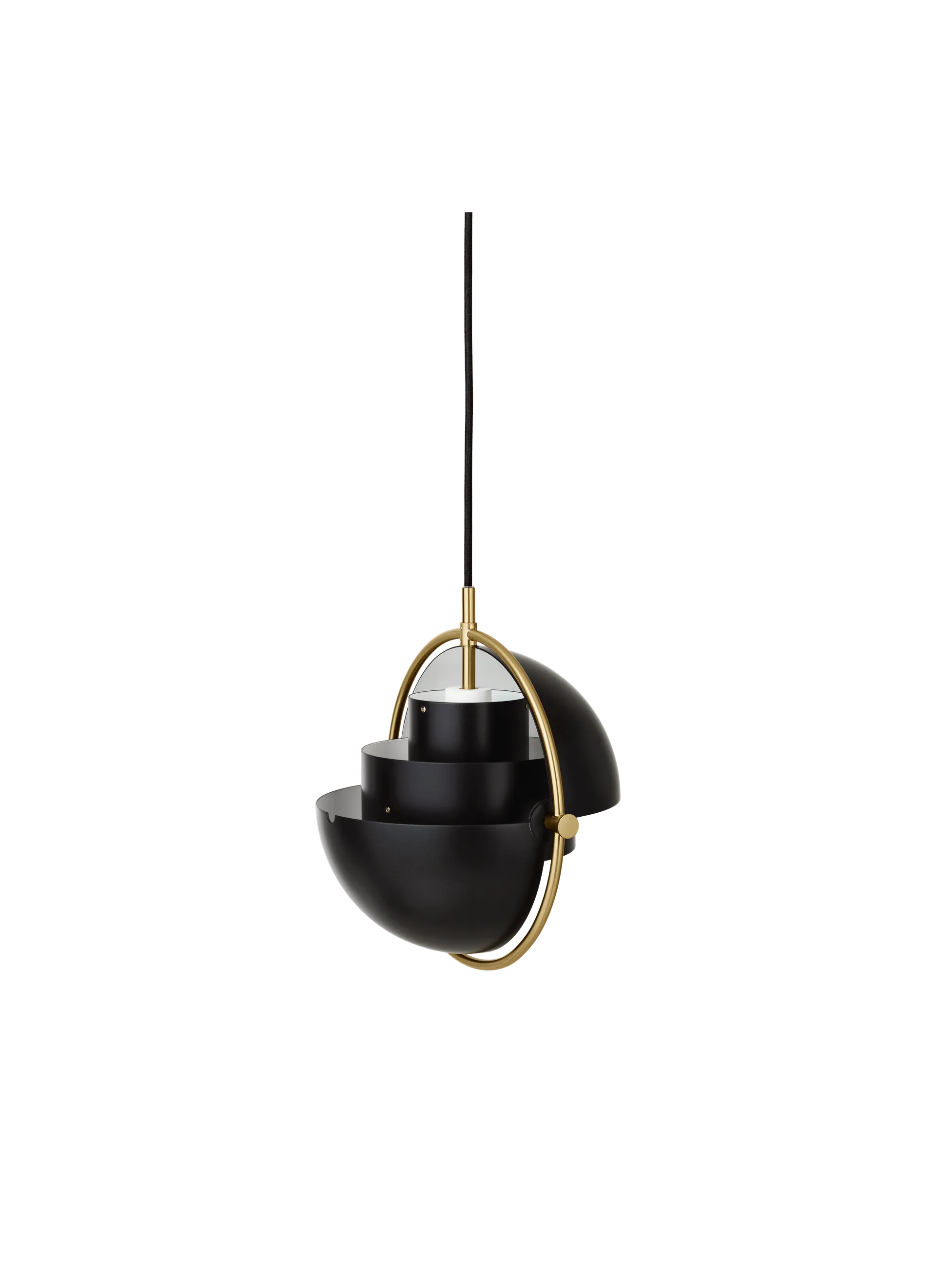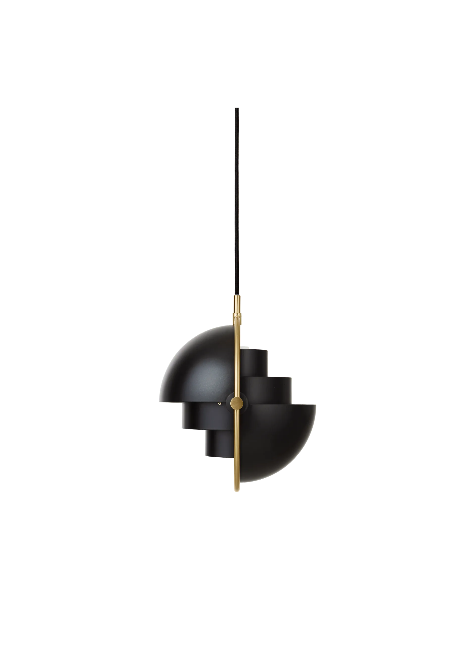 The Multi-Lite Pendant embraces the golden era of Danish design with its characteristic shape of two opposing outside, mobile shades that enable creating a personal installation and a wide range of lighting values in a room. By individually rotating the shades, the Multi-Lite Pendant can be transformed into multiple combinations where the light can be directed upwards, downwards or exude an asymmetrical art light. The Multi-Lite was first drawn in 1972 when Louis Weisdorf did an exception to his own design custom of using multiple repeating elements. Instead, it reflects his passion for diversity. Two cylindrical shapes lay the foundation of the lamp and a metal ring encompasses it and anchors the two quarter-spherical shades, which ultimately completes a picture of an iconic design with multiple purposes. The Multi-Lite Pendant has a timeless expression that fits into any domestic setting.
