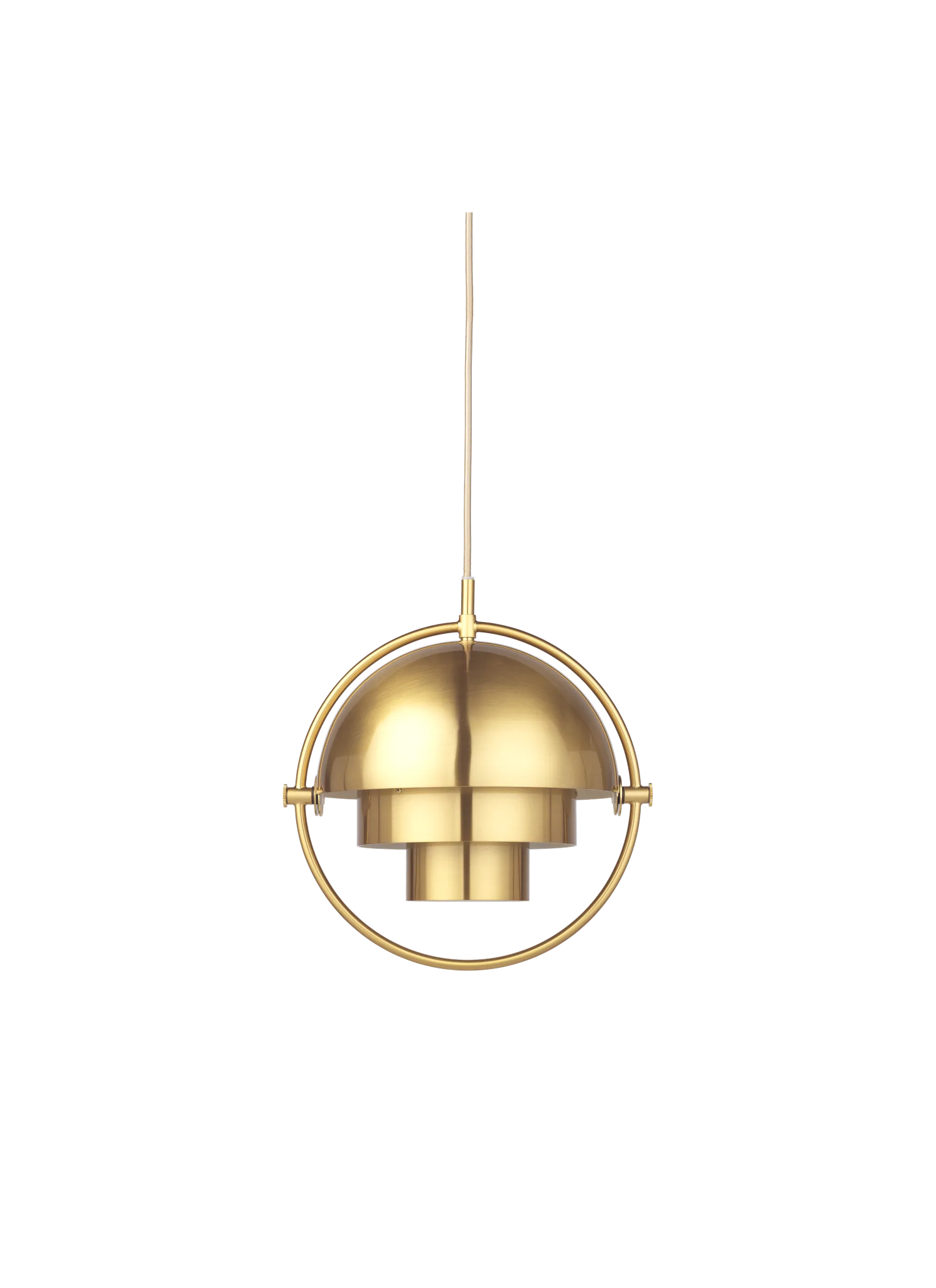 The Multi-Lite Pendant embraces the golden era of Danish design with its characteristic shape of two opposing outside, mobile shades that enable creating a personal installation and a wide range of lighting values in a room. By individually rotating the shades, the Multi-Lite Pendant can be transformed into multiple combinations where the light can be directed upwards, downwards or exude an asymmetrical art light. The Multi-Lite was first drawn in 1972 when Louis Weisdorf did an exception to his own design custom of using multiple repeating elements. Instead, it reflects his passion for diversity. Two cylindrical shapes lay the foundation of the lamp and a metal ring encompasses it and anchors the two quarter-spherical shades, which ultimately completes a picture of an iconic design with multiple purposes. The Multi-Lite Pendant has a timeless expression that fits into any domestic setting.