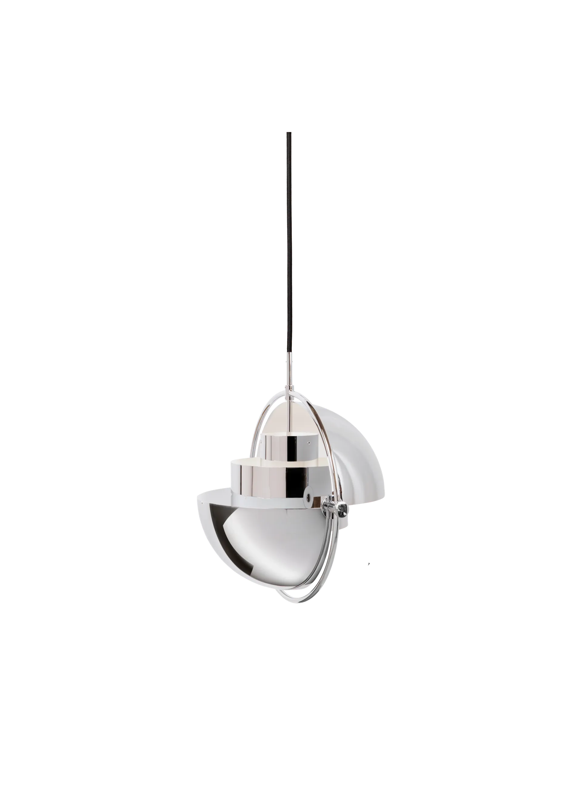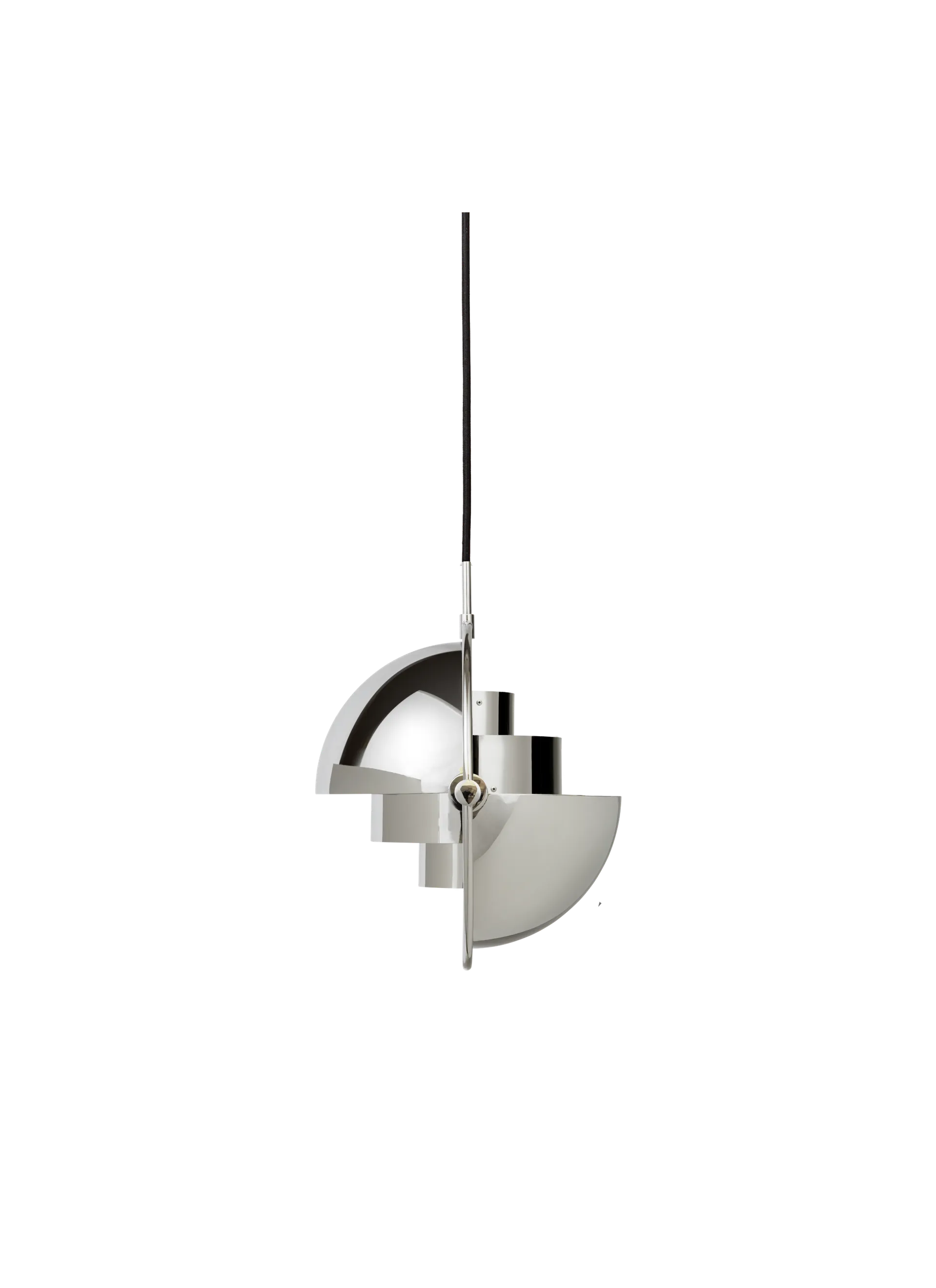 The Multi-Lite Pendant embraces the golden era of Danish design with its characteristic shape of two opposing outside, mobile shades that enable creating a personal installation and a wide range of lighting values in a room. By individually rotating the shades, the Multi-Lite Pendant can be transformed into multiple combinations where the light can be directed upwards, downwards or exude an asymmetrical art light. The Multi-Lite was first drawn in 1972 when Louis Weisdorf did an exception to his own design custom of using multiple repeating elements. Instead, it reflects his passion for diversity. Two cylindrical shapes lay the foundation of the lamp and a metal ring encompasses it and anchors the two quarter-spherical shades, which ultimately completes a picture of an iconic design with multiple purposes. The Multi-Lite Pendant has a timeless expression that fits into any domestic setting.