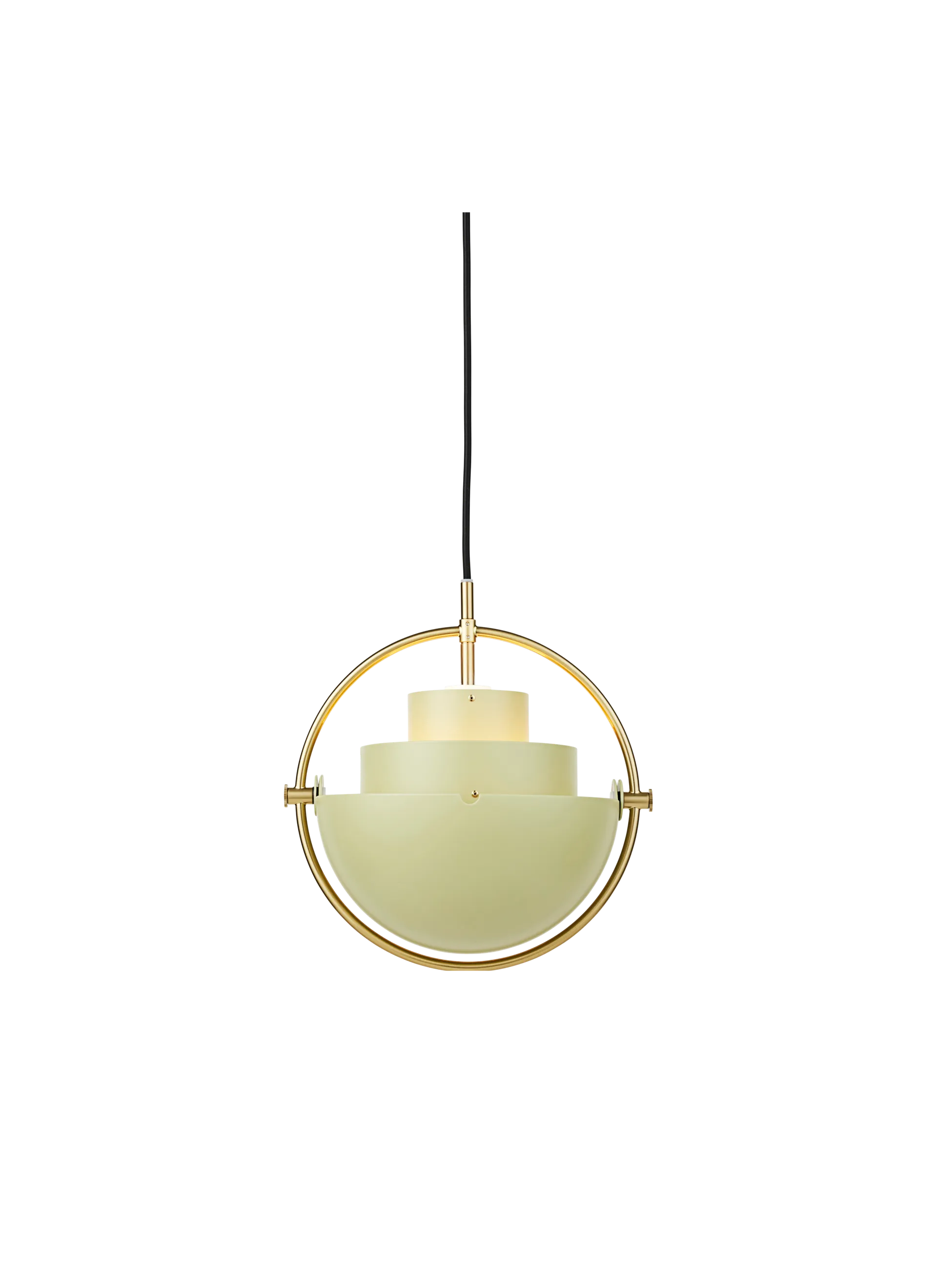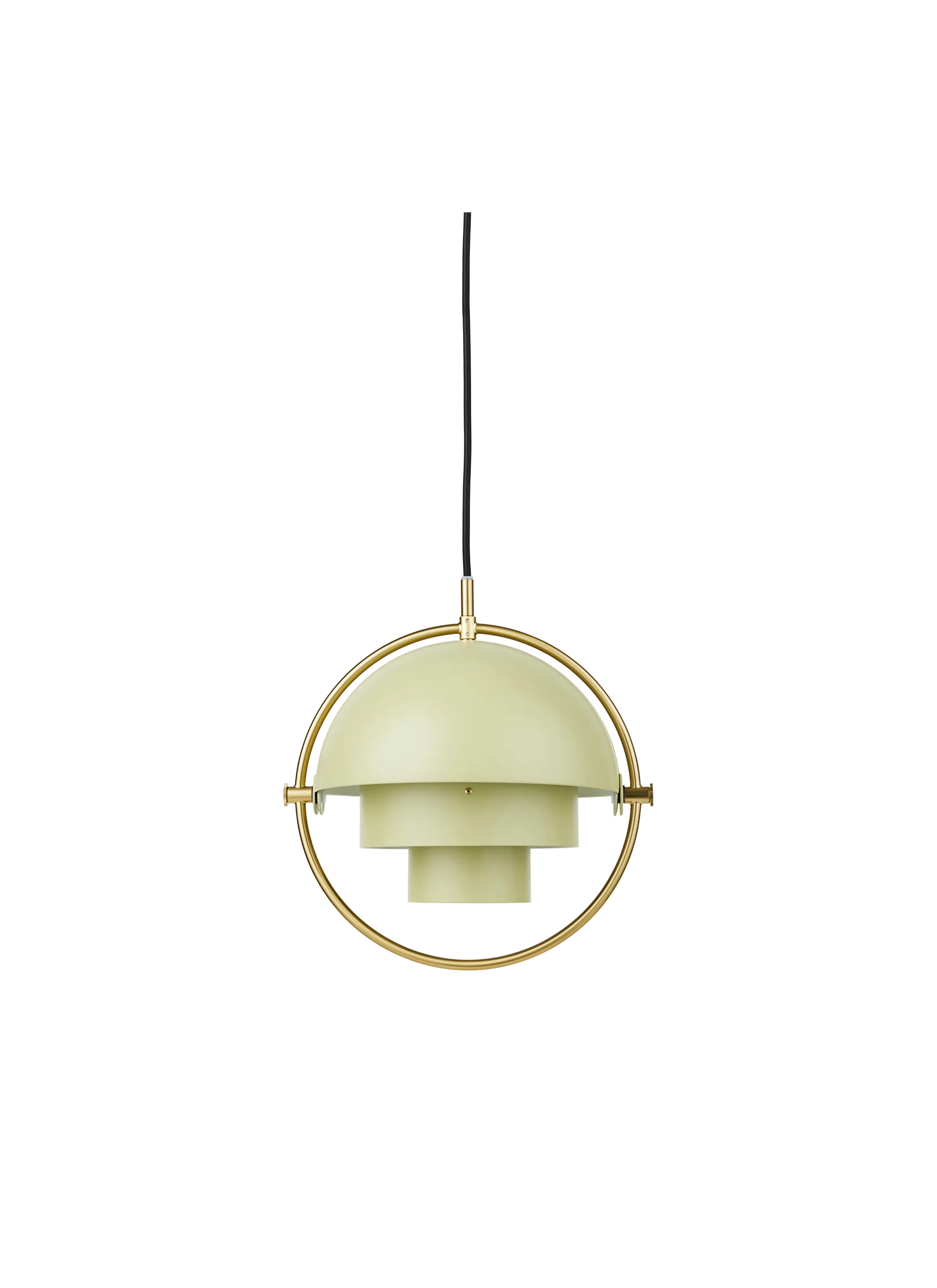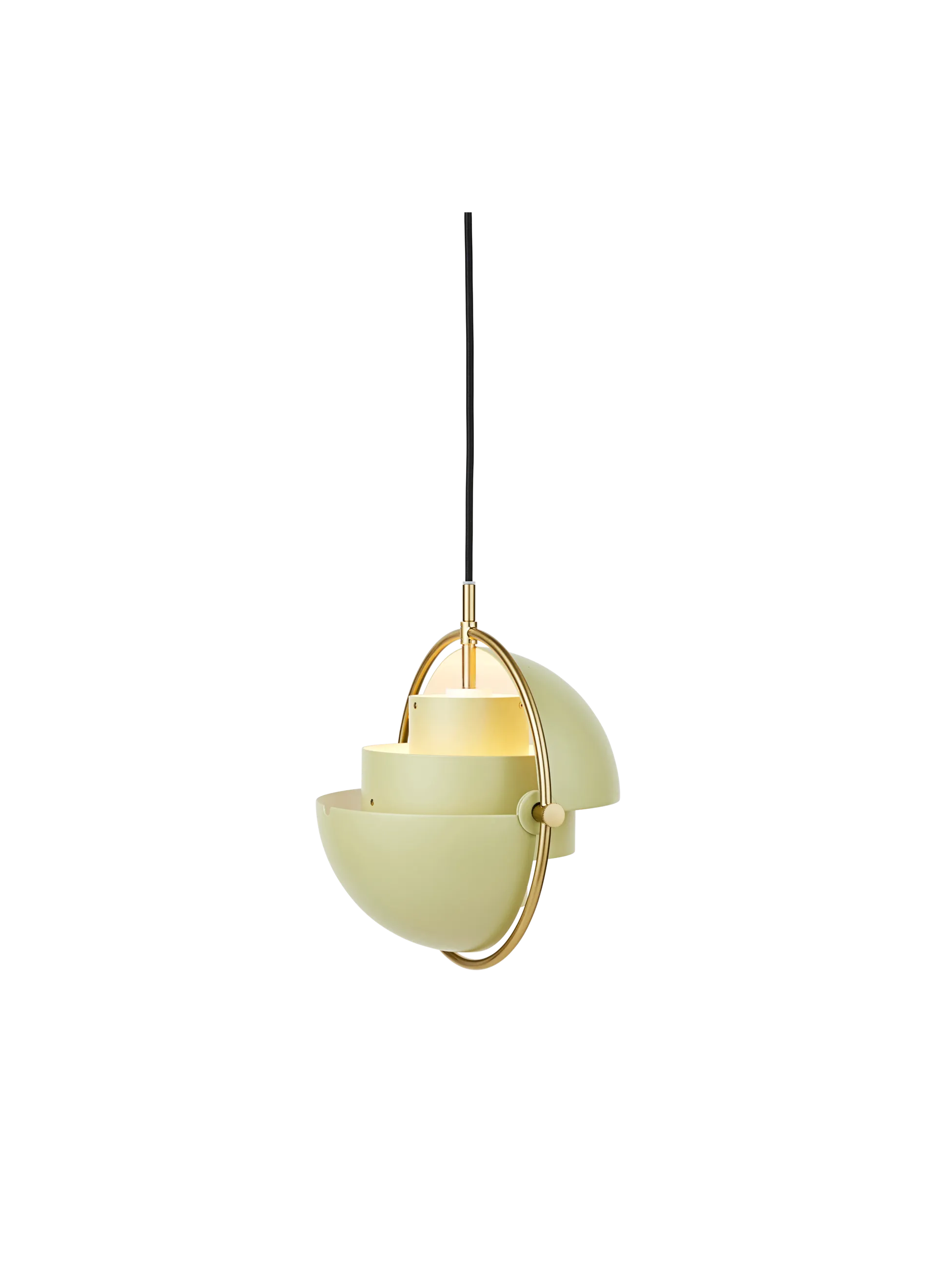 The Multi-Lite Pendant embraces the golden era of Danish design with its characteristic shape of two opposing outside, mobile shades that enable creating a personal installation and a wide range of lighting values in a room. By individually rotating the shades, the Multi-Lite Pendant can be transformed into multiple combinations where the light can be directed upwards, downwards or exude an asymmetrical art light. The Multi-Lite was first drawn in 1972 when Louis Weisdorf did an exception to his own design custom of using multiple repeating elements. Instead, it reflects his passion for diversity. Two cylindrical shapes lay the foundation of the lamp and a metal ring encompasses it and anchors the two quarter-spherical shades, which ultimately completes a picture of an iconic design with multiple purposes. The Multi-Lite Pendant has a timeless expression that fits into any domestic setting.