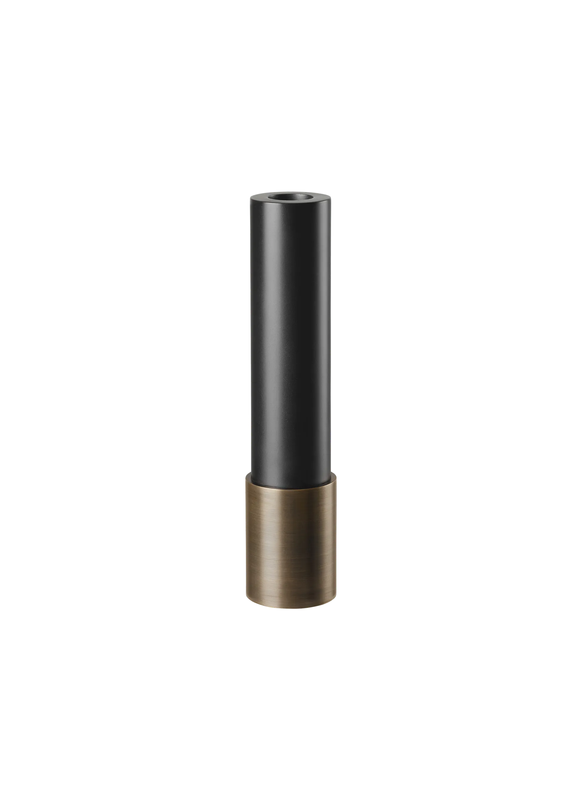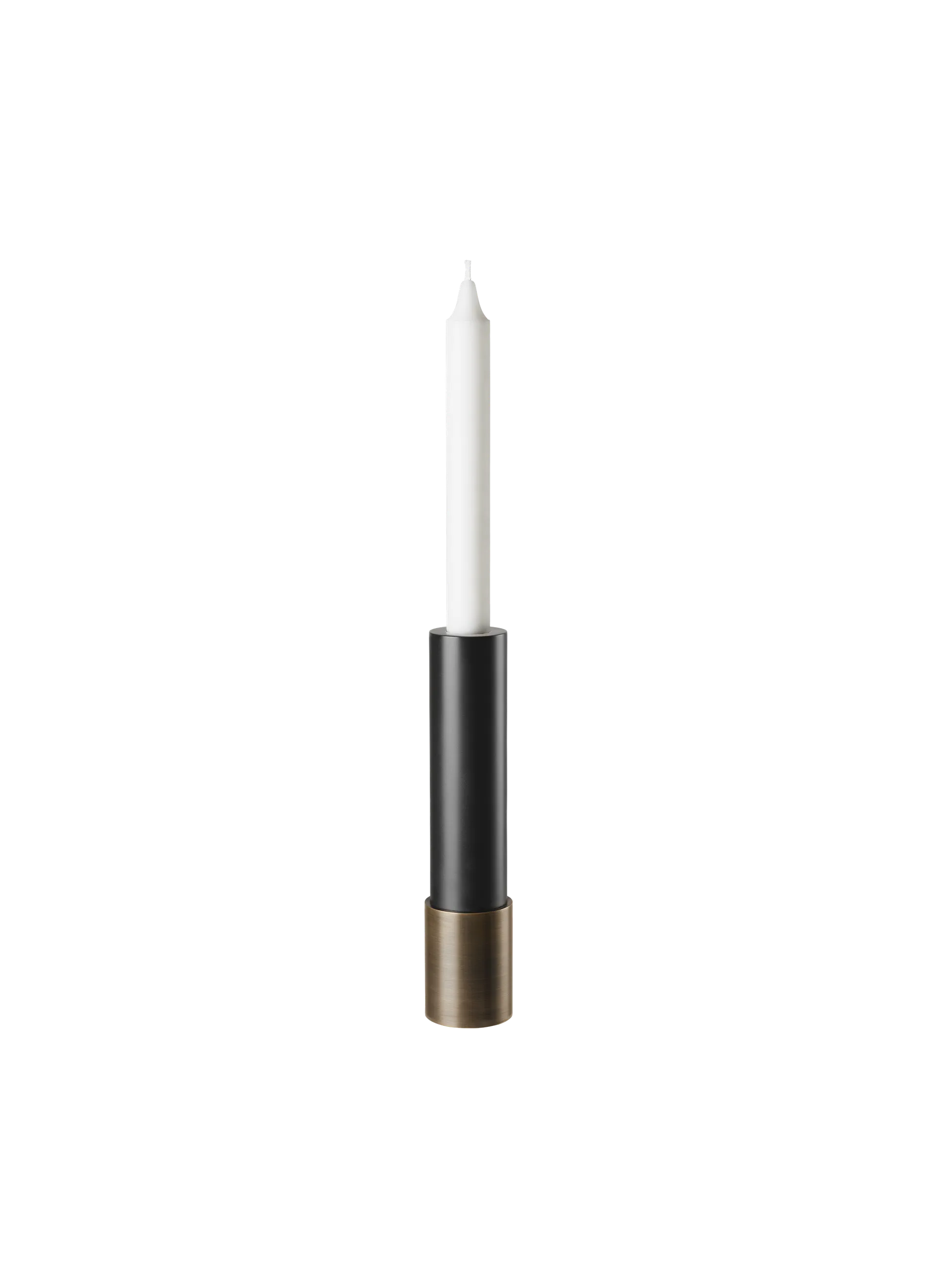 With its simple yet elegant silhouette, the Candlestick by Space Copenhagen unifies the industrial materials of burnished steel and dark antique brass. The heaviness of the candlestick is an unexpected contrast to the light design expression, giving it a sense of extravagance. The Candlestick is characterised by its contrasts, but with materials beautifully ageing together, they are united in a magic way. As a collection in five different heights, the Candlestick can be used as a striking singular object or in a composition of several. Arrange multiples in a strict line or in a cube formation, or in a random and more playful manner to fulfil its flexibility of being an elegant or casual candlestick.