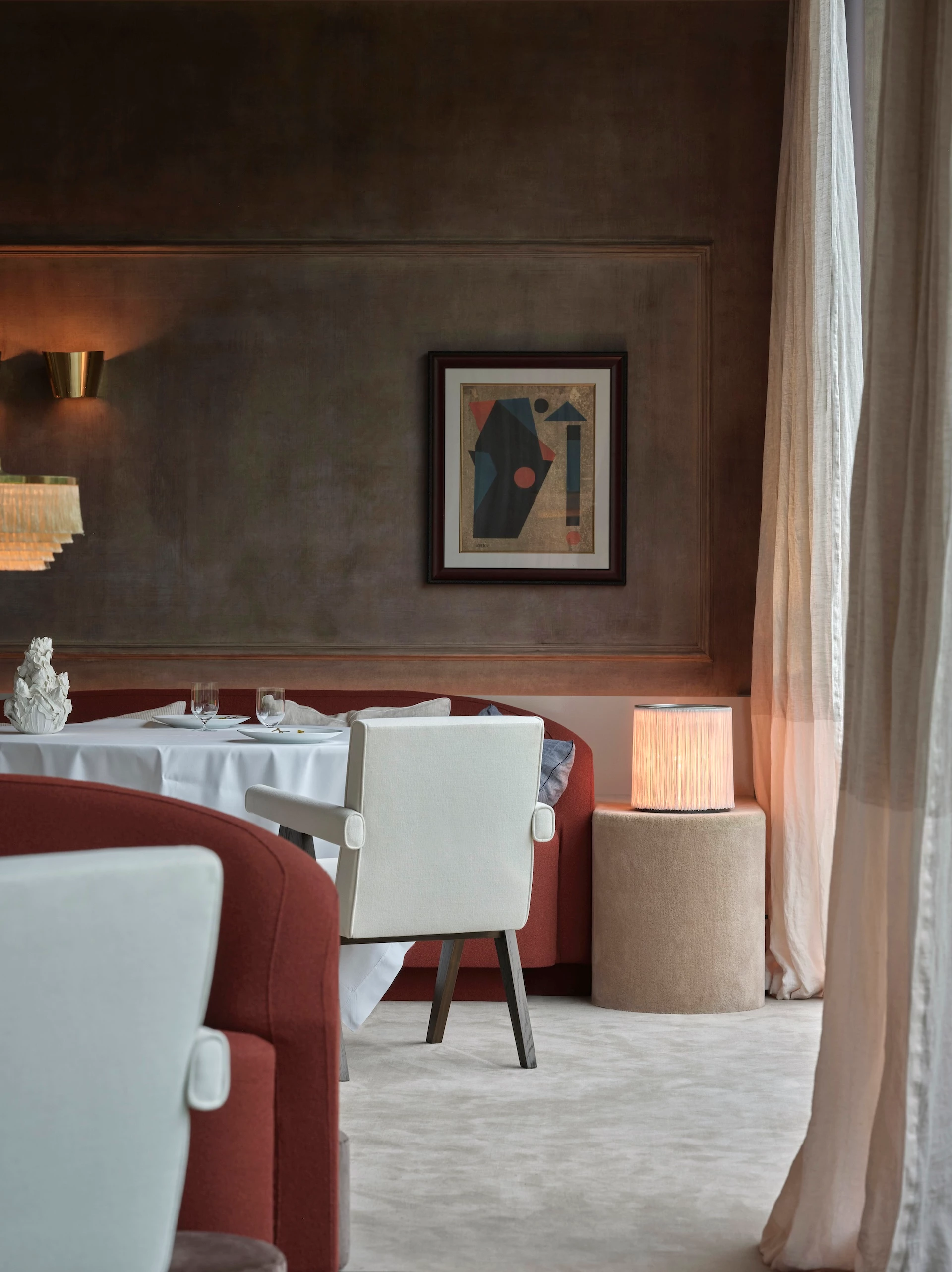 FOR MAISON COLETTE, THE RESTAURANT AND BOUTIQUE HOTEL BY TWO-MICHELIN-STARRED CHEF THIJS VERVLOET, INTERIOR DESIGN DUO GRAIN DESIGNOFFICE HAVE CRAFTED A WARM HARMONY OF CLASSIC ARCHITECTURE AND MODERN LIGHTING ICONS. BLENDING GRAIN’S OWN VINTAGE COLLECTION WITH GUBI’S DESIGNS BY PAAVO TYNELL AND GIANFRANCO FRATTINI, THE SPACE EXUDES TIMELESS SOPHISTICATION. FROM THE PRIVATE DINING ROOM TO THE TRANQUIL GUEST SUITES, EVERY DETAIL IS CURATED TO ELEVATE AN UNFORGETTABLE CULINARY EXPERIENCE.