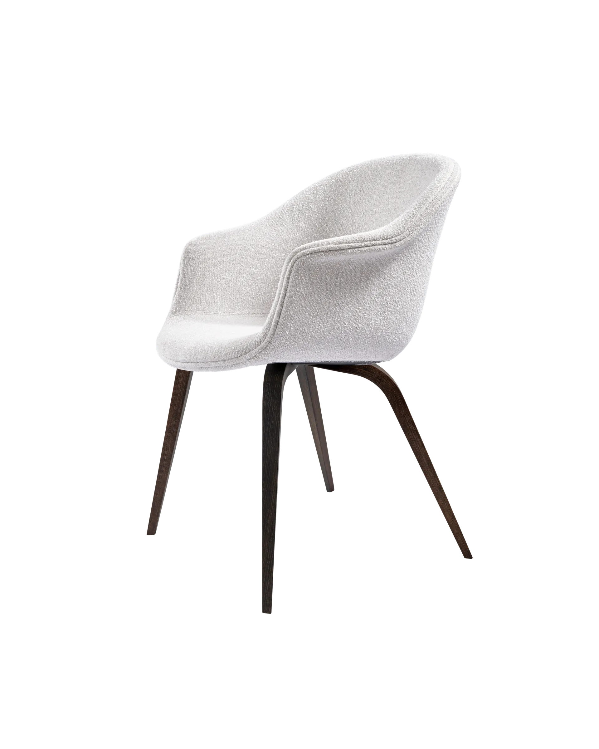 The Bat Dining Chair is created with a Scandinavian approach to crafts, simplicity and functionalism by Danish-Italian design-duo GamFratesi. The embracing shell with armrests equally embodies both aesthetics and comfort while carrying strong references to the interesting and distinctive shape of a bat’s wingspan. The wide range of shell colours, upholstery options and diverse bases provides for a personalised expression that makes the Bat Dining Chair fit perfectly into a variety of public and private contexts. Due to its unique design, the textile of the fully upholstered Bat Dining Chair can be changed with time to give the chair a different expression and new life to the interior decoration.