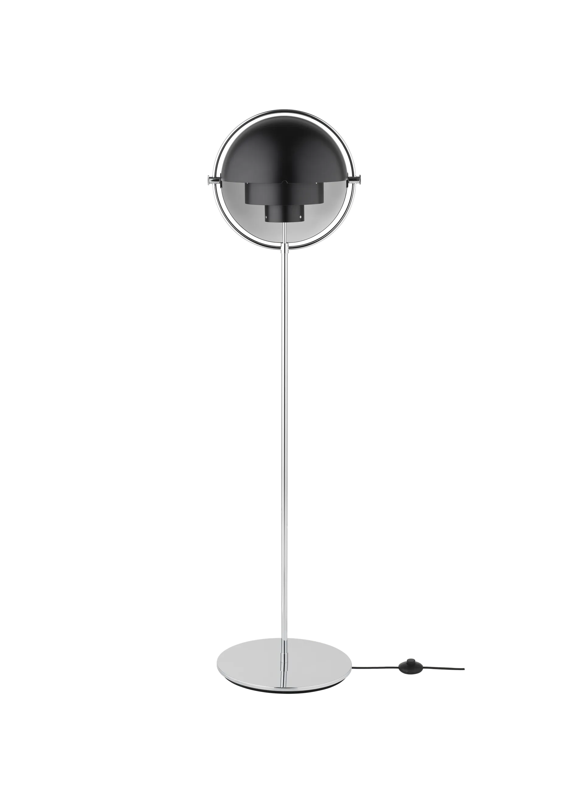 Louis Weisdorf’s contemporary and classic design philosophy is echoed in the Multi-Lite Floor Lamp. With its timeless elegance, distinctive style and unique multi-functionality, the Multi-Lite Floor Lamp brings life and character to any interior space. The Multi-Lite lamp design is created in 1972 by the Danish architect Louis Weisdorf with the aim of reflecting his passion for diversity. Due to its unique design, the two opposing outside shades can individually be rotated and transformed into multiple combinations and encourage for personal installations and expressions whenever desired. Always with Weisdorf’s design philosophy in mind, the light can be directed upwards, downwards or exude an asymmetric art light without exposing the light source. Two cylindrical shapes lay the foundation of the lamp and a metal ring encompasses it and anchors the two quarter-spherical shades, which ultimately completes a picture of an iconic design with multiple purposes. The decorative Multi-Lite Floor Lamp is an evolution of the pendant design and perfectly suited for creating a festive ambient light in the domestic living room. "With the Multi-Lite Floor Lamp, I get after almost half a century, yet another of my original wishes fulfilled – namely a movable edition. This gives the lamp design even more possibilities for an exciting location." - Louis Weisdorf