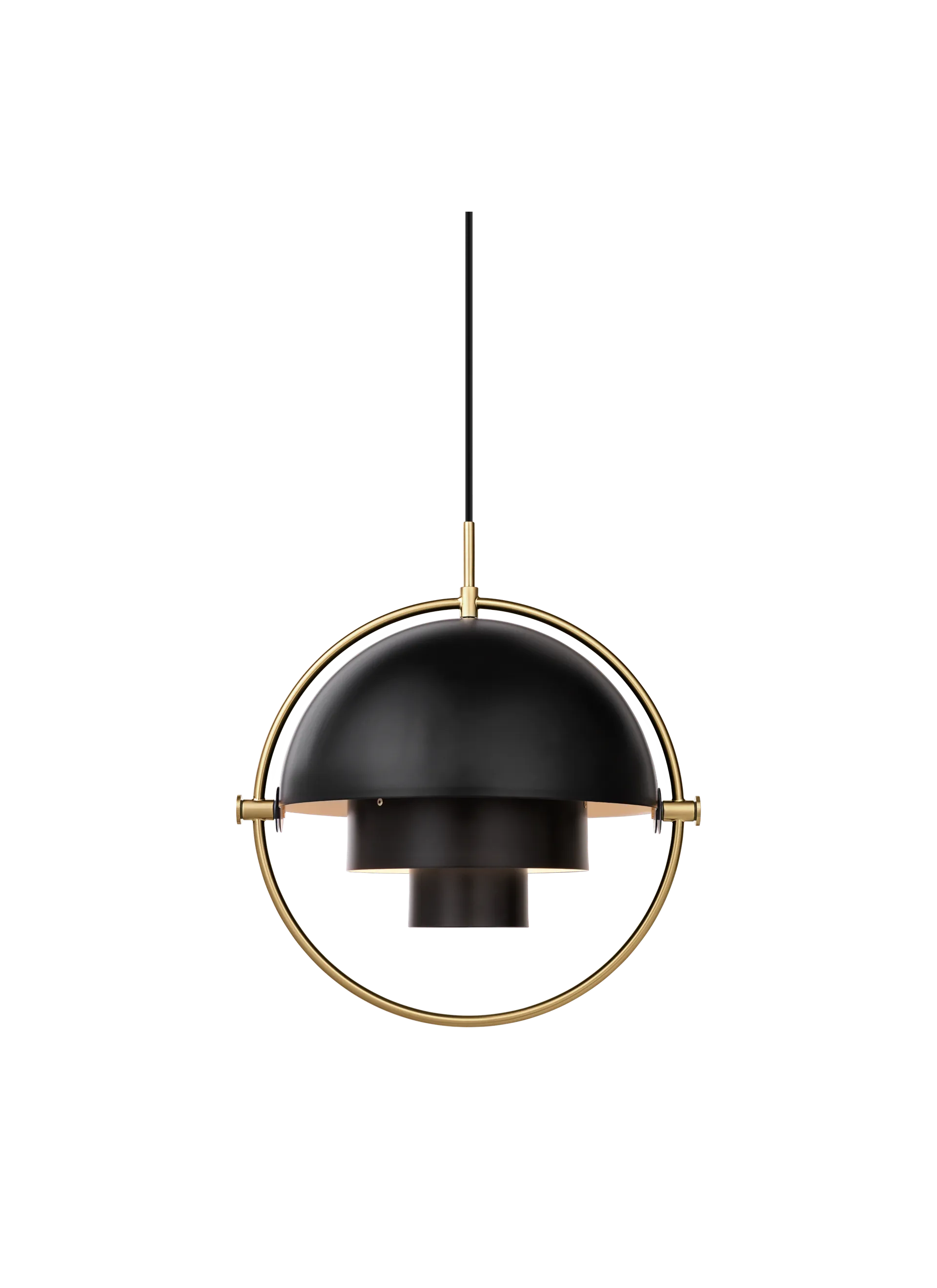 The Multi-Lite Pendant embraces the golden era of Danish design with its characteristic shape of two opposing outside, mobile shades that enable creating a personal installation and a wide range of lighting values in a room. By individually rotating the shades, the Multi-Lite Pendant can be transformed into multiple combinations where the light can be directed upwards, downwards or exude an asymmetrical art light. The Multi-Lite was first drawn in 1972 when Louis Weisdorf did an exception to his own design custom of using multiple repeating elements. Instead, it reflects his passion for diversity. Two cylindrical shapes lay the foundation of the lamp and a metal ring encompasses it and anchors the two quarter-spherical shades, which ultimately completes a picture of an iconic design with multiple purposes. The Multi-Lite Pendant has a timeless expression that fits into any domestic setting.