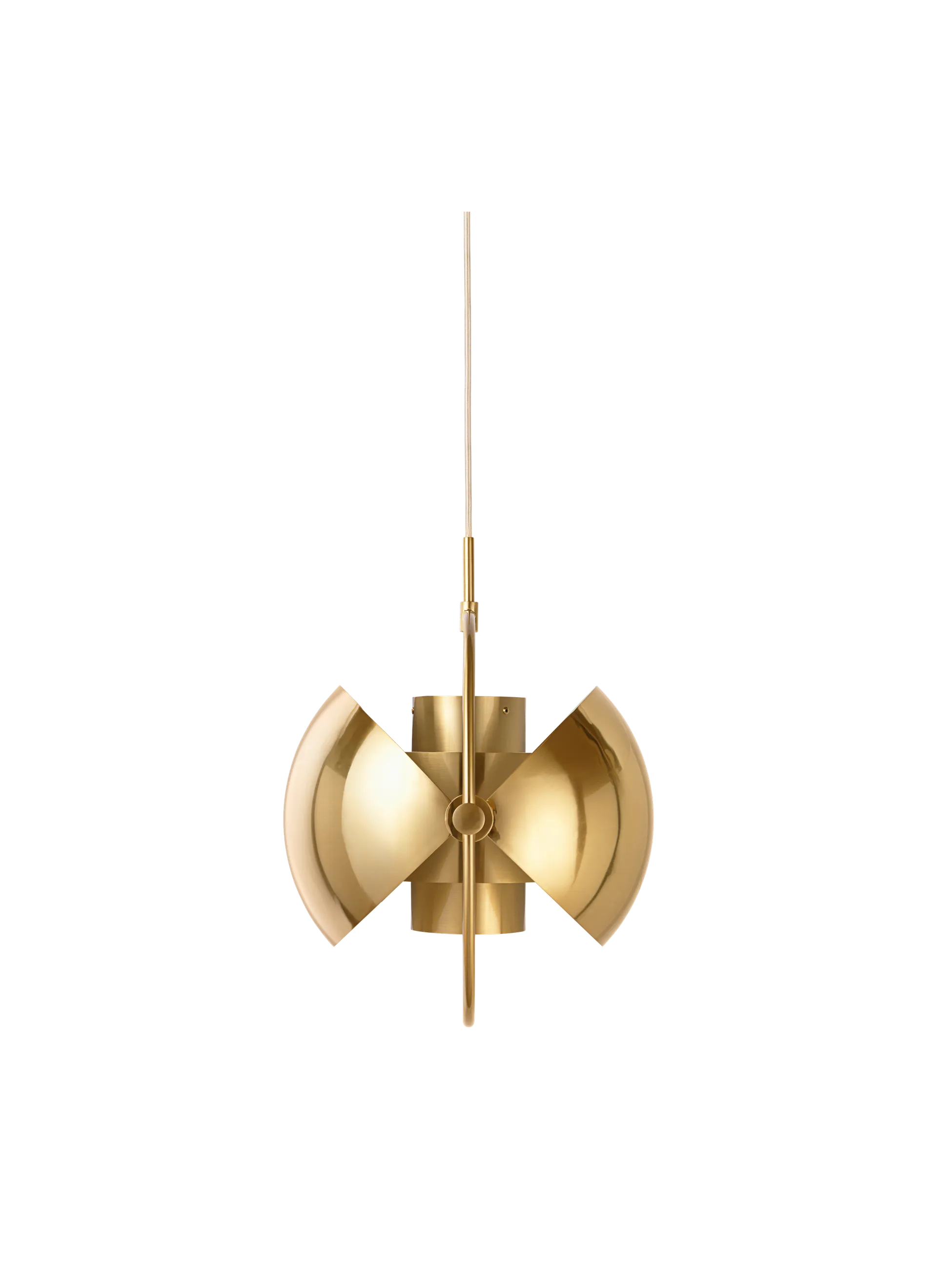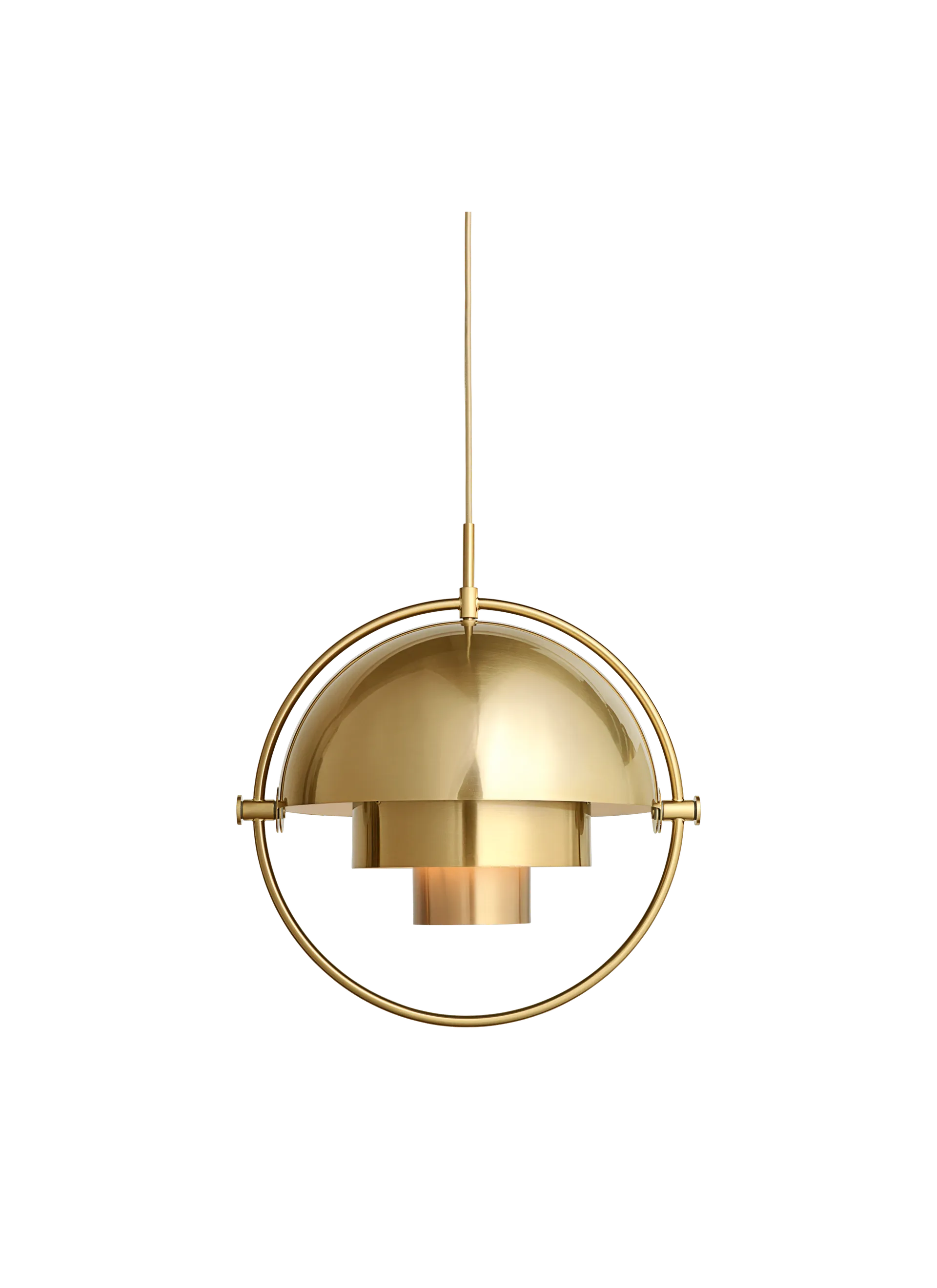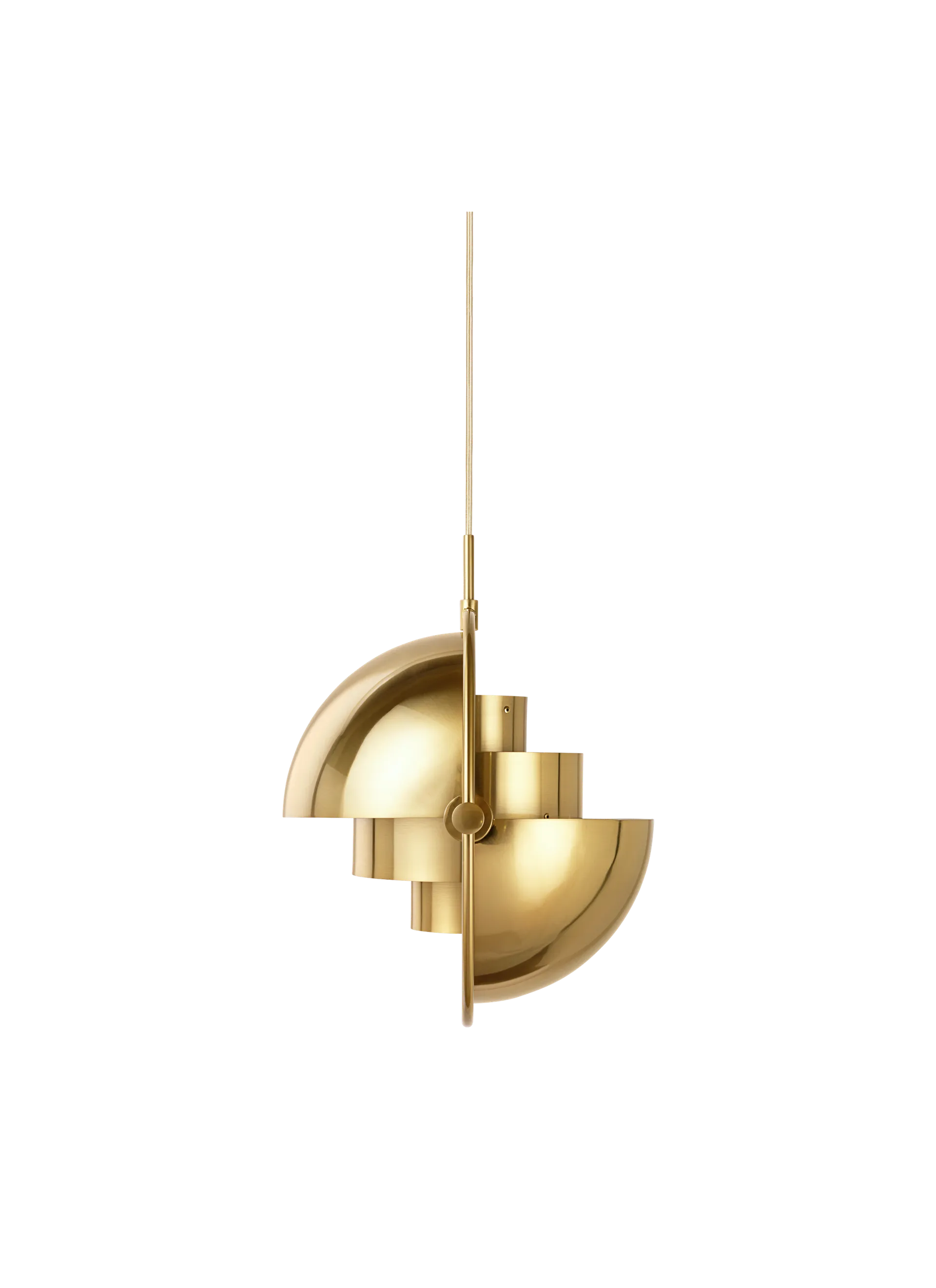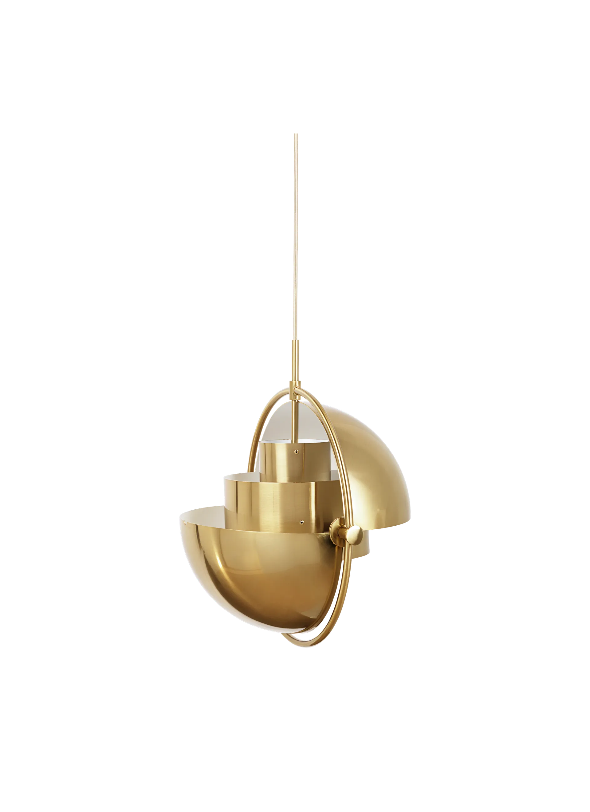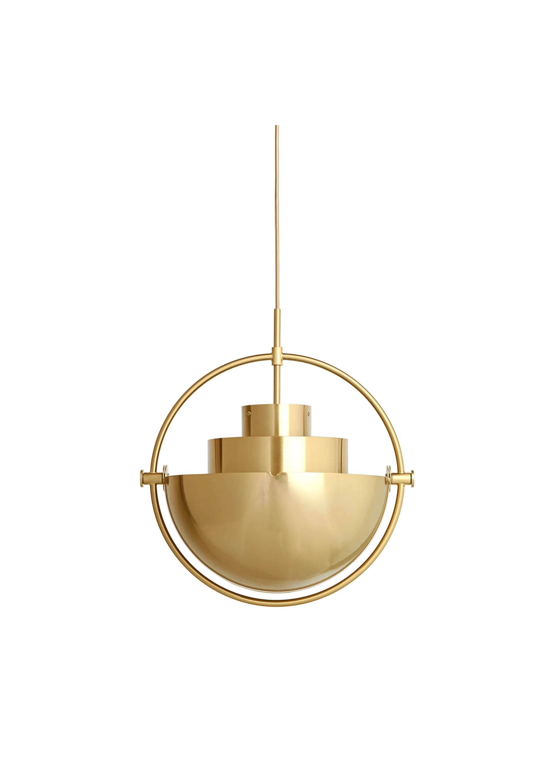 The Multi-Lite Pendant embraces the golden era of Danish design with its characteristic shape of two opposing outside, mobile shades that enable creating a personal installation and a wide range of lighting values in a room. By individually rotating the shades, the Multi-Lite Pendant can be transformed into multiple combinations where the light can be directed upwards, downwards or exude an asymmetrical art light. The Multi-Lite was first drawn in 1972 when Louis Weisdorf did an exception to his own design custom of using multiple repeating elements. Instead, it reflects his passion for diversity. Two cylindrical shapes lay the foundation of the lamp and a metal ring encompasses it and anchors the two quarter-spherical shades, which ultimately completes a picture of an iconic design with multiple purposes. The Multi-Lite Pendant has a timeless expression that fits into any domestic setting.