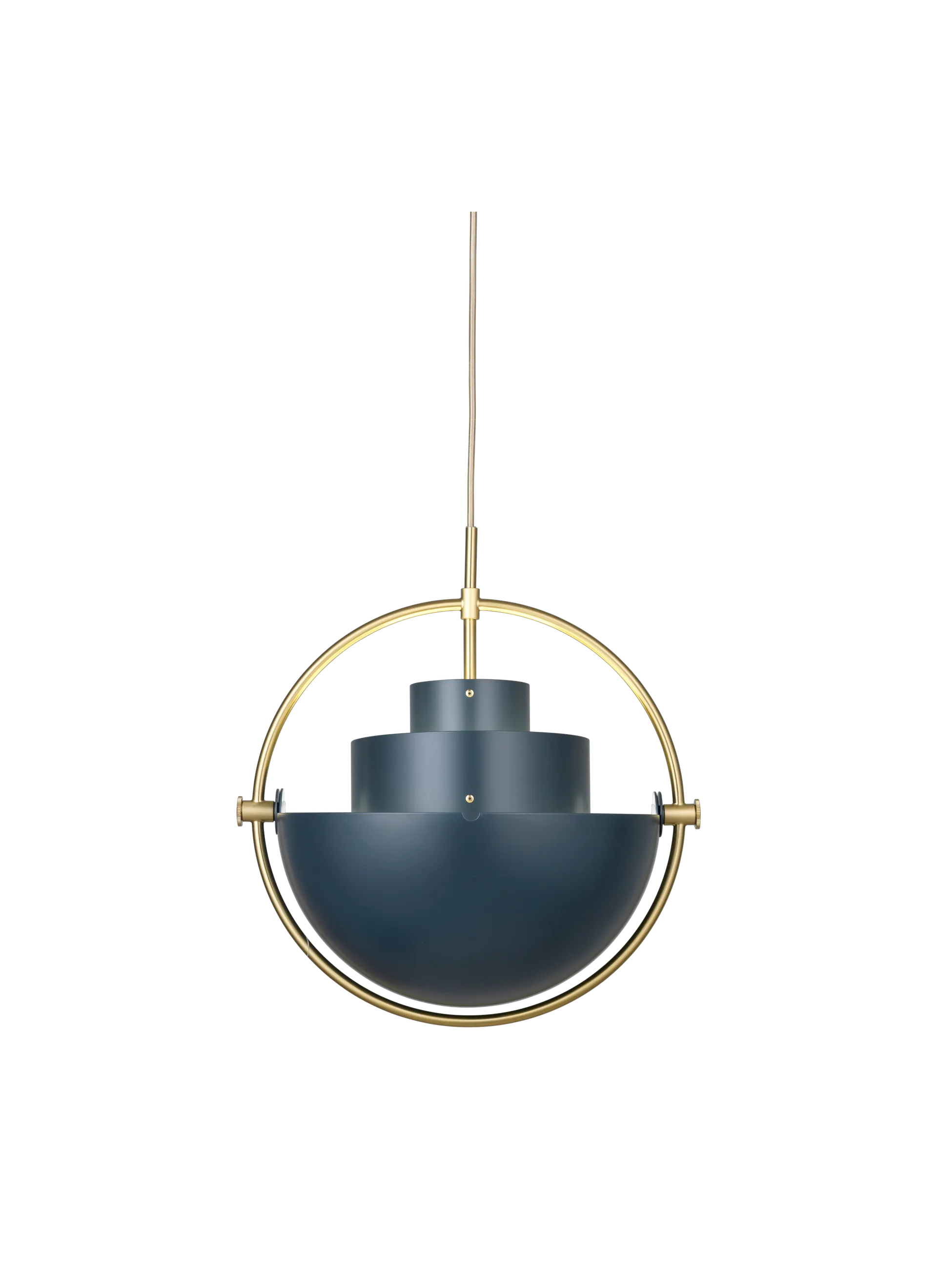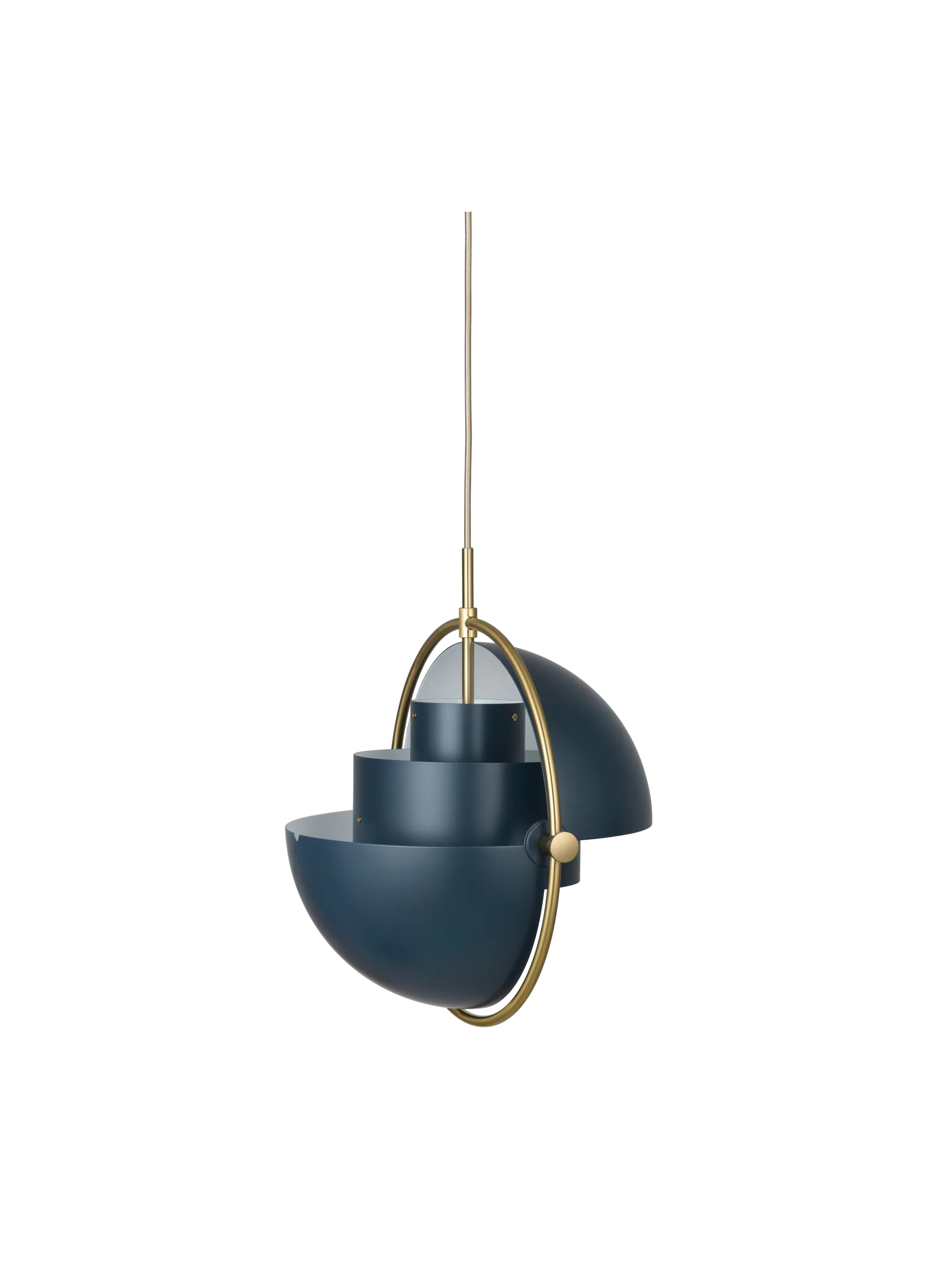 The Multi-Lite Pendant embraces the golden era of Danish design with its characteristic shape of two opposing outside, mobile shades that enable creating a personal installation and a wide range of lighting values in a room. By individually rotating the shades, the Multi-Lite Pendant can be transformed into multiple combinations where the light can be directed upwards, downwards or exude an asymmetrical art light. The Multi-Lite was first drawn in 1972 when Louis Weisdorf did an exception to his own design custom of using multiple repeating elements. Instead, it reflects his passion for diversity. Two cylindrical shapes lay the foundation of the lamp and a metal ring encompasses it and anchors the two quarter-spherical shades, which ultimately completes a picture of an iconic design with multiple purposes. The Multi-Lite Pendant has a timeless expression that fits into any domestic setting.