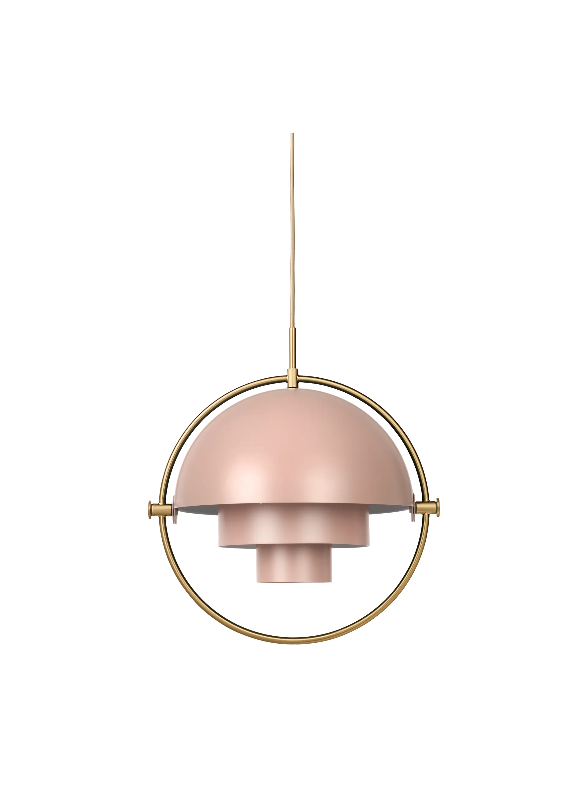 The Multi-Lite Pendant embraces the golden era of Danish design with its characteristic shape of two opposing outside, mobile shades that enable creating a personal installation and a wide range of lighting values in a room. By individually rotating the shades, the Multi-Lite Pendant can be transformed into multiple combinations where the light can be directed upwards, downwards or exude an asymmetrical art light. The Multi-Lite was first drawn in 1972 when Louis Weisdorf did an exception to his own design custom of using multiple repeating elements. Instead, it reflects his passion for diversity. Two cylindrical shapes lay the foundation of the lamp and a metal ring encompasses it and anchors the two quarter-spherical shades, which ultimately completes a picture of an iconic design with multiple purposes. The Multi-Lite Pendant has a timeless expression that fits into any domestic setting.