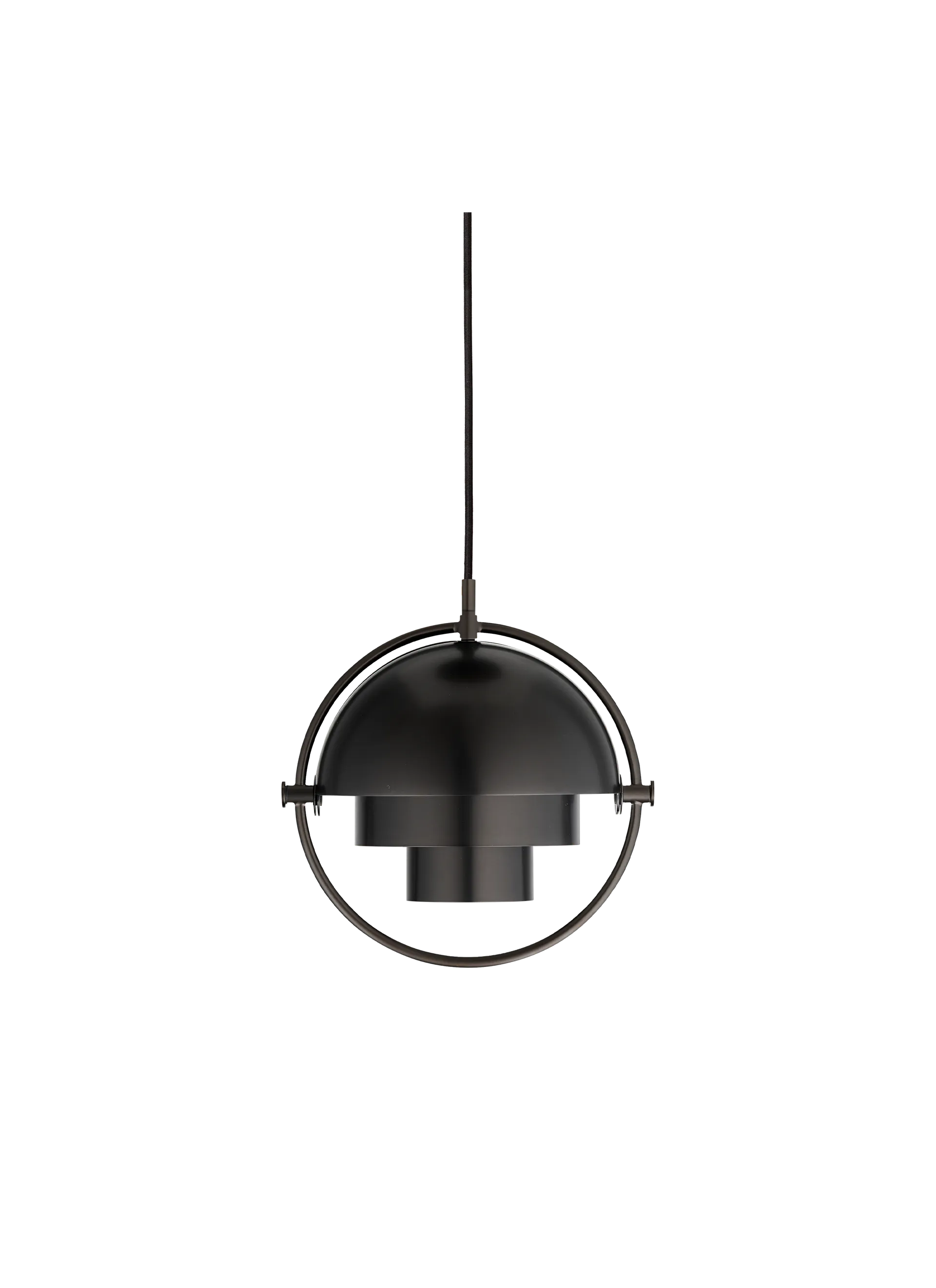 The Multi-Lite Pendant embraces the golden era of Danish design with its characteristic shape of two opposing outside, mobile shades that enable creating a personal installation and a wide range of lighting values in a room. By individually rotating the shades, the Multi-Lite Pendant can be transformed into multiple combinations where the light can be directed upwards, downwards or exude an asymmetrical art light. The Multi-Lite was first drawn in 1972 when Louis Weisdorf did an exception to his own design custom of using multiple repeating elements. Instead, it reflects his passion for diversity. Two cylindrical shapes lay the foundation of the lamp and a metal ring encompasses it and anchors the two quarter-spherical shades, which ultimately completes a picture of an iconic design with multiple purposes. The Multi-Lite Pendant has a timeless expression that fits into any domestic setting.