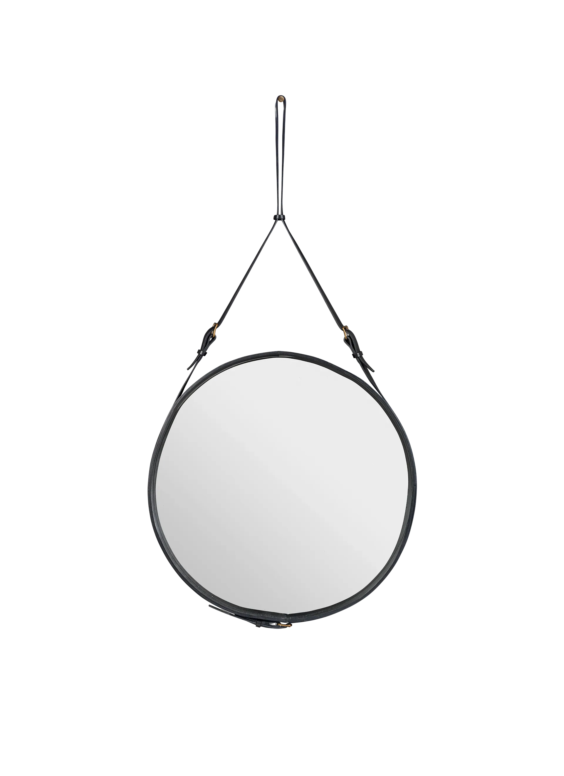 In 1950, Jacques Adnet formed a partnership with a famous French fashion house, where he developed a collection of discreet yet voluptuous leather-covered furniture and interior accessories. Known for being an innovative thinker, Adnet was one of the first designers to combine leather with glass. Accordingly, he designed the elegant, distinctive round leather mirror with equestrian inspired detailing - the Adnet Wall Mirror Circular. Besides the remarkable leather and burnished brass details, the mirror in three sizes is also unique as the strap holding the mirror is in direct proportion to the dimension of it. The timeless Adnet Wall Mirror Circular adds a sculptural value to any hallway, bathroom or living room and the three sizes can advantageously be combined to create an outstanding expression.