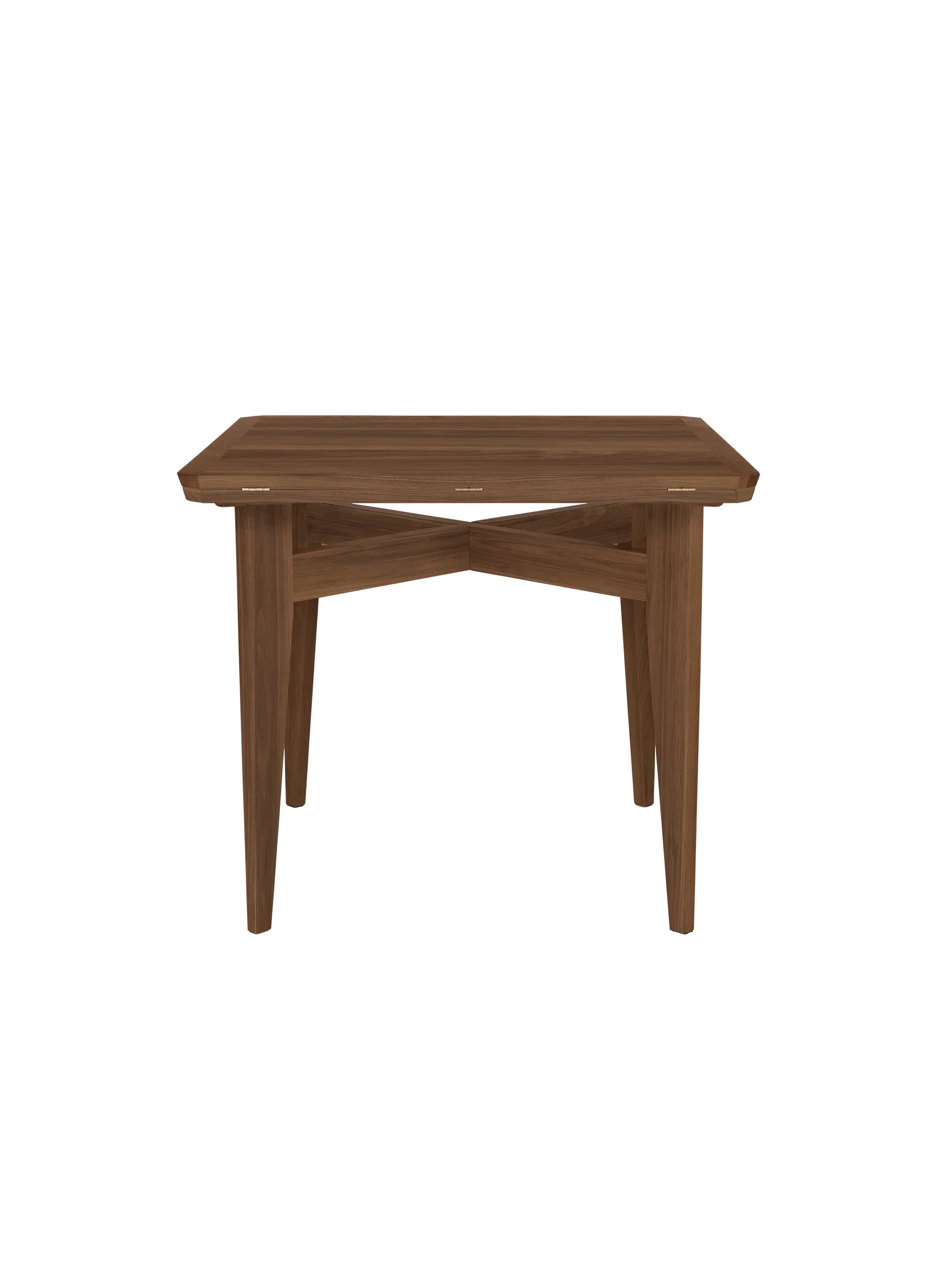 The B–Table is two tables in one, each with a very different aesthetic. A square tabletop features an additional curved section on each of its four sides. Lifting up just two sections onto a curved crossbeam underneath and rotating the tabletop causes the other two sections to rise. All four sections slide effortlessly into magnetic locks, securing them in place. This smooth and simple transition means the table can be transformed from one form to the other - and back again- by one person in a single fluid motion.