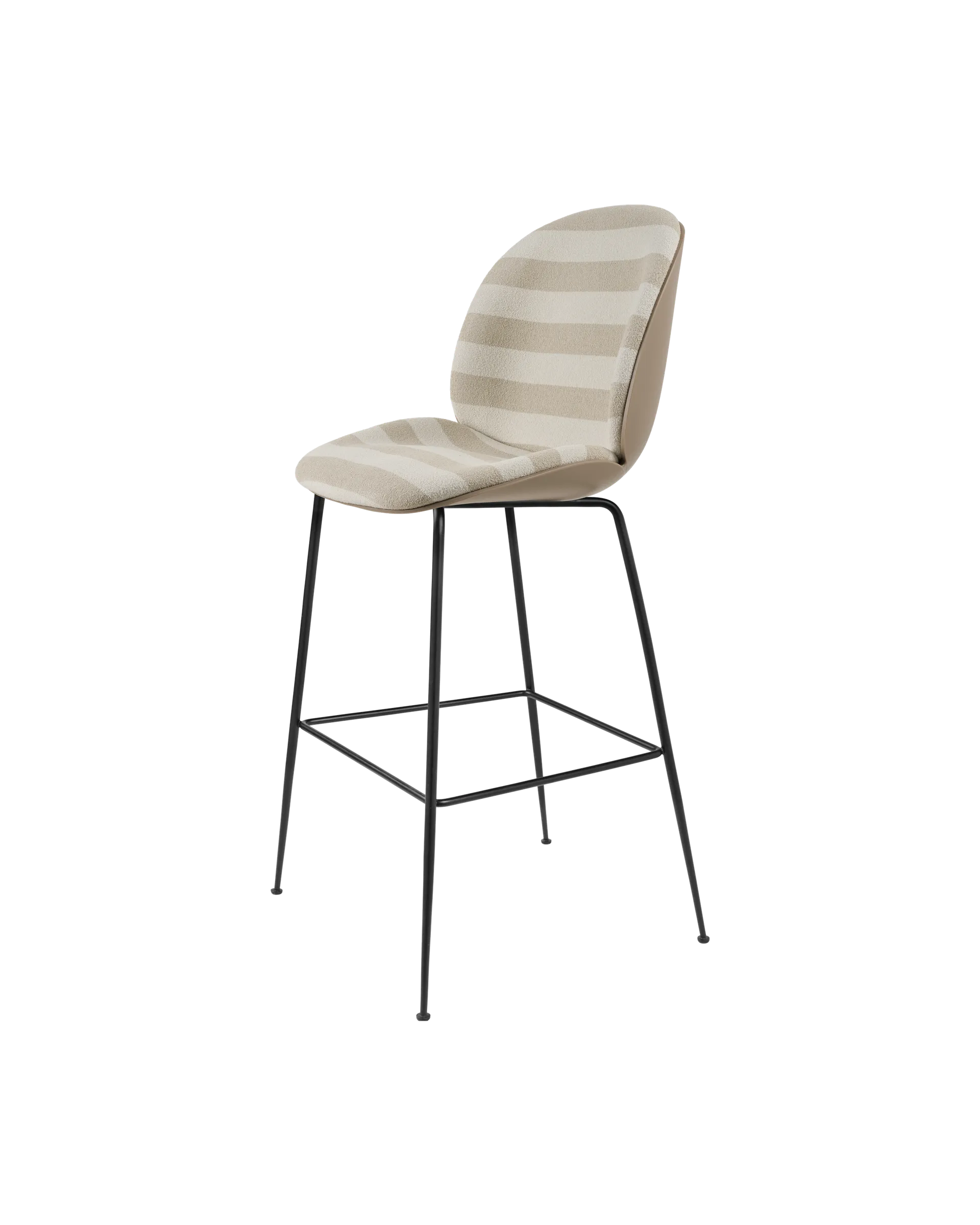 The front upholstered Beetle chair with a 3D molded veneer shell takes the natural inspiration of the Beetle collection to the next level. Originally designed by GamFratesi 2013, the Beetle collection has been embraced by design lovers the world over for its exceptional comfort, striking silhouette, and quality construction. This latest iteration, featuring oak and American walnut wood veneer, brings versatility and an even more sophisticated expression to the collection, and can be combined with all Beetle Dining, Bar, Counter, and Meeting Chair bases to suit any space and use.