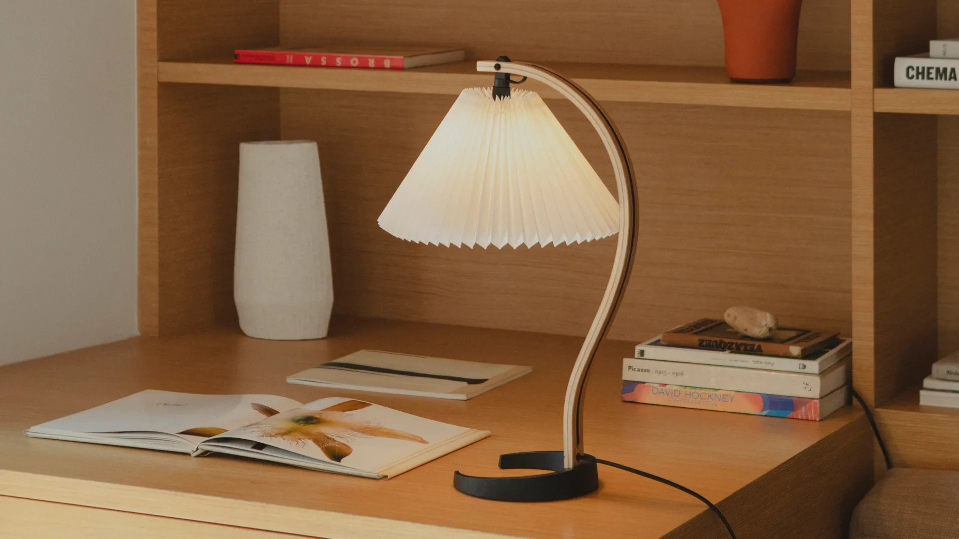 The Timberline Table Lamp offers design lovers a desktop edition of Mads Caprani’s much-loved floor lamp. Faithful to Caprani’s original question mark inspired design, this scaled down format retains the signature swannecked shape and playful 1970s Scandinavian aesthetic, with subtle adjustments to optimize stability and functionality. Crafted with precision, the lamp features a bent-wood spine made from nine layers of oak and birch, an adjustable shade allowing users to control the light direction, and a solid castiron crescent base for stability. The lamp is easy to move around the home, casting a localized light and creating a warm and intimate ambience wherever it is placed. Delivered flatpack for easy assembly, the replaceable components ensure longevity and ease of maintenance.
