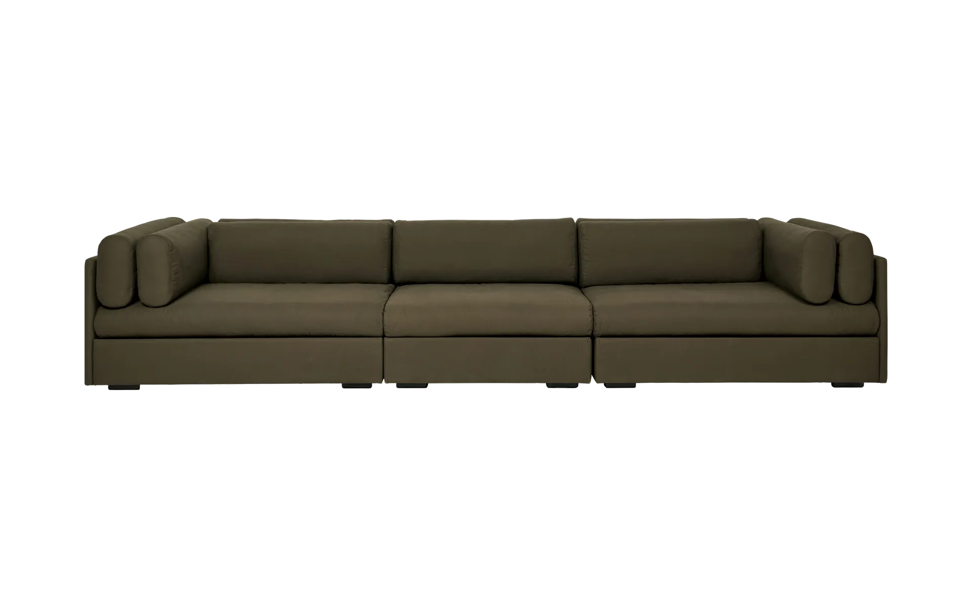 It is not only Elogio’s modules that are adaptable; the oversized cushions are designed to be reconfigured, allowing users to play with form and function and enabling the sofa to evolve with the space and the user’s needs. Identical in size, the side and backrest cushions are interchangeable, creating rhythmic geometries and reinforcing the intentionality of the design.
