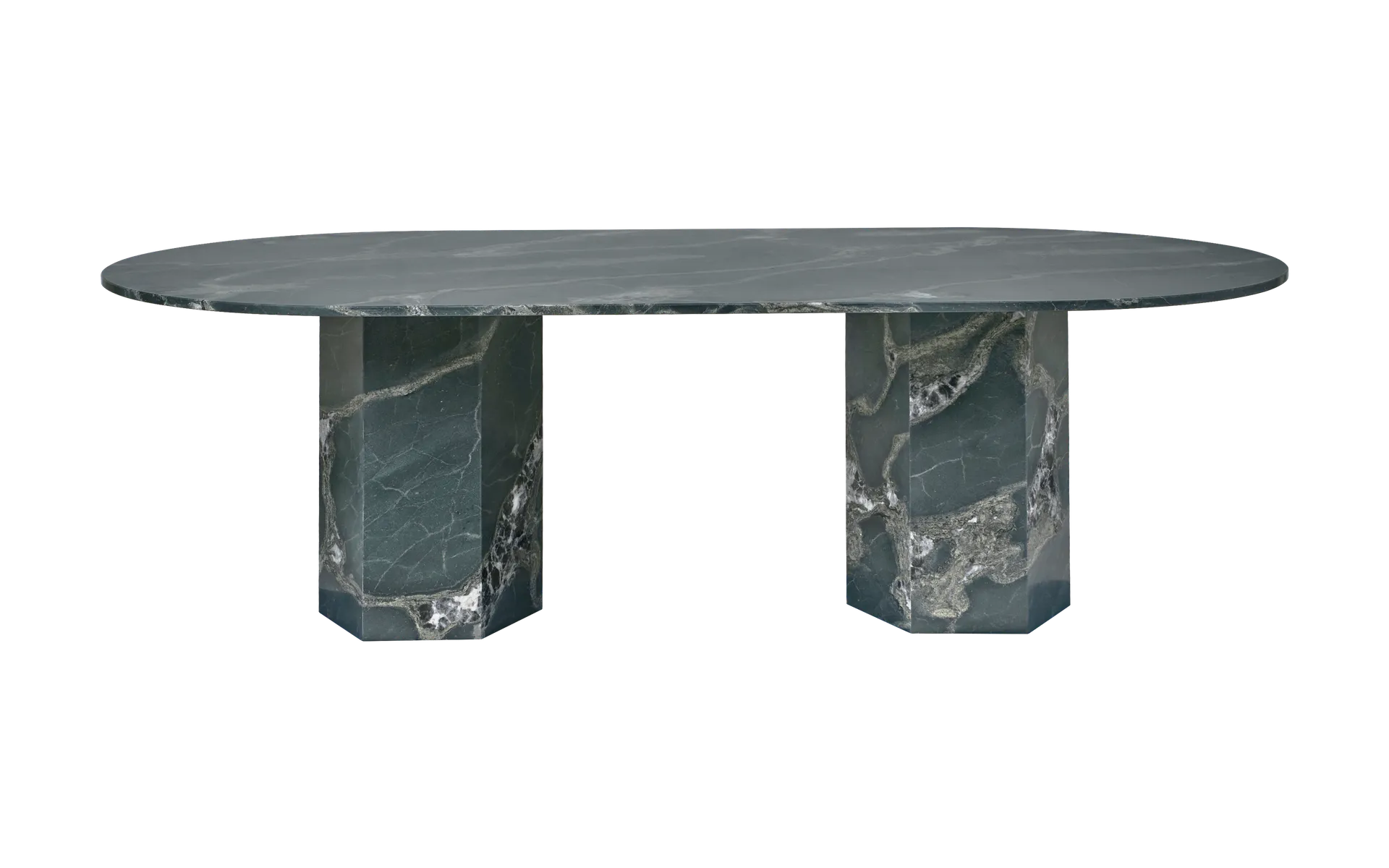 GUBI’s introduction of GamFratesi’s Epic Tables brought the aesthetics of Classical architecture and the rich textures of natural stone into the home. Now, the much-loved design steps outside with a new edition specially optimized for outdoor use. Designed and named in homage to the architectural traditions of ancient Greece and Rome, the tables of the Epic Collection are characterized by their monolithic silhouettes and materiality. Where the interior iterations are crafted from travertine or steel, the Epic Outdoor Table takes a new material direction, exploring the mesmerizing visual expression and impressive durability of quartzite.