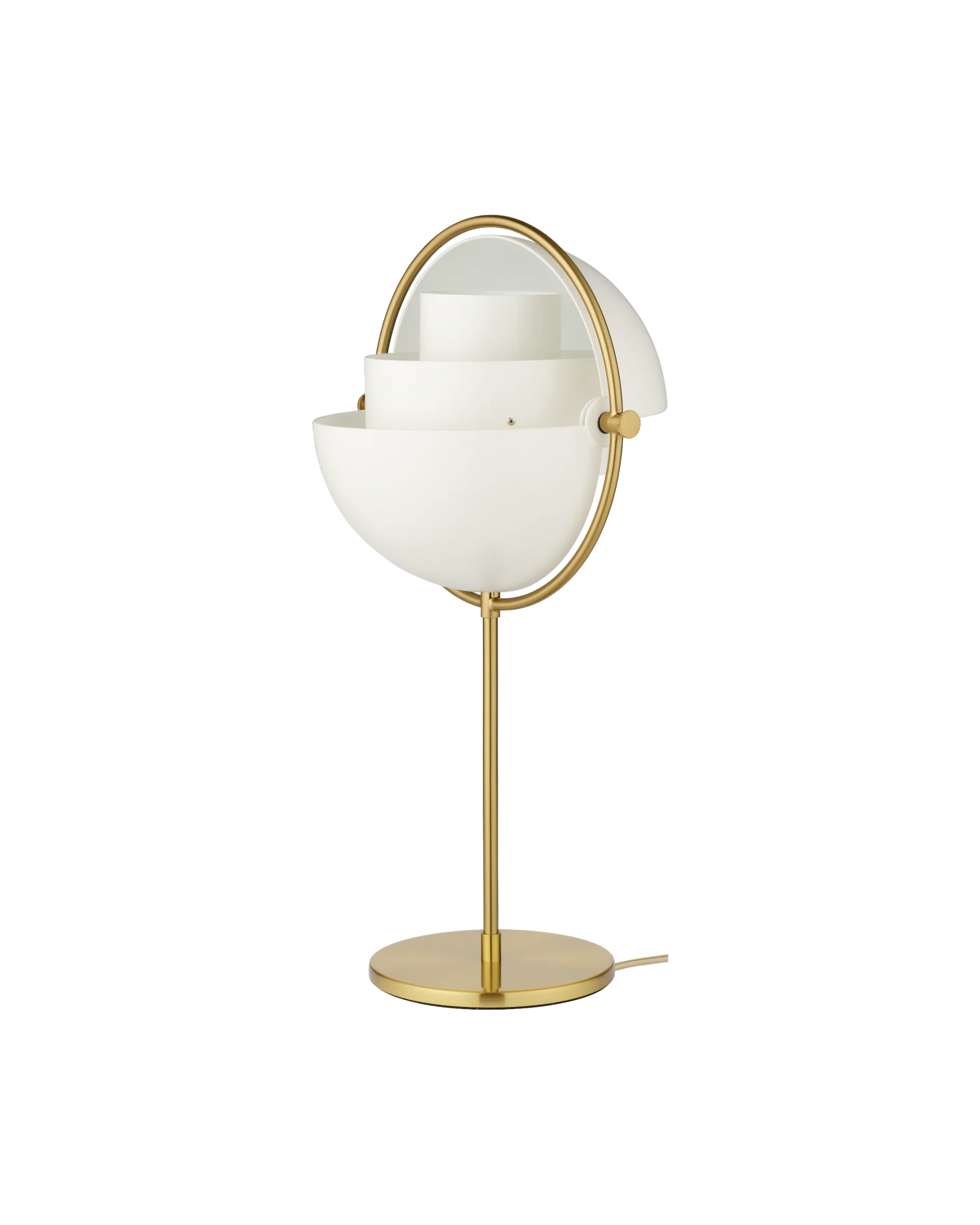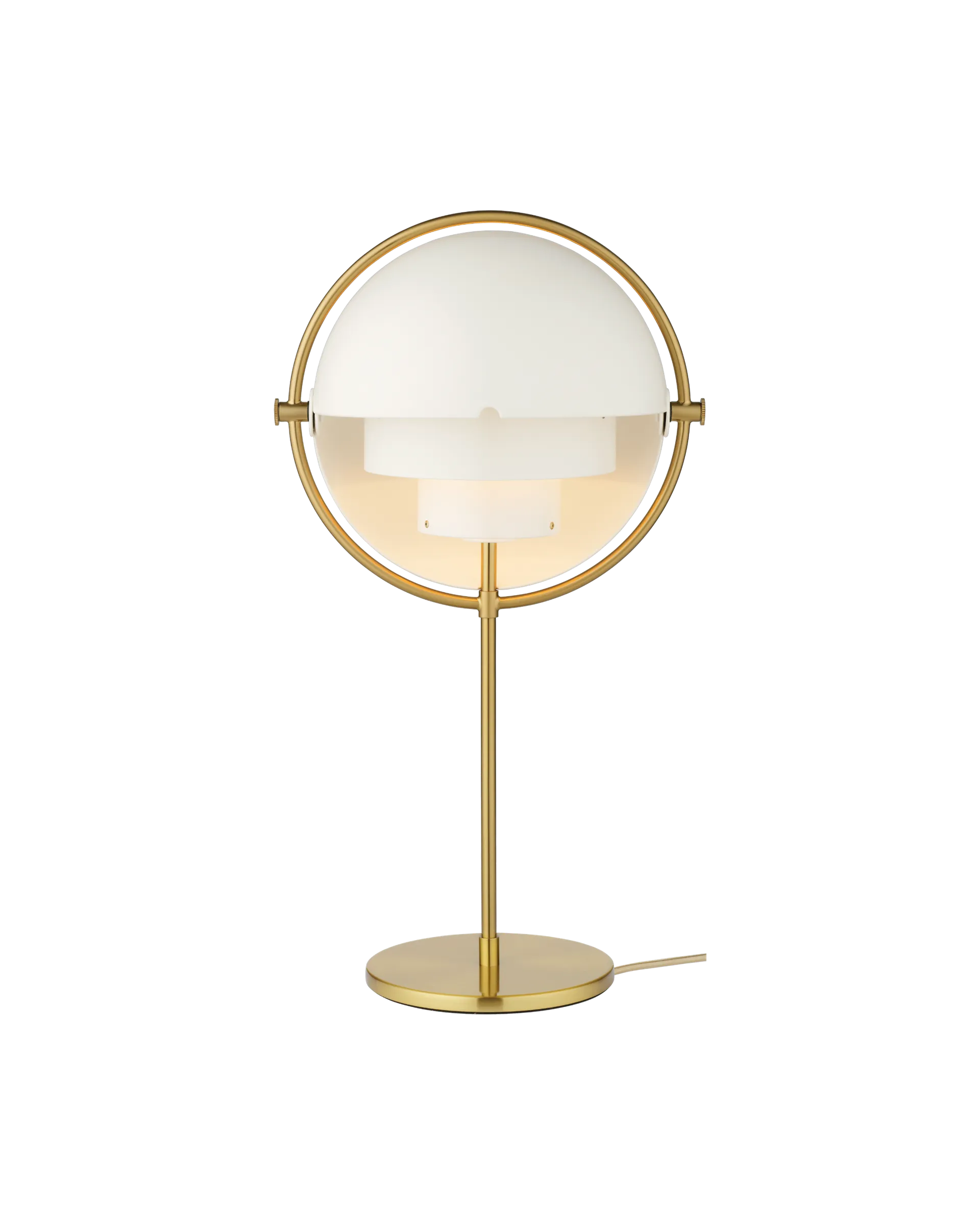 Louis Weisdorf’s contemporary and classic design philosophy is echoed in the new Multi-Lite Table Lamp. With its timeless elegance, distinctive style and unique multi-functionality, the Multi-Lite Table Lamp brings life and character to any interior space. The Multi-Lite lamp design is created in 1972 by the Danish architect Louis Weisdorf with the aim of reflecting his passion for diversity. Due to its unique design, the two opposing outside shades can individually be rotated and transformed into multiple combinations and encourage for personal installations and expressions whenever desired. Always with Weisdorf’s design philosophy in mind, the light can be directed upwards, downwards or exude an asymmetric art light without exposing the light source. Two cylindrical shapes lay the foundation of the lamp and a metal ring encompasses it and anchors the two quarter-spherical shades, which ultimately completes a picture of an iconic design with multiple purposes. The decorative Multi-Lite Table Lamp is an evolution of the pendant design and perfectly suited for creating a festive ambient light in the domestic living room.