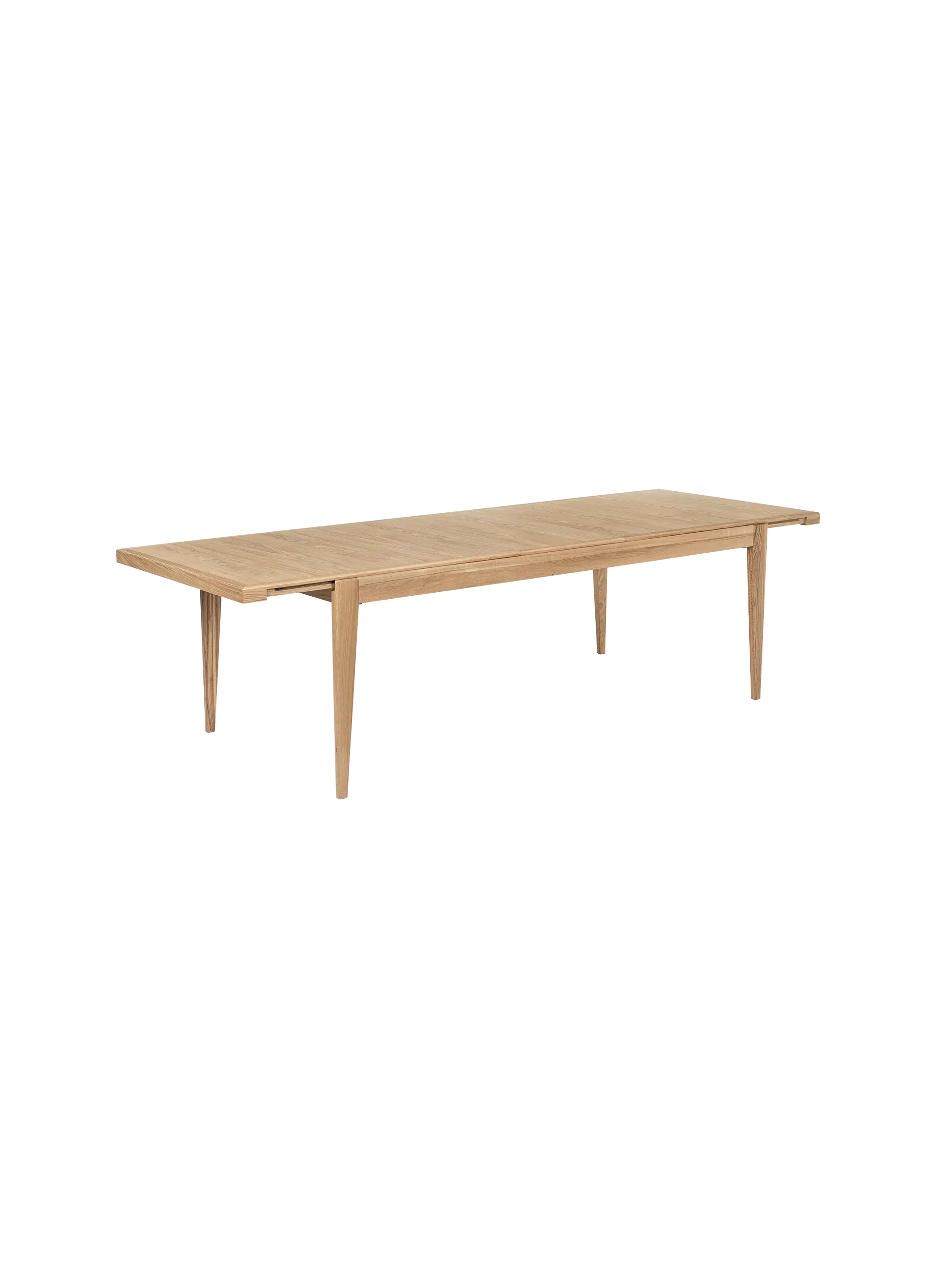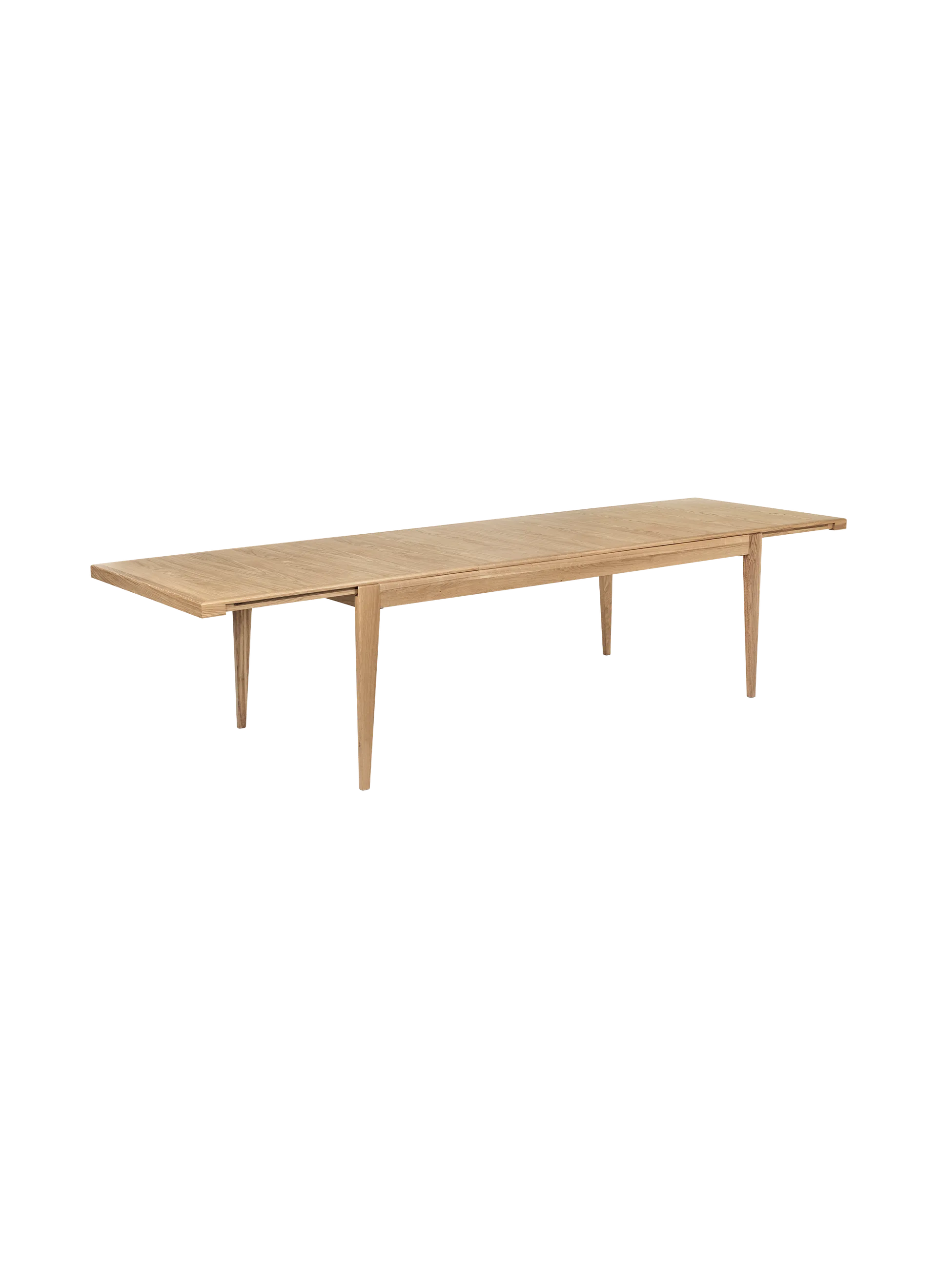 The S-Table designed in 1953 is part of a unified collection that also includes the B-Table, C-Chair and Trèfle Stool. With its simple tapered legs, sturdy frame and space-efficient rectangular tabletop - extends by a meter, adding an extra two place settings on either end, meaning it can now seat up to ten. The tabletop splits across the center and slides apart, creating space for two insert leaves, which are stored underneath when not in use. The entire table, even the extending mechanism, is made from solid and veneered oak or walnut.