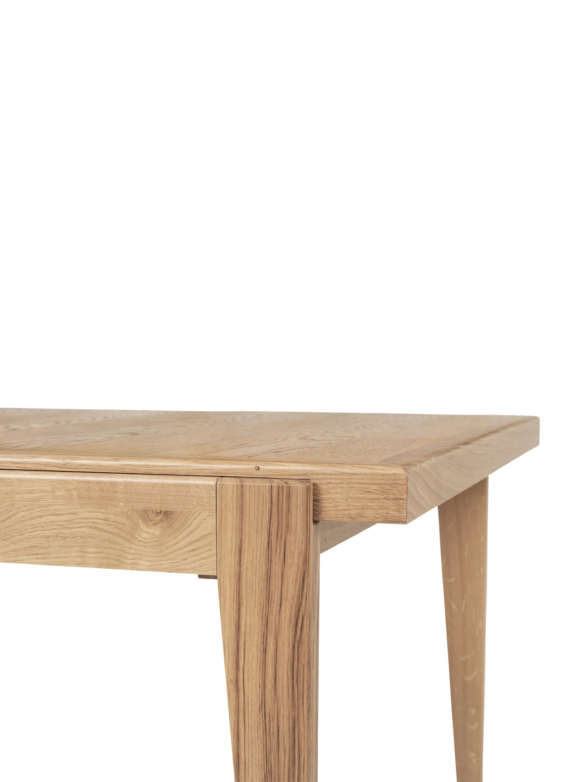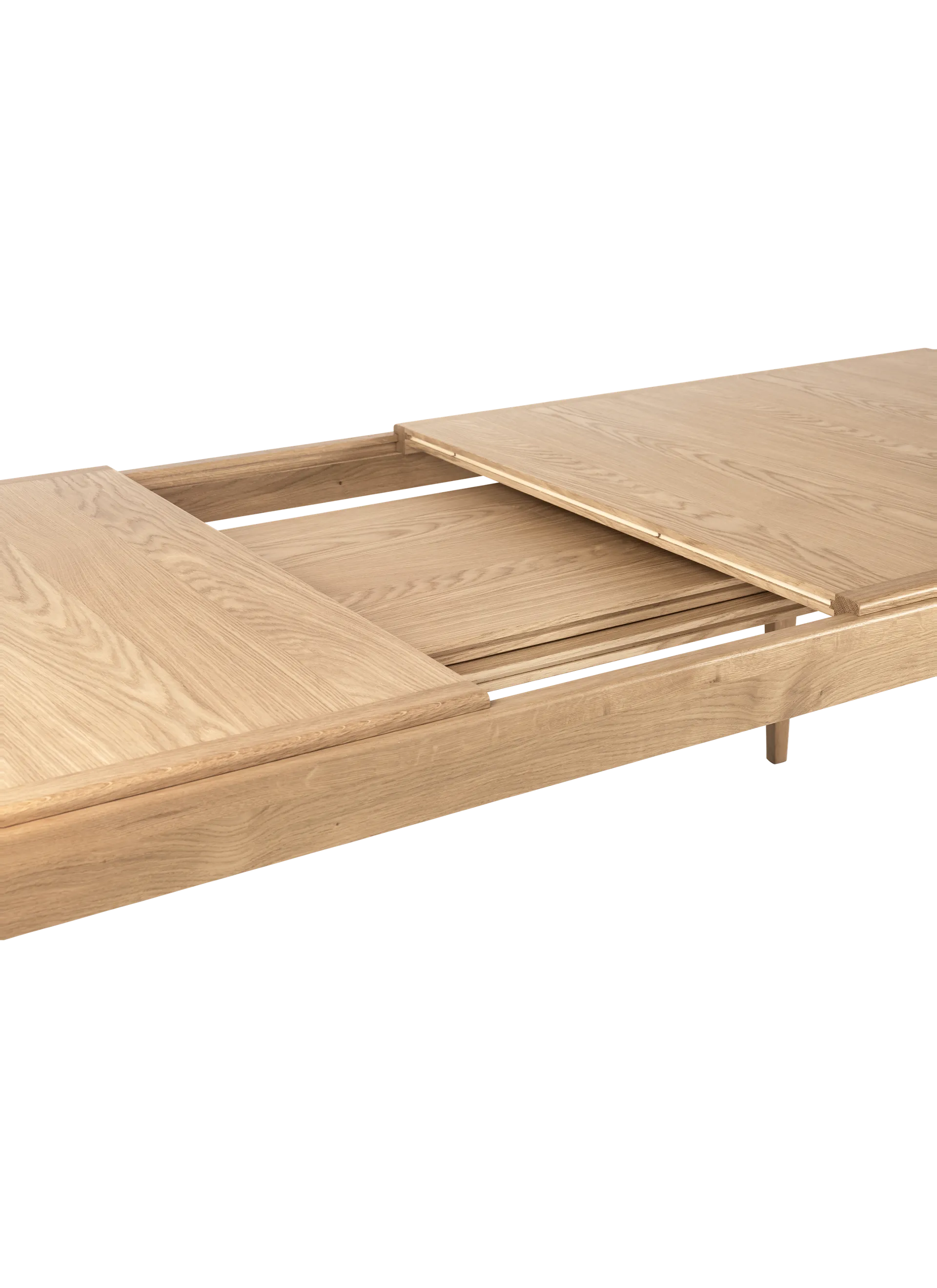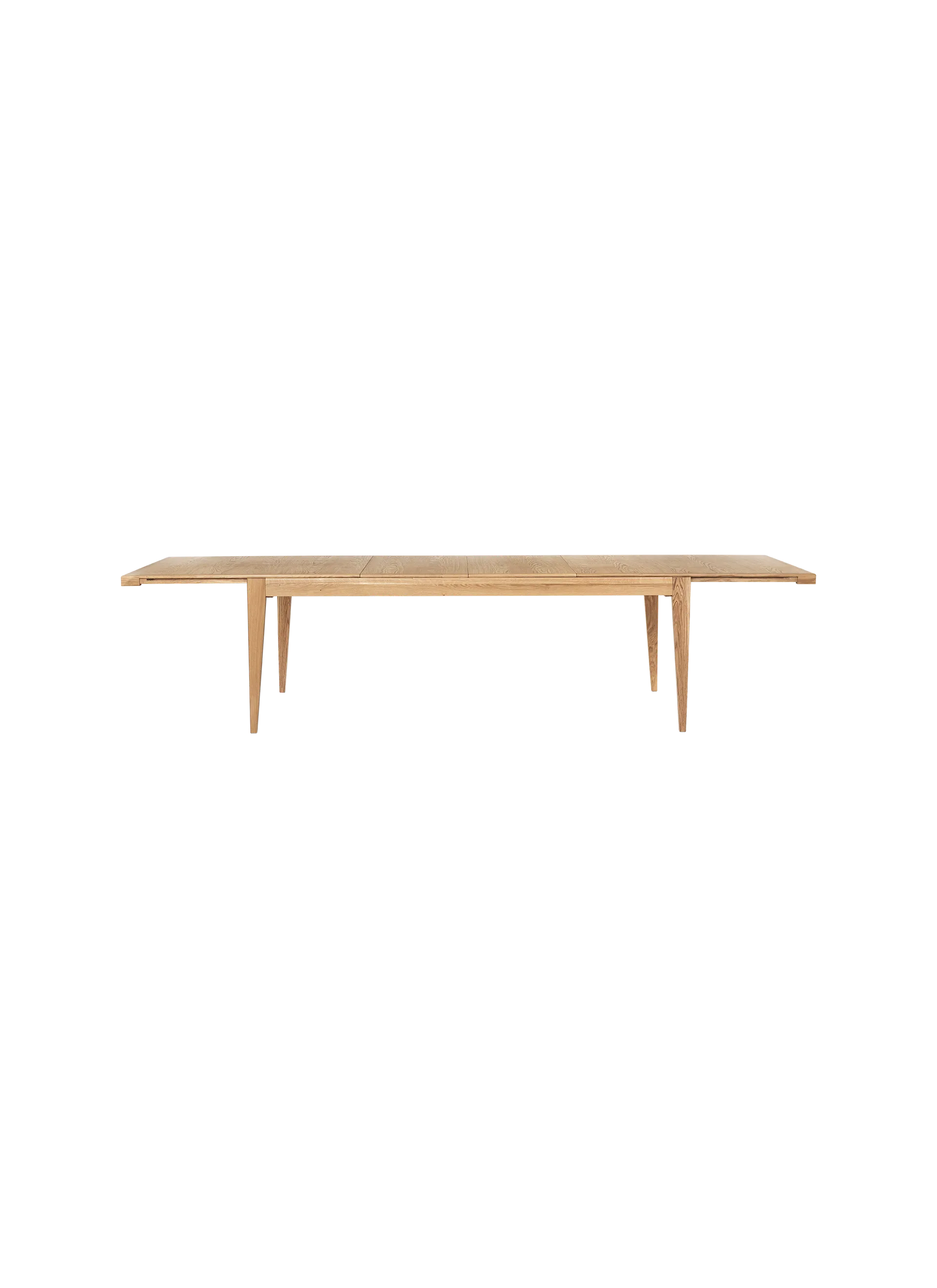 The S-Table designed in 1953 is part of a unified collection that also includes the B-Table, C-Chair and Trèfle Stool. With its simple tapered legs, sturdy frame and space-efficient rectangular tabletop - extends by a meter, adding an extra two place settings on either end, meaning it can now seat up to ten. The tabletop splits across the center and slides apart, creating space for two insert leaves, which are stored underneath when not in use. The entire table, even the extending mechanism, is made from solid and veneered oak or walnut.