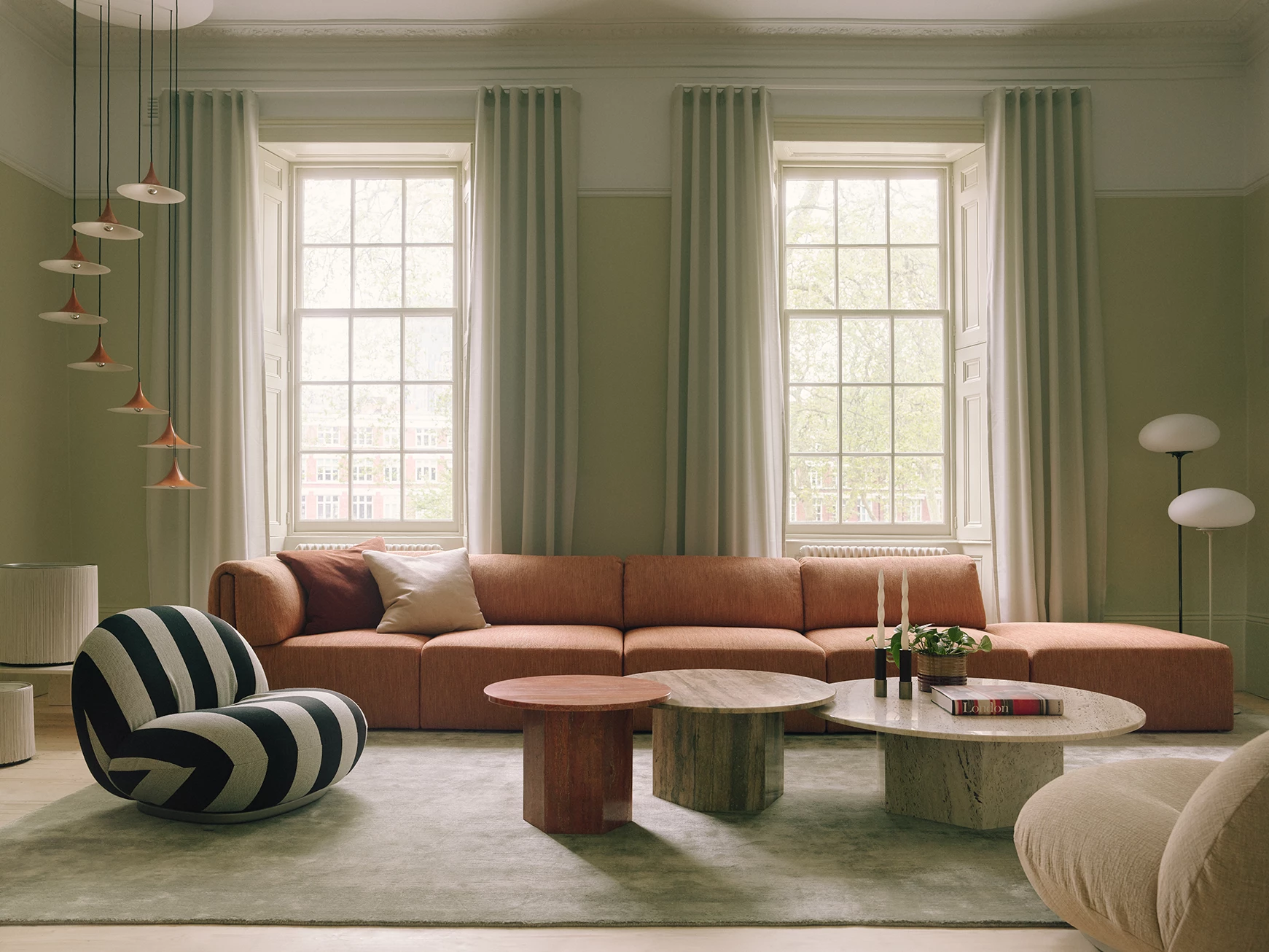 Named after the epic poems of ancient times, GamFratesi’s Epic Table for GUBI is a sculptural piece of furniture inspired by Greek columns and Roman architecture. Originally made in Italy from travertine stone, the table’s new variant marks the first time GamFratesi has worked with steel plates, which are galvanized, lacquered, and then treated with a series of hand-finishing processes to create a unique surface expression for each table. The table’s monolithic form remains, now with an industrial expression, in which a new detail can be discovered with every use. The collection brings personality to private settings and an intriguing sense of weight and tactility to public and hospitality spaces, where its resilient surfaces offer exceptional levels of durability. The varying heights and diameters within the Epic Table Collection mean a single monochromatic table can stand alone or be combined in dynamic clusters of varying material, height and color.
