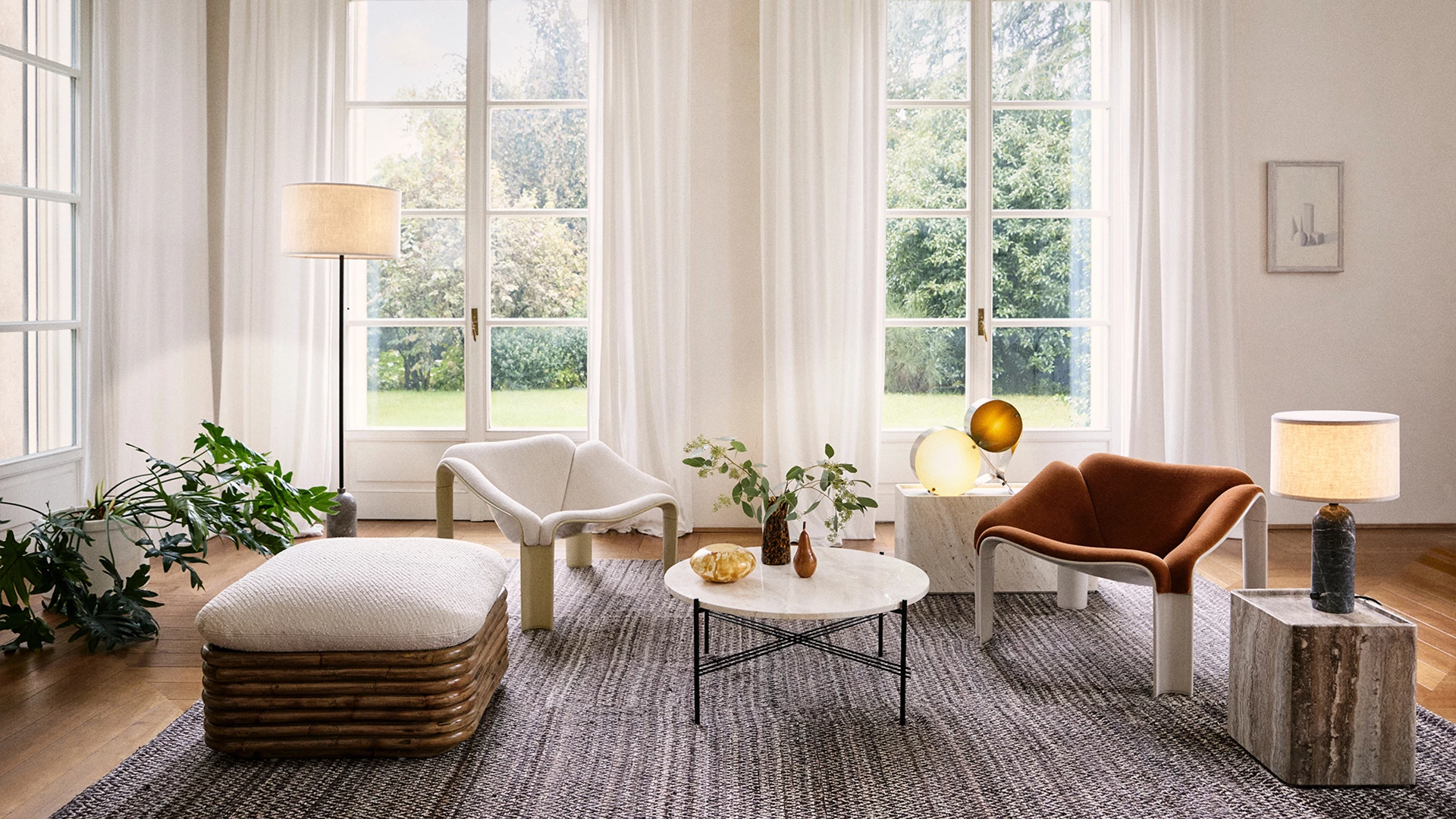 The Gravity Floor Lamp, designed by Space Copenhagen, is aesthetically contrasting strength and fragility. Taking its name from the lamp's distinctive balance between the anchoring of the heavy, cylindrical base and the lightweight, airy shade, it beautifully merges into a sculptural whole. Blending understated elegance, clean functionality and effortless in its own succinct and simple way, the Gravity Floor Lamp gives an ambient and subtle light display and creates different moods and expressions depending on the choice of size and combination of materiality.