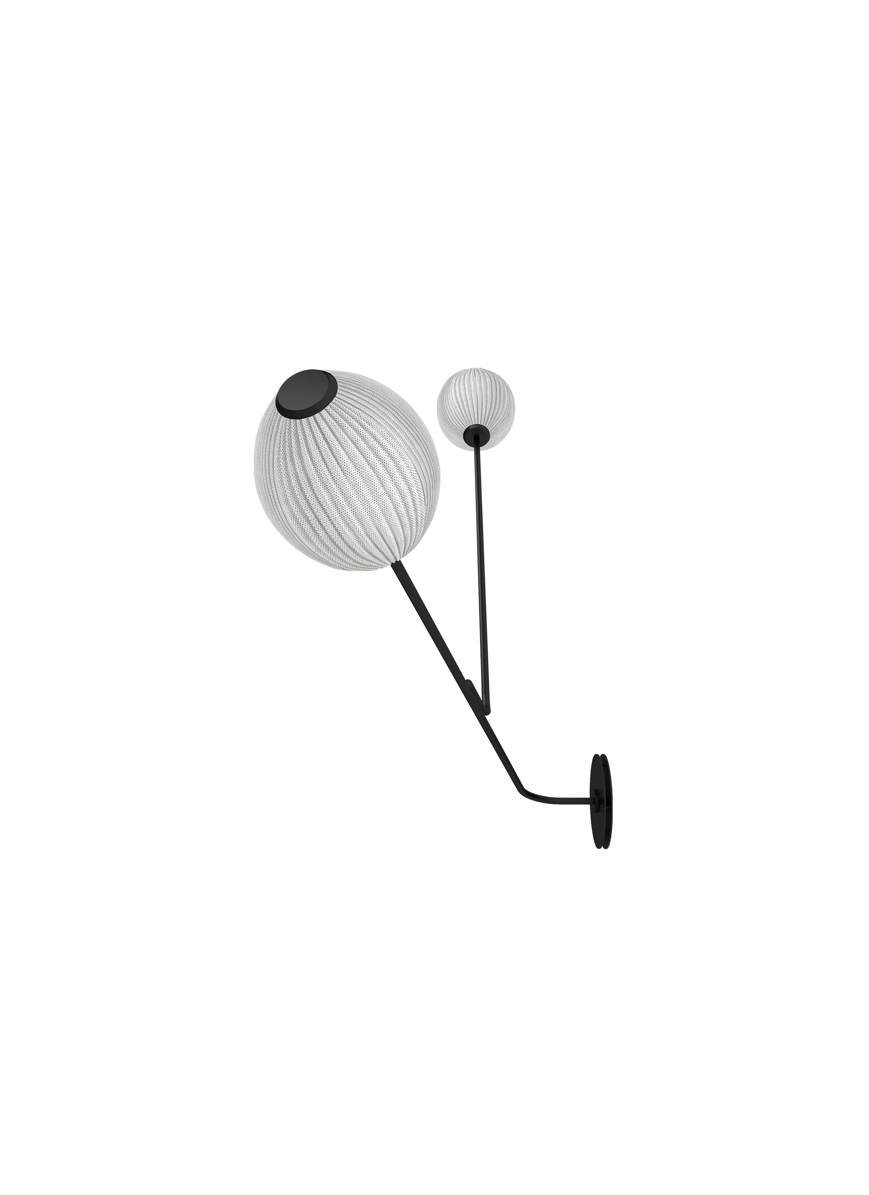 The striking, bold and playful Satellite Wall Lamp, designed by Mathieu Matégot, is available once again after a wait of nearly seventy years. With its geometrical shapes and finely-balanced arms creating outstanding sculptural aesthetics, the Satellite’s name and concept were Matégot’s tribute to the scientific progress and optimism found in post-war France. The Satellite Wall Lamp comprises two shades made from Rigitulle – Matégot’s technique of folding and bending perforated steel into an original oblong shaped lamp shade – which are mounted onto sculptural metal arms. The result is a unique interplay of transparency, weightlessness and balance, with a casting of light and shadow that is at once atmospheric and festive. The Rigitulle shades of the Satellite Wall lamp are available in Creamy White, Soft Black Semi Matte or a combination of the two, and mounted on a Soft Black Semi Matte fixture and arms. Despite the name, it can also be mounted to the ceiling to create a stunning centerpiece. Matégot’s long sought-after ‘balloons on string’ design can once again make a bold statement in any interior, whether at home, corporate workplace or in hospitality.