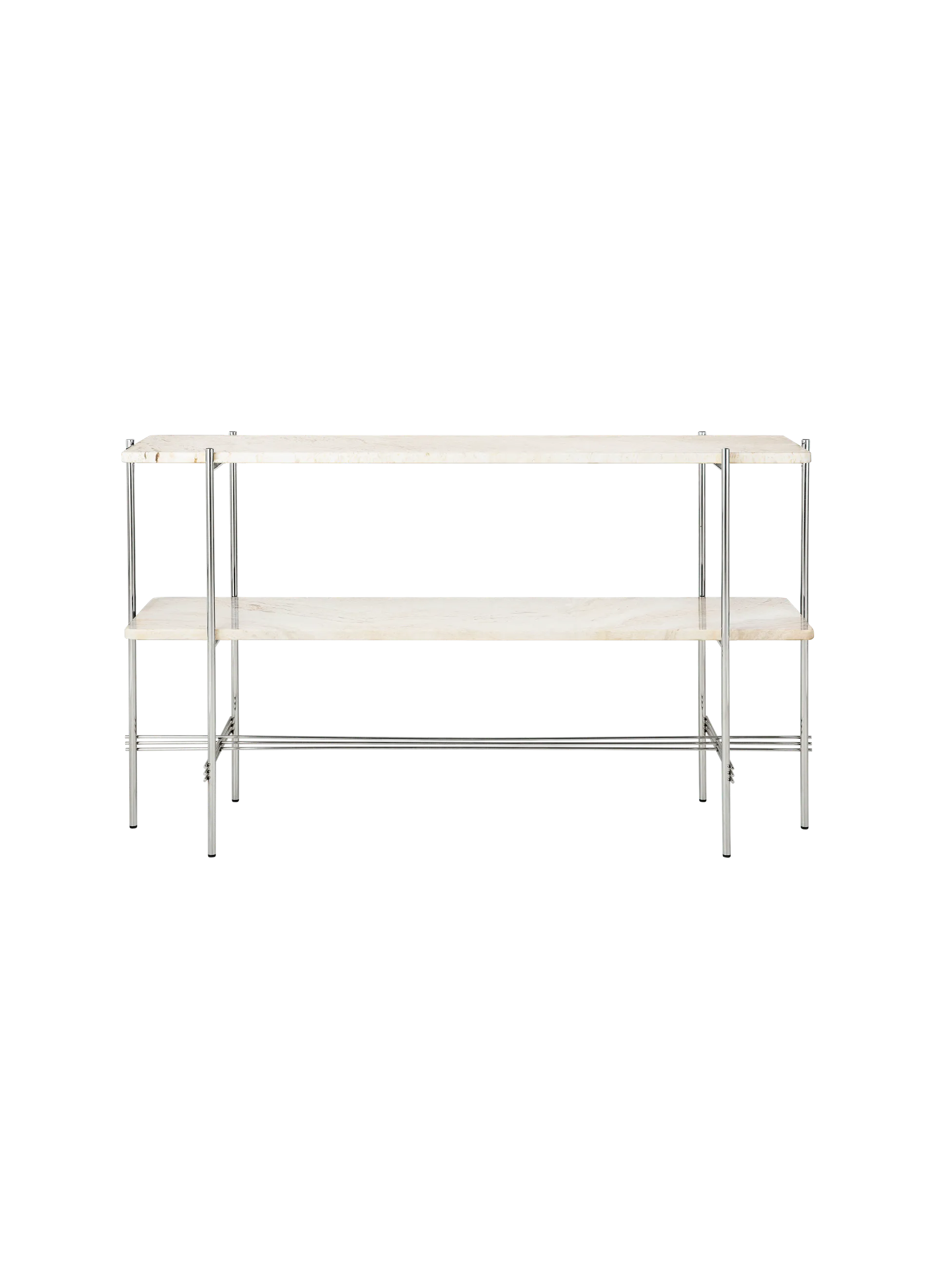 The TS Console creates a sophisticated and sculptural aesthetics for any room with its characteristic slender legs, beautifully crossing details and contrasting solid table top. The rectangular console serves equally well as a storage unit, serving station or media console, featuring either one or two table tops. The timeless TS Console by GamFratesi is extended from the classic TS Table, made for the renowned restaurant The Standard in Copenhagen, where not only its name got its inspiration but also aesthetics and material choices were found.