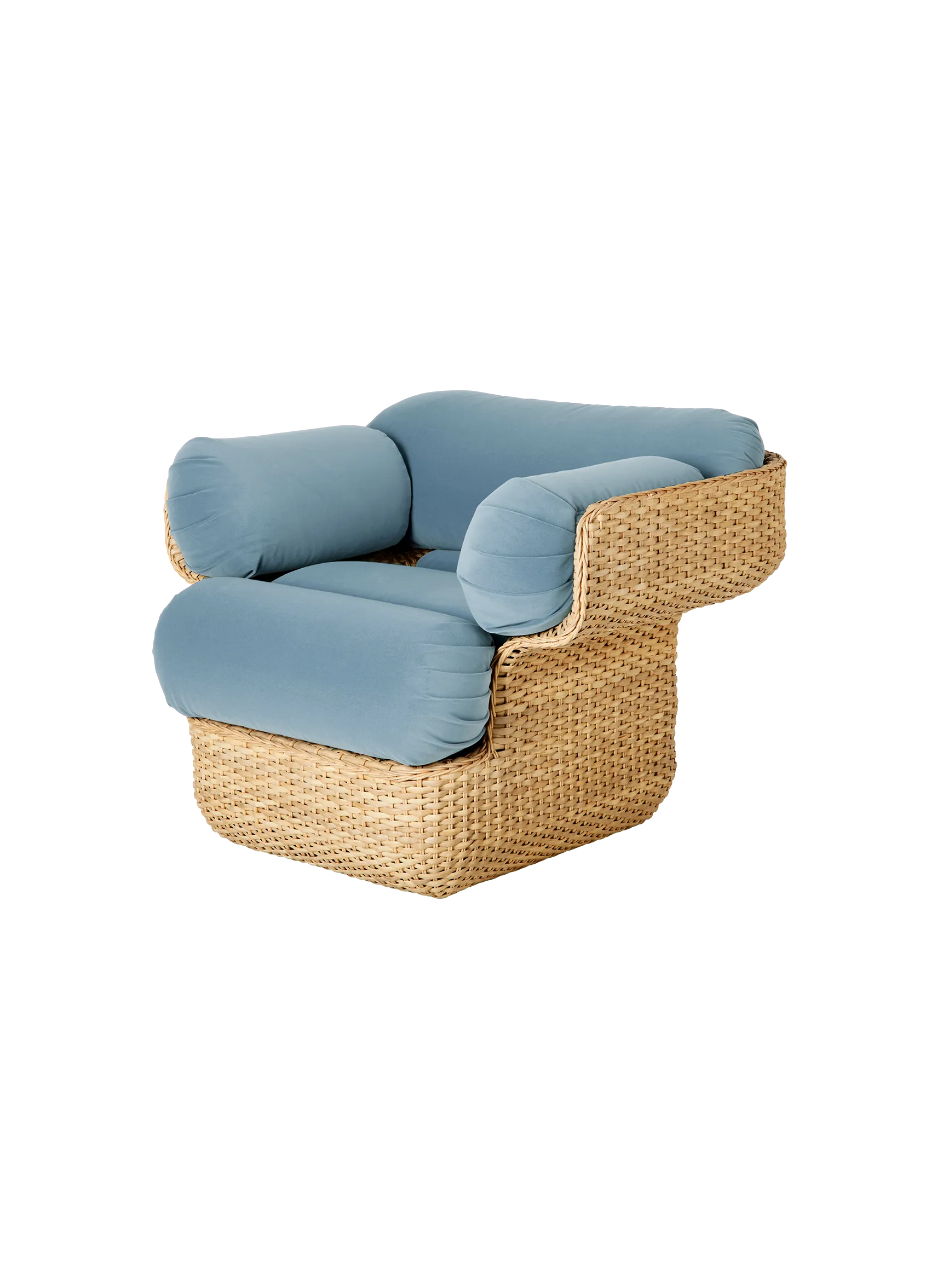 The name ‘Basket’ honors the classic hand-weaving technique used in rattan basketry. The collection comprises a three-seater sofa, a two-seater sofa, and a lounge chair, all of which share the same construction. Replacing the inner fiberglass shell that Colombo initially utilized, the core of each piece is now formed from a more environmentally responsible steel skeleton, which provides strength and stability to the unique form. This is covered with a hand-woven rattan skin, made from interlaced strips and oval stakes, a technique that de- mands a tremendous degree of skill and craftsmanship to create.