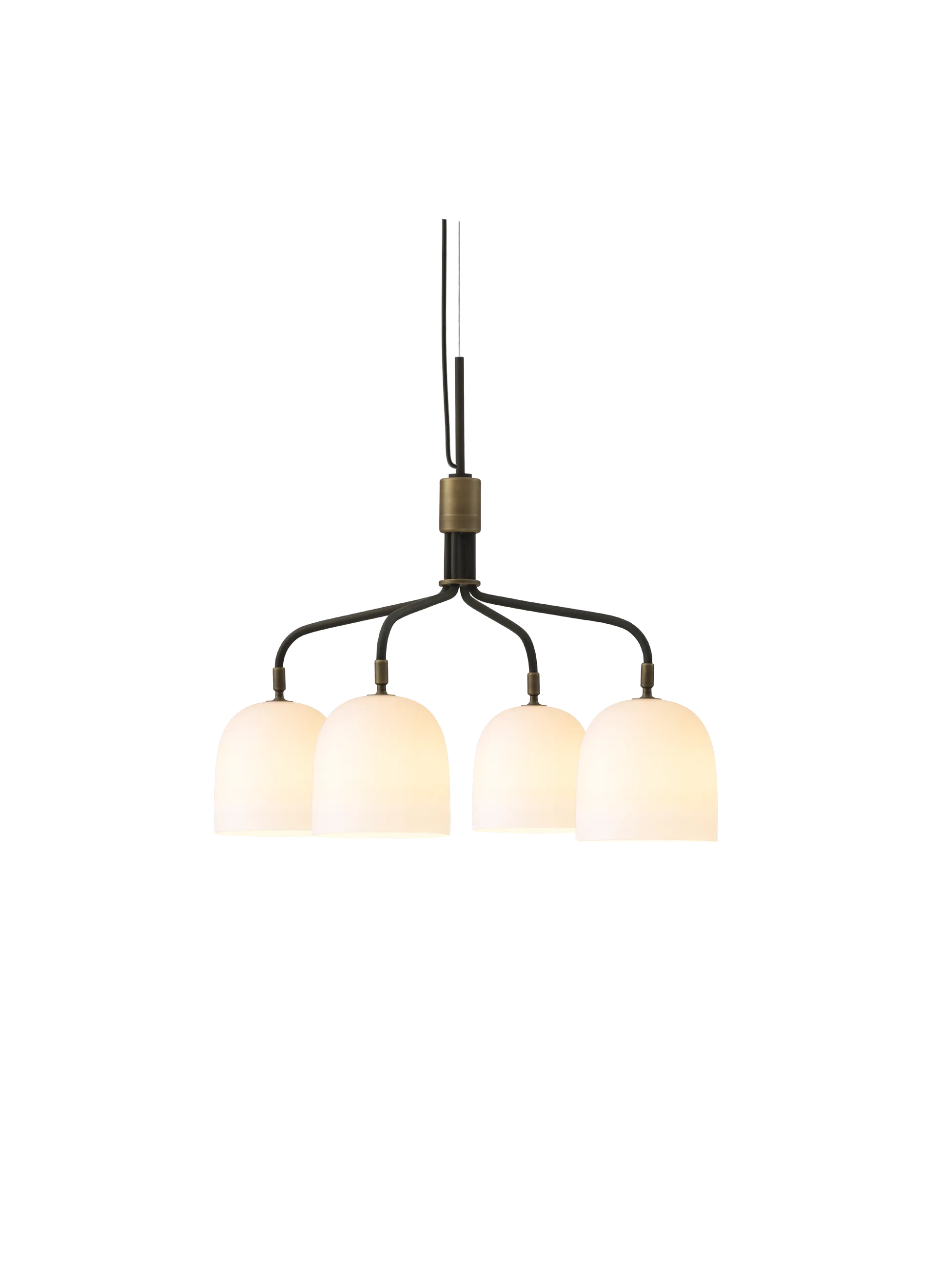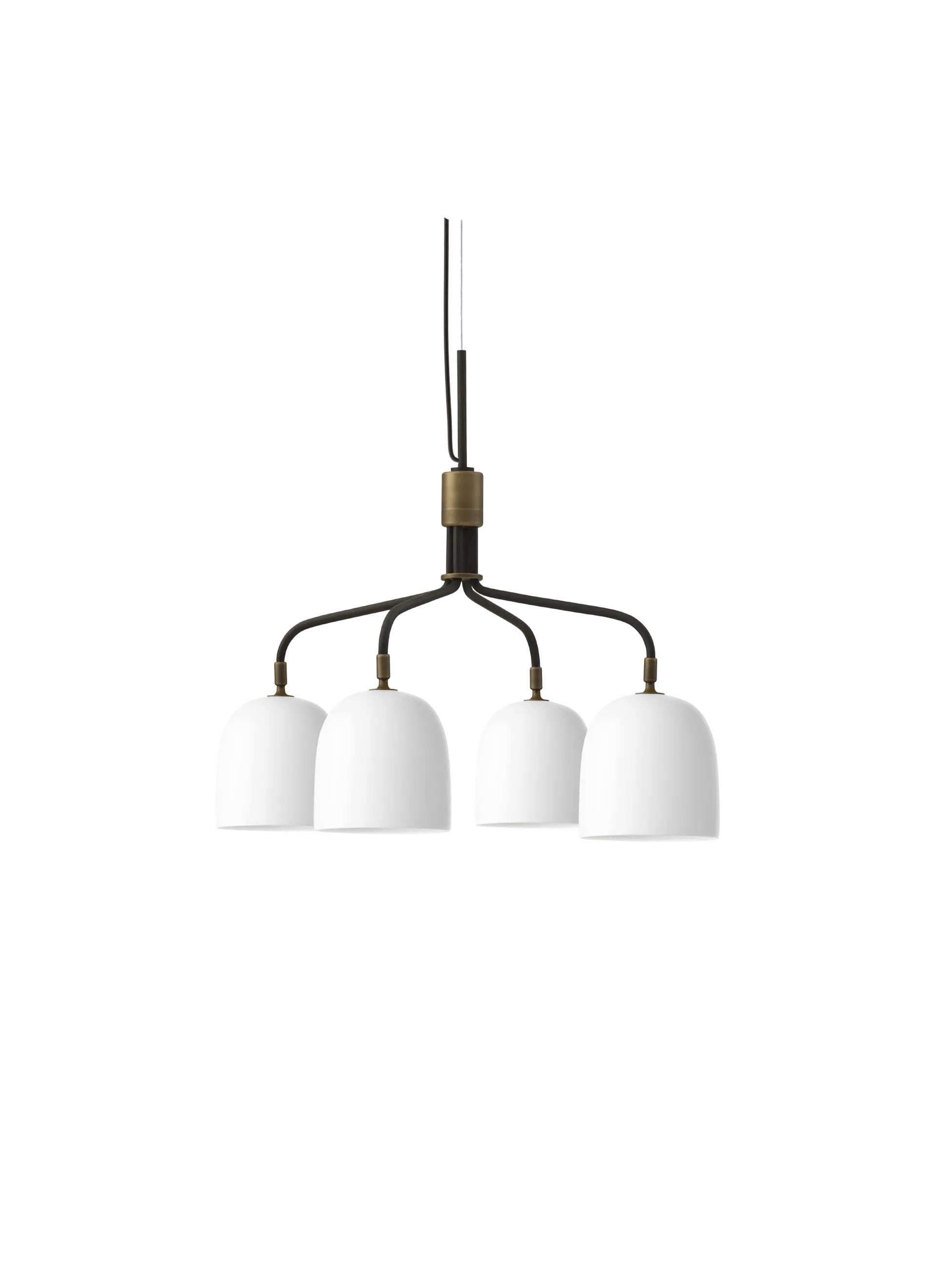 One option consists of a brass exterior with a gunmetal surface treatment and a brushed brass interior to create a beautiful, warm, tactile feel, while the solid shade encloses and directs the light, projecting an industrial and functional aesthetic. In contrast, the option of bone china creates a softer, gentler aesthetic and casting the light in a more ambient manner.