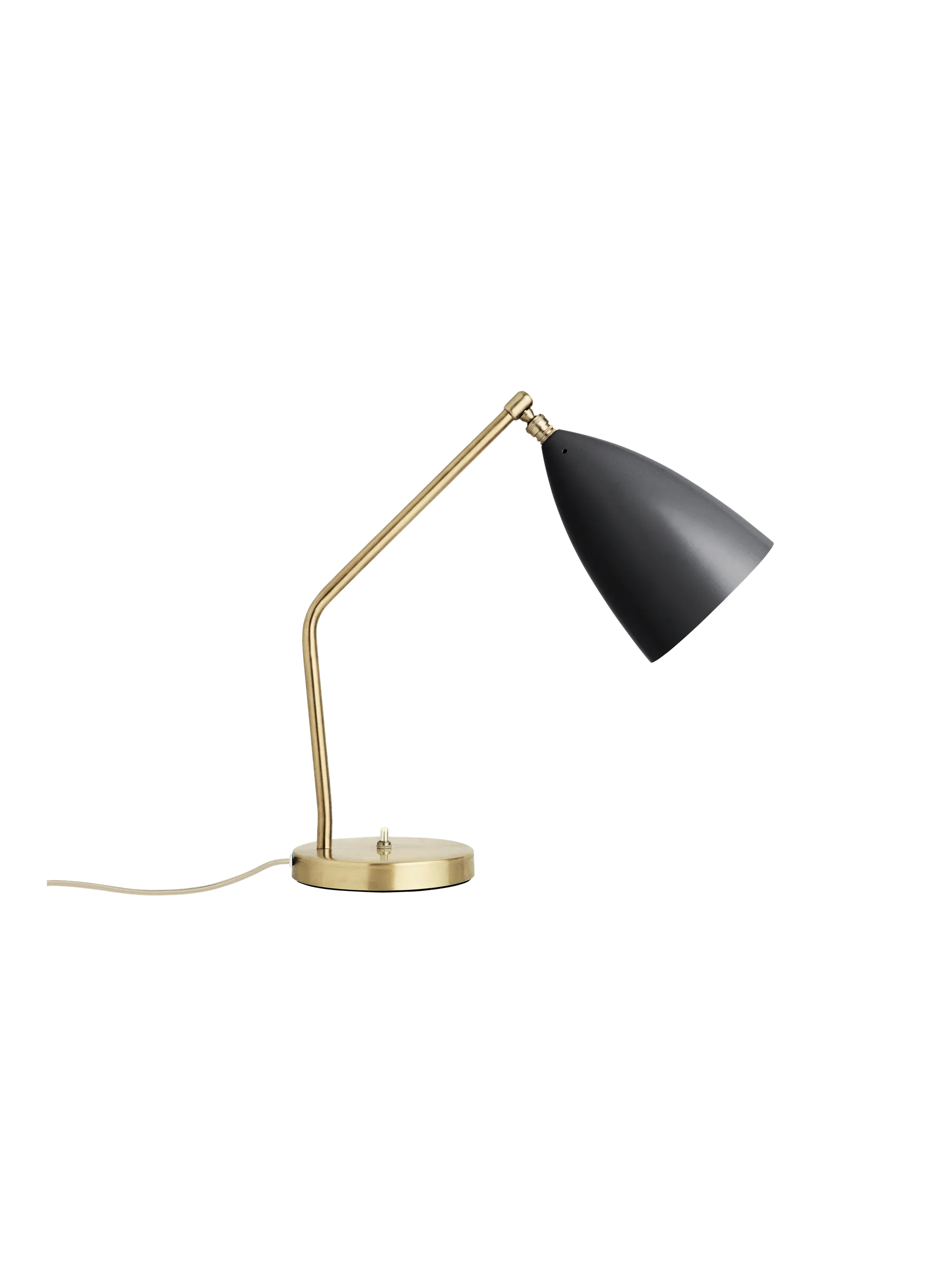 Greta M. Grossman designed the iconic Gräshoppa Table Lamp in 1947 and with its sophisticated yet playful design, it is still as relevant today. The distinctive, elongated conical shade is beautifully combined with a tubular brass stand, a great example of Grossman’s whimsical design language, that is both organic and modern. The Gräshoppa Table Lamp brings not only a perfect, functional addition to the desk but can also be used as a sophisticated light object in any room.