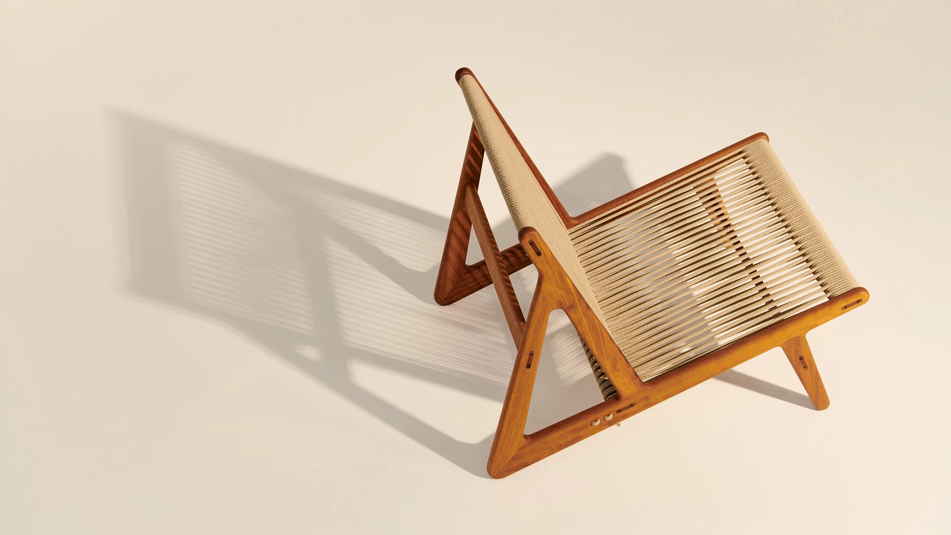 With its low-slung wooden frame and nautically evocative rope seat and backrest, Mathias Steen Rasmussen’s breakthrough MR01 Initial Lounge Chair has begged to be taken outside since its creation. Where the frame of the indoor edition is made from oak or walnut, the MR01 Initial Outdoor Lounge Chair is crafted from FSC®-certified iroko. This wood has proved itself ideally suited to Rasmussen’s design, maintaining its strong silhouette through the transition outside, and helping to emphasize the MR01 Initial Chair’s sculptural quality. As with the indoor edition, the MR01 Initial Outdoor Lounge Chair’s frame is constructed without the use of screws.