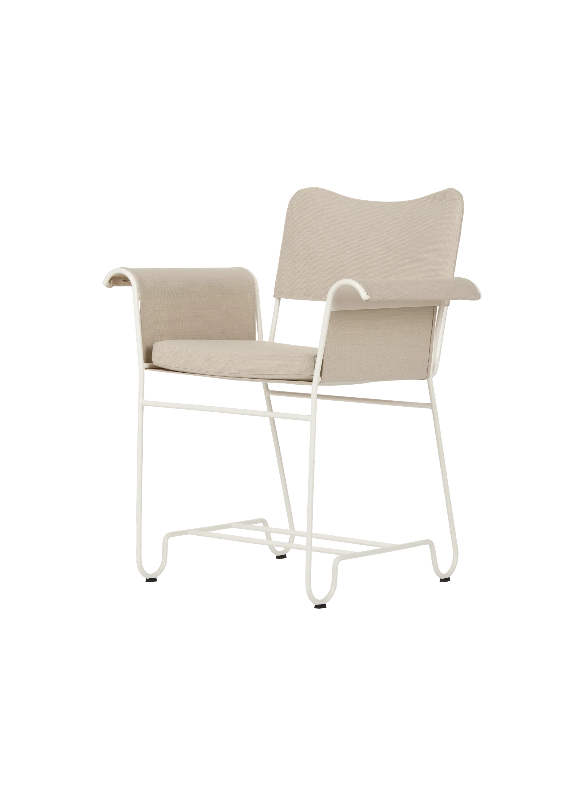 Combining material simplicity with a decadent aesthetic, the Tropique Collection comprises two dining chairs and a dining table. The frame of each piece is made from stainless steel rods, incorporating a distinctive statement curve at the feet – a signature of Matégot’s style and a feature that unites the collection into a clear and cohesive whole.