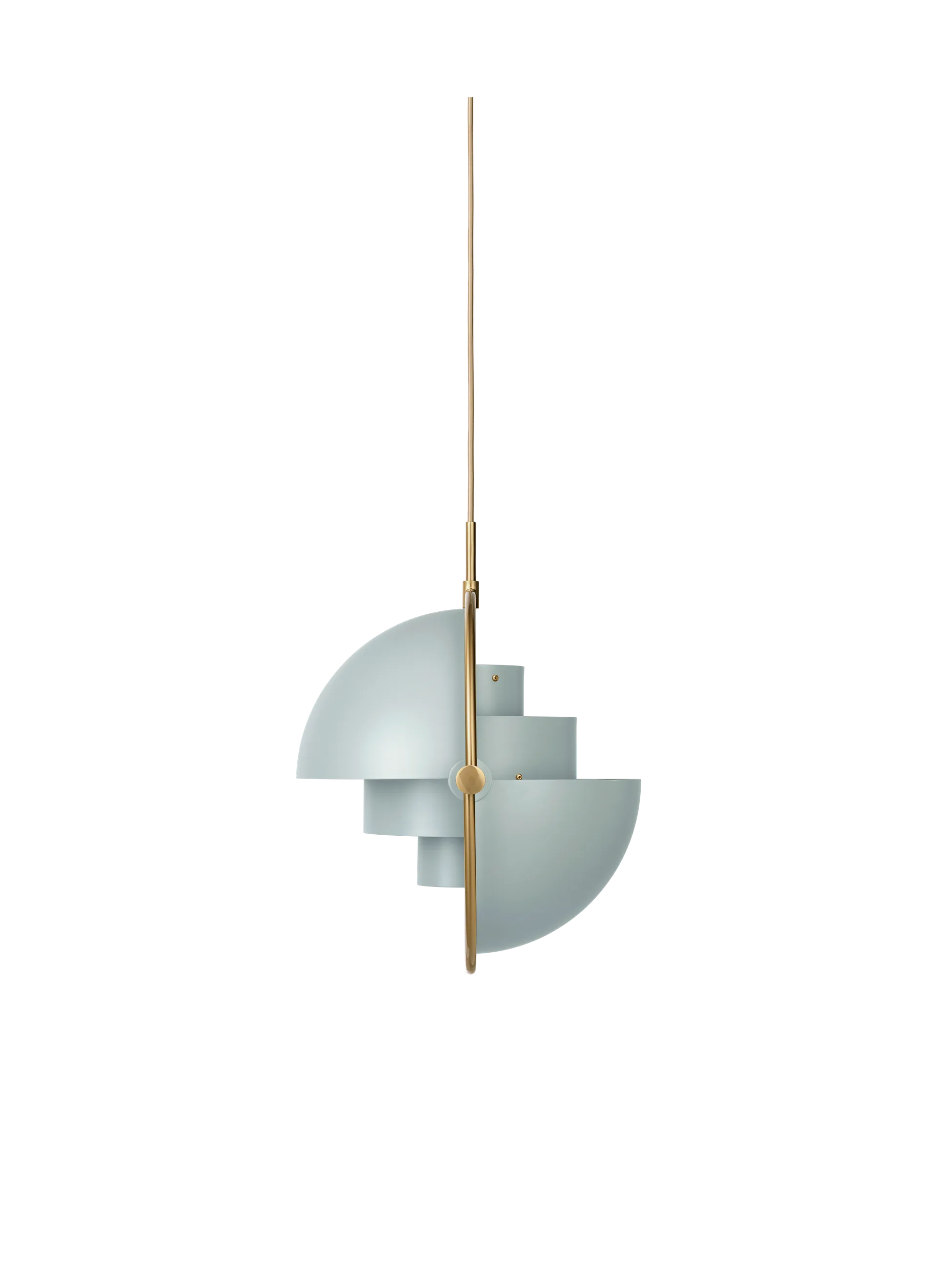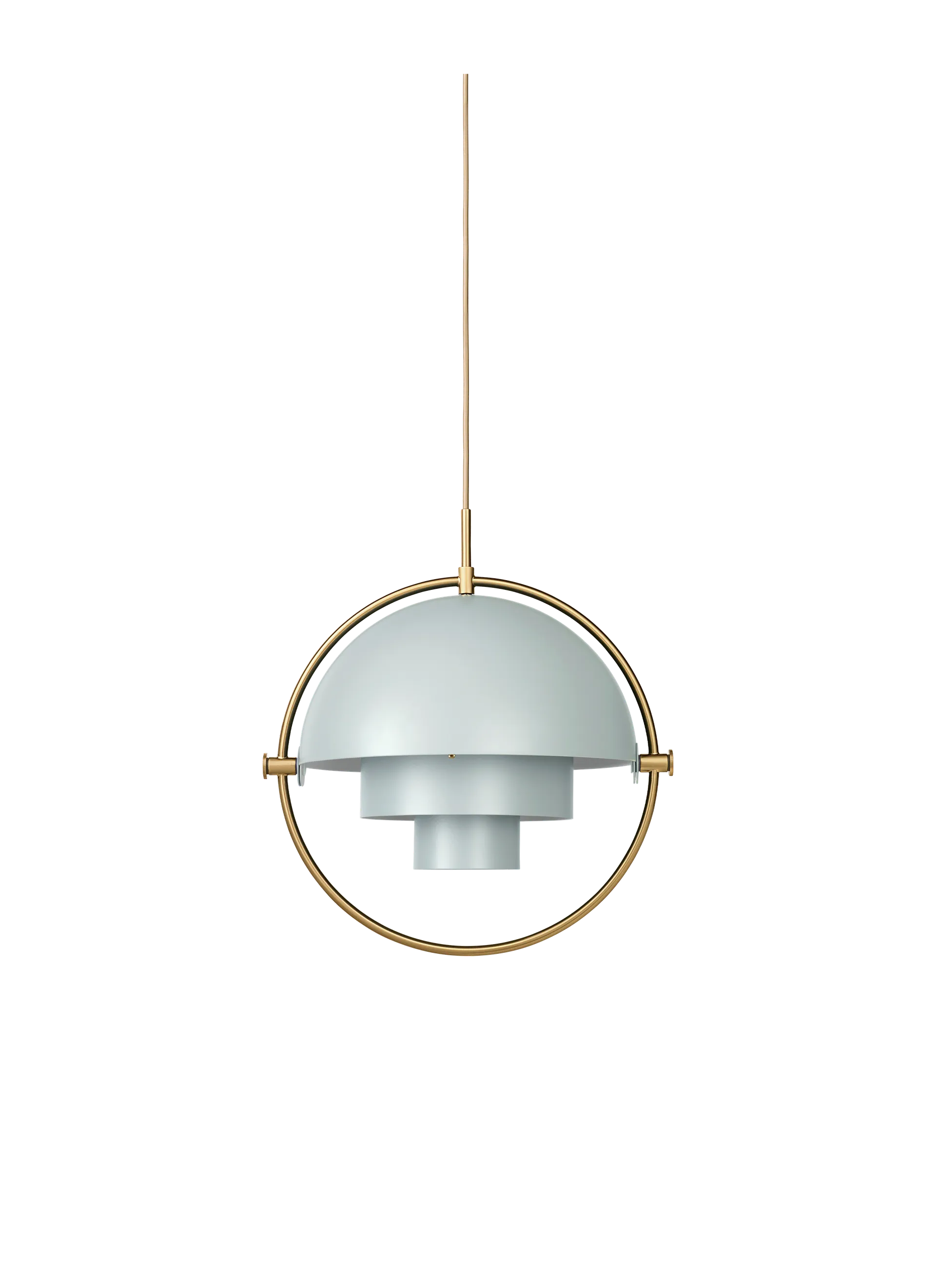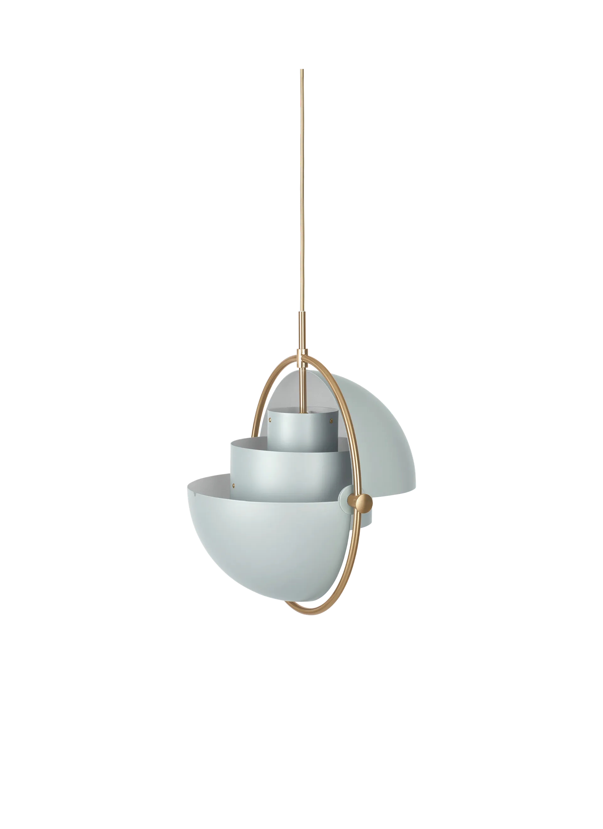 The Multi-Lite Pendant embraces the golden era of Danish design with its characteristic shape of two opposing outside, mobile shades that enable creating a personal installation and a wide range of lighting values in a room. By individually rotating the shades, the Multi-Lite Pendant can be transformed into multiple combinations where the light can be directed upwards, downwards or exude an asymmetrical art light. The Multi-Lite was first drawn in 1972 when Louis Weisdorf did an exception to his own design custom of using multiple repeating elements. Instead, it reflects his passion for diversity. Two cylindrical shapes lay the foundation of the lamp and a metal ring encompasses it and anchors the two quarter-spherical shades, which ultimately completes a picture of an iconic design with multiple purposes. The Multi-Lite Pendant has a timeless expression that fits into any domestic setting.