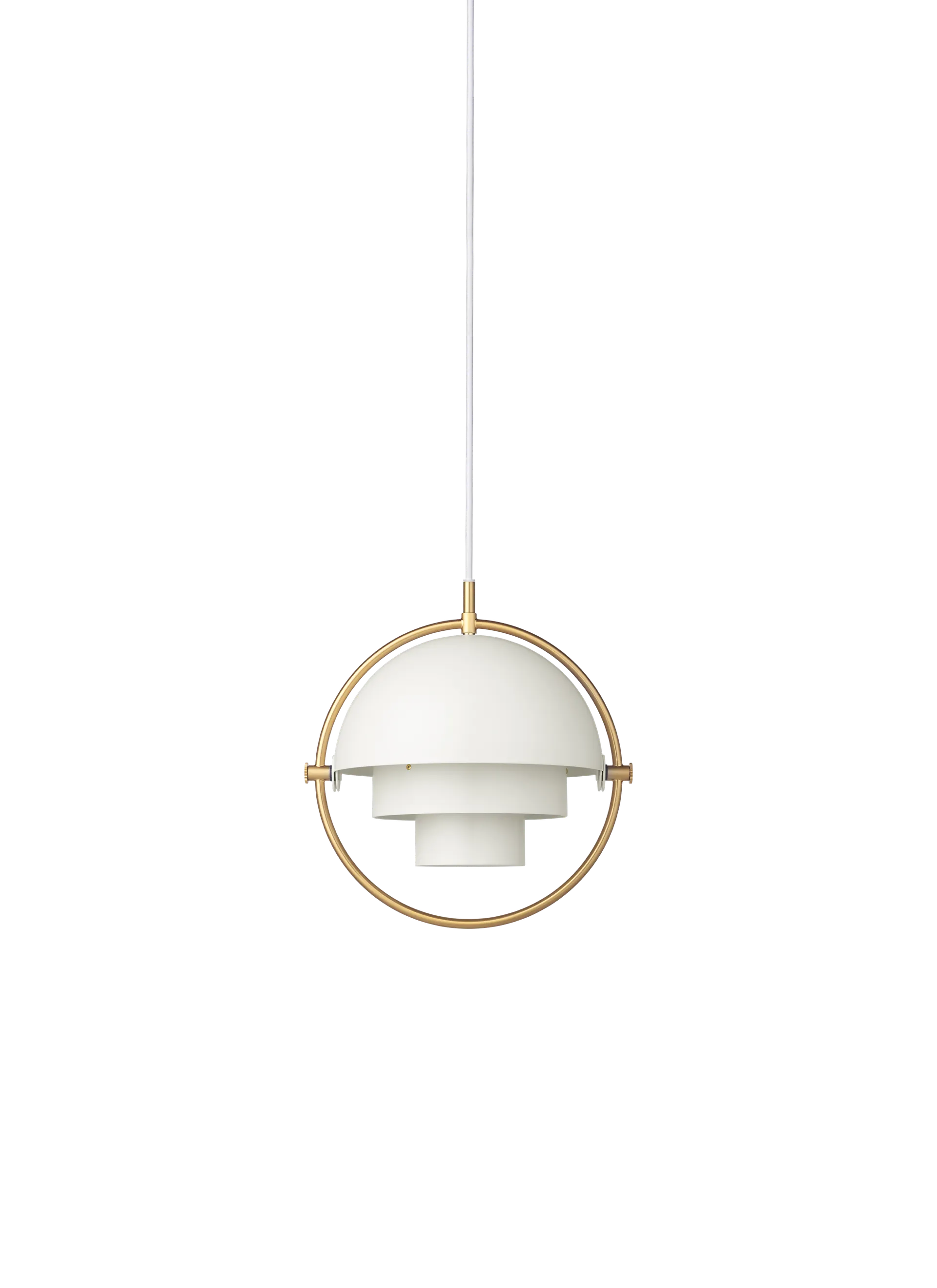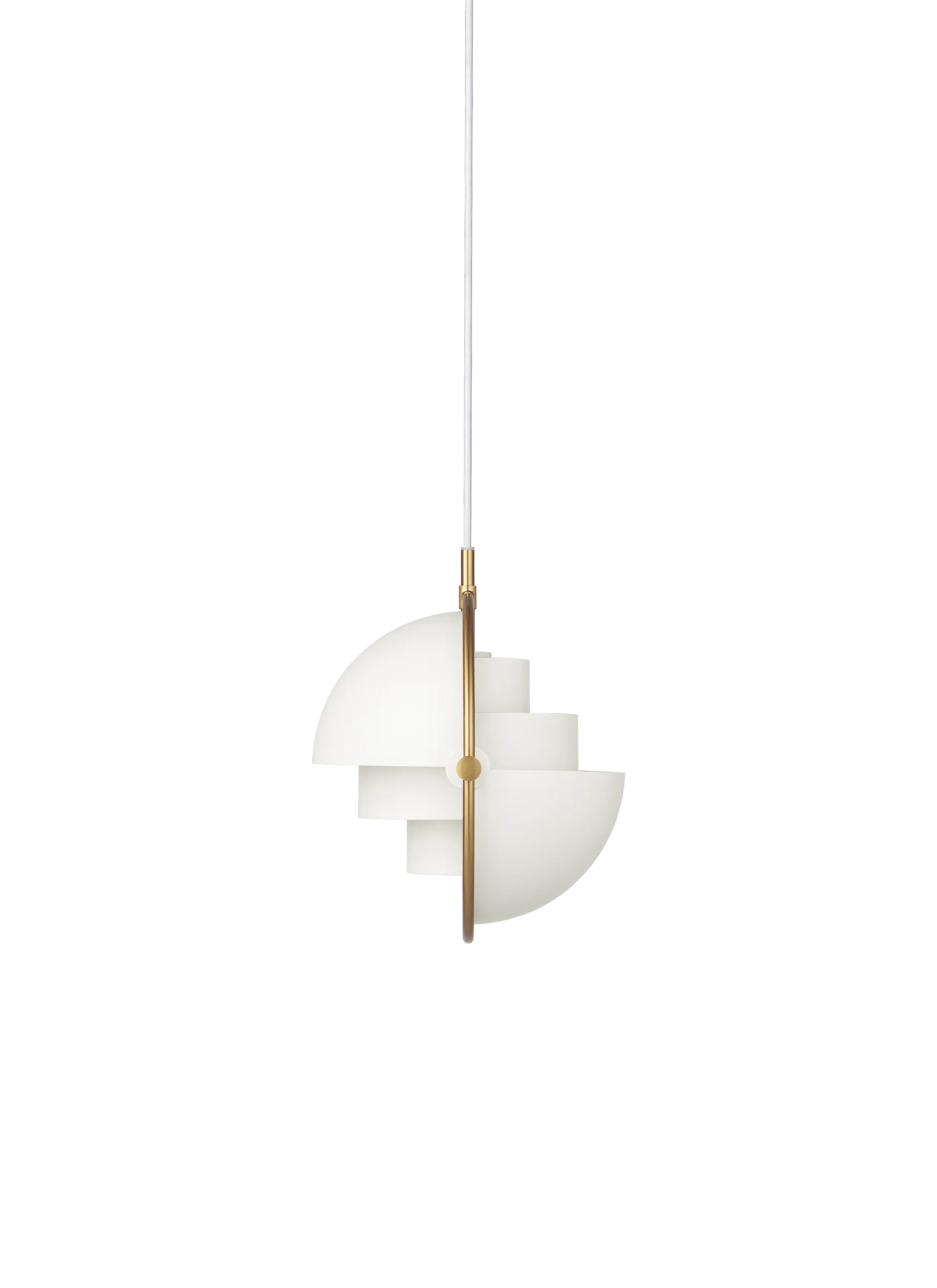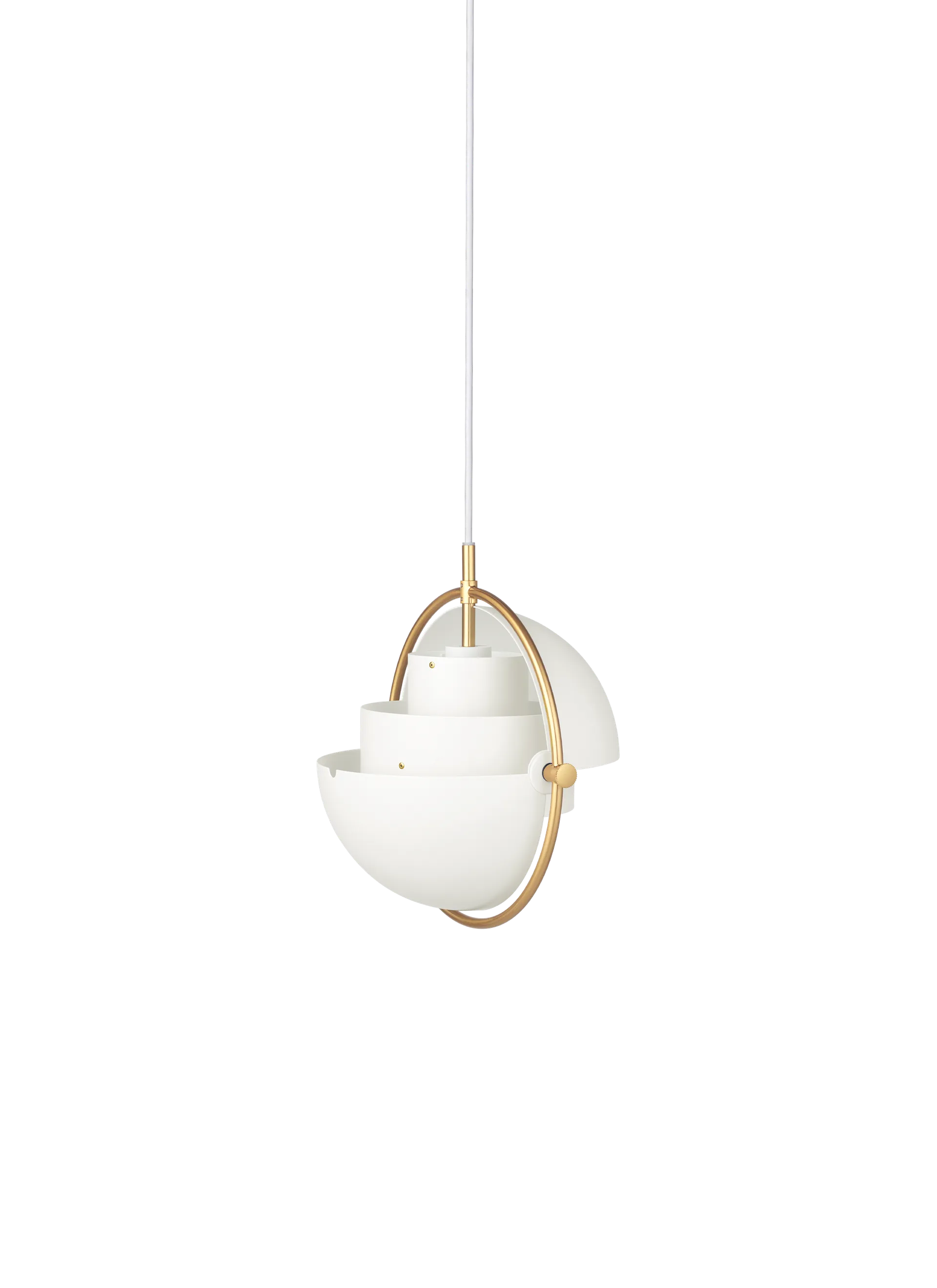 The Multi-Lite Pendant embraces the golden era of Danish design with its characteristic shape of two opposing outside, mobile shades that enable creating a personal installation and a wide range of lighting values in a room. By individually rotating the shades, the Multi-Lite Pendant can be transformed into multiple combinations where the light can be directed upwards, downwards or exude an asymmetrical art light. The Multi-Lite was first drawn in 1972 when Louis Weisdorf did an exception to his own design custom of using multiple repeating elements. Instead, it reflects his passion for diversity. Two cylindrical shapes lay the foundation of the lamp and a metal ring encompasses it and anchors the two quarter-spherical shades, which ultimately completes a picture of an iconic design with multiple purposes. The Multi-Lite Pendant has a timeless expression that fits into any domestic setting.