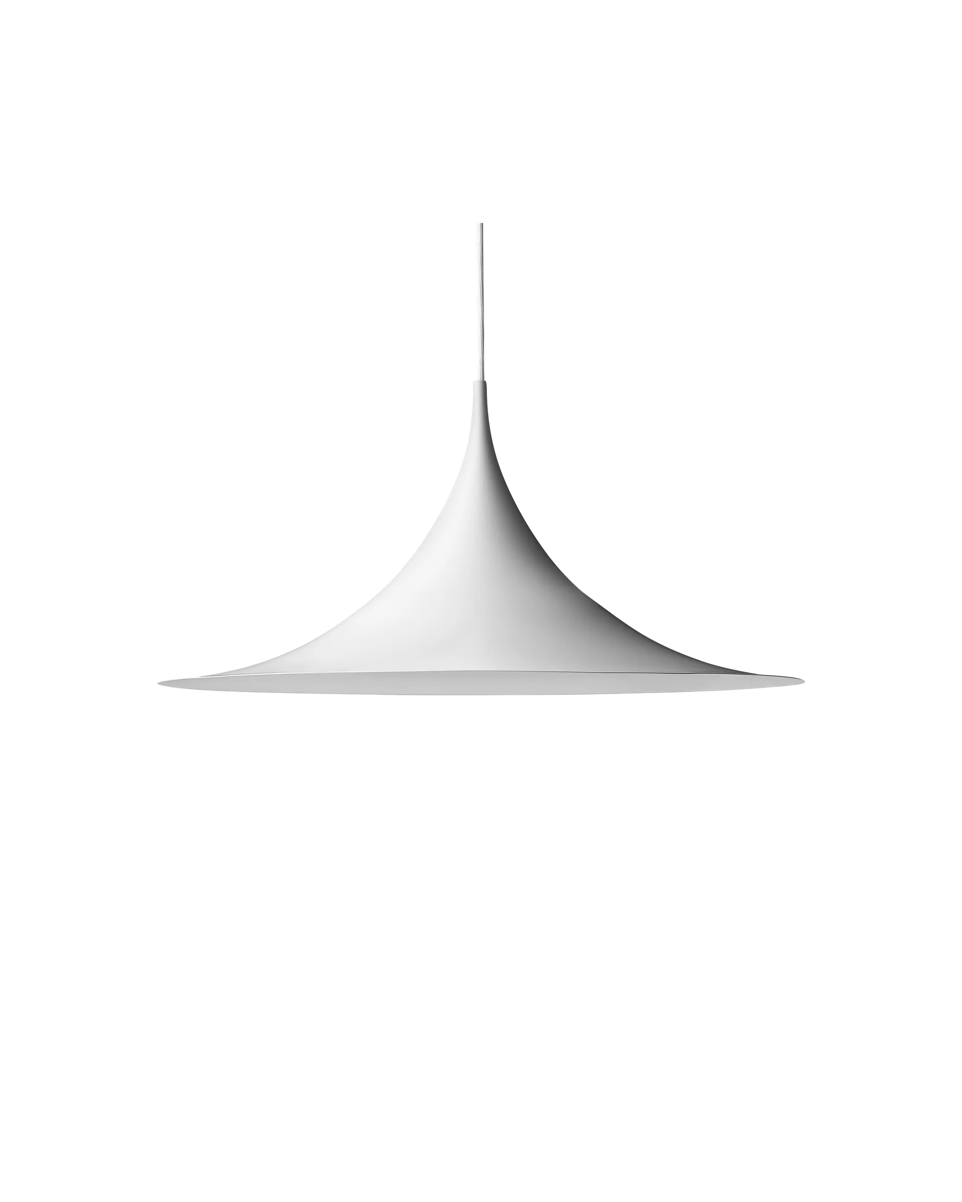 The Semi Pendant is a unique pendant lamp, based on two quarter-circles put together, back-to-back. It's distinctive arch-shaped, enamelled metal shade creates a diffused, cone-shaped light, ideal over a dining table or kitchen work surface. With its lightness of form, unique timeless design and range of colours and sizes, the Semi Pendant is extremely versatile and well suited to both private and public spaces. The Semi Pendant was designed in 1968 as a product of the creative partnership between Claus Bonderup and Torsten Thorup. Reacting against the soft organic forms, the so-called cosy era, that was dominating Denmark at the time, Bonderup and Thorup wanted to create a lamp that incorporated sharp, clean lines and a geometric shape. Their design was submitted for a competition at the Royal Danish Academy of Fine Arts, School of Architecture and won first prize. In the 1980s the pendant achieved great success and became, at that time, the best-selling Danish design and gained worldwide recognition and iconic status.