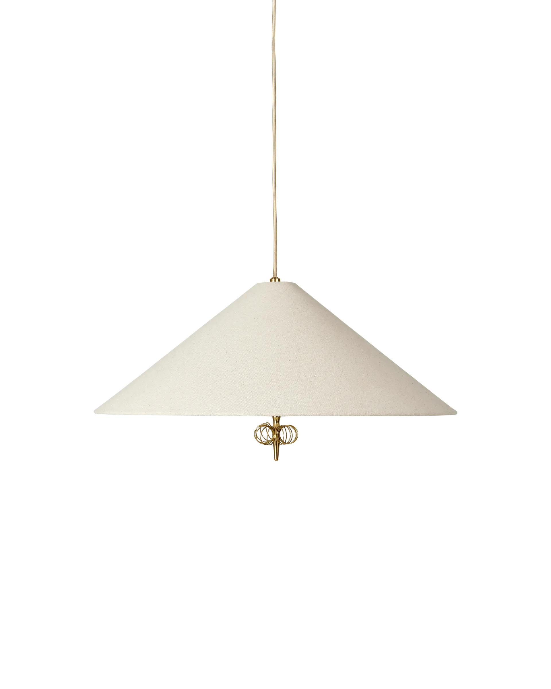 Known to many as ‘the man who illuminated Finland’, the legendary designer and met- alsmith Paavo Tynell is one of the leading lights of 20th-century industrial design . A classic 1950s Tynell design, the 1967 pendant expands on the design language developed in 1948 for the 1965 pendant. The 1967 is characterized by a conical canvas shade which exudes warm ambient light, with Tynell's signature brass hardware adding a subtle, premium expression. Below the bulb, a fabric diffuser modulates the light and, beneath this, a decorative brass detail gives each lamp a flourish of character, and subtly influences the play of light it generates.