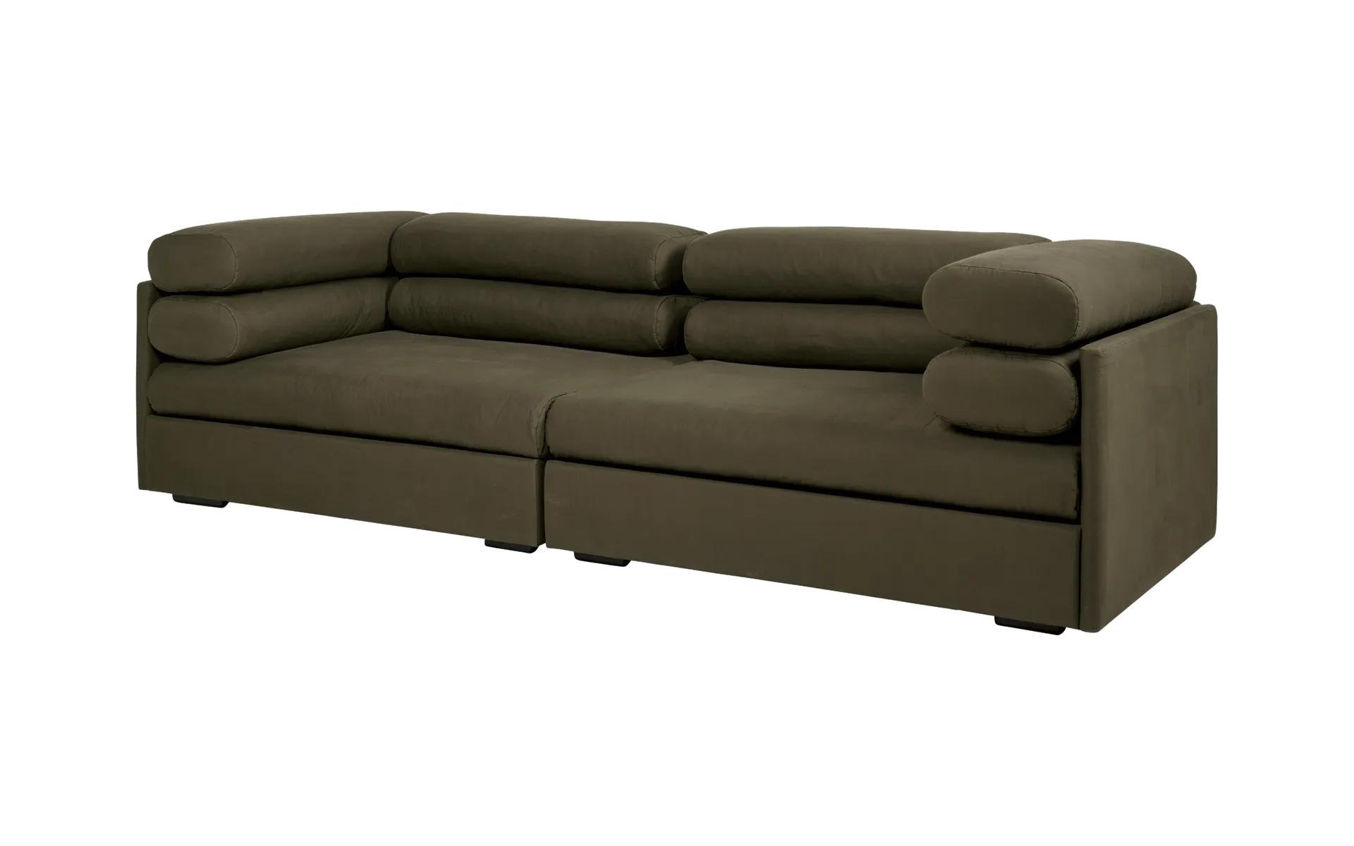 Expressing an inviting softness with architectural structure, the Elogio Sofa is one of the iconic furniture designs to emerge from the husband-and-wife studio of Tobia and Afra Scarpa. Created in 1974 as an evolution of the Erasmo sofa, it introduced a new modular approach to domestic living, allowing for multiple configurations depending on the shape, scale, and style of the space. Revisited by Tobia Scarpa with GUBI five decades later, this edition has been subtly upgraded to enhance comfort and finesse the geometry of the design. Its interchangeable cushions can be reoriented to suit different needs and upholstery options, including GUBI’s new Reales and Fustagno fabrics, enhance the sofa’s tactile and visual character.