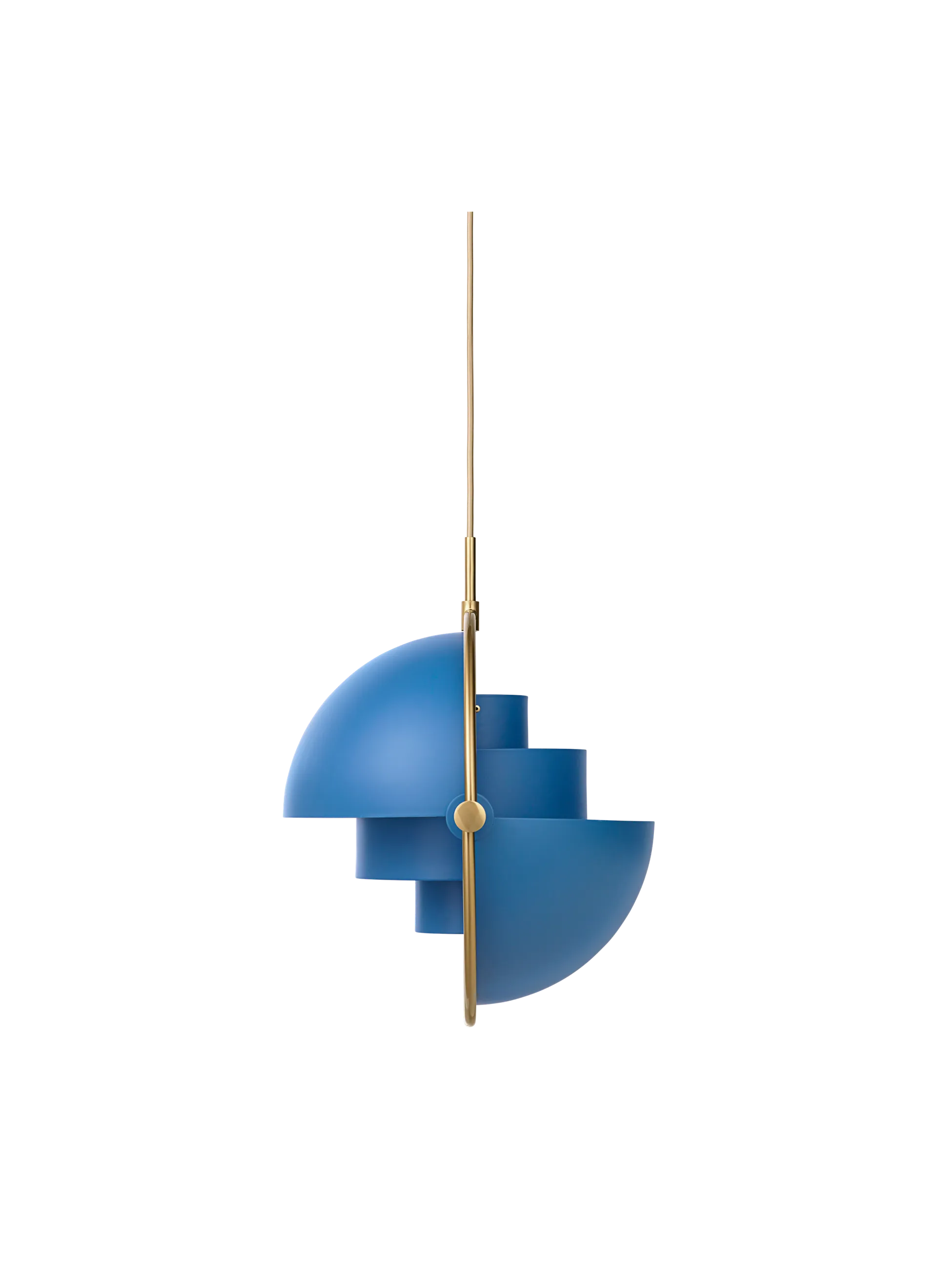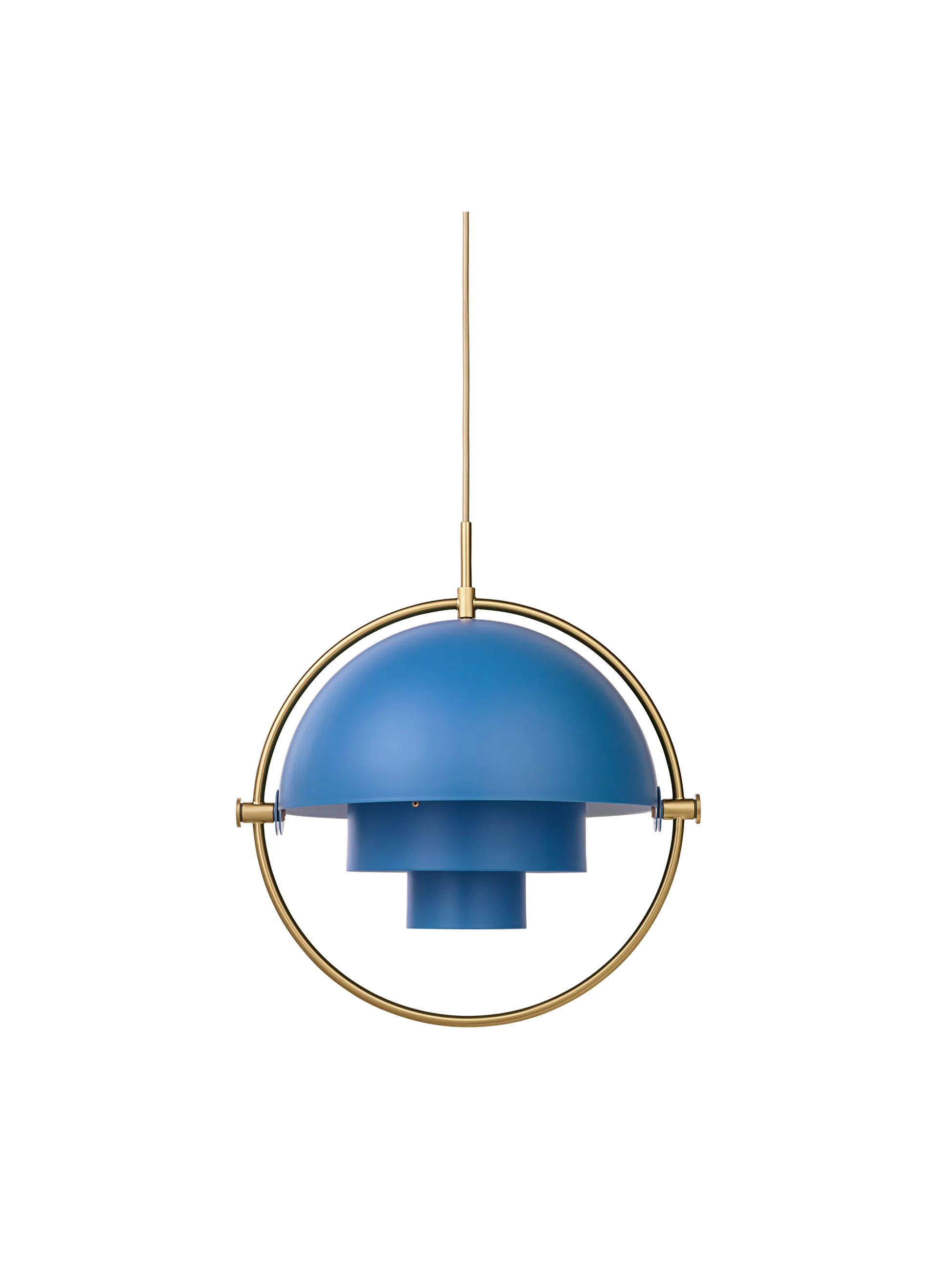 The Multi-Lite Pendant embraces the golden era of Danish design with its characteristic shape of two opposing outside, mobile shades that enable creating a personal installation and a wide range of lighting values in a room. By individually rotating the shades, the Multi-Lite Pendant can be transformed into multiple combinations where the light can be directed upwards, downwards or exude an asymmetrical art light. The Multi-Lite was first drawn in 1972 when Louis Weisdorf did an exception to his own design custom of using multiple repeating elements. Instead, it reflects his passion for diversity. Two cylindrical shapes lay the foundation of the lamp and a metal ring encompasses it and anchors the two quarter-spherical shades, which ultimately completes a picture of an iconic design with multiple purposes. The Multi-Lite Pendant has a timeless expression that fits into any domestic setting.