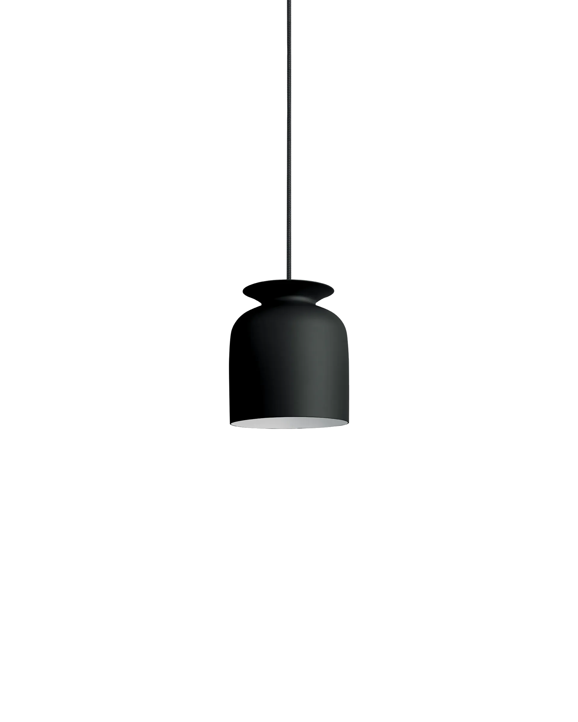 With it's industrial, yet friendly look Ronde Pendant is well-suited for both home decor and professional environments. Hang a few Ronde Pendants in the kitchen, place the smallest Ronde on each side of the bed or use one of the larger Ronde Pendants above the dining table to set just the right lighting atmosphere. The bell-shaped Ronde Pendant in two sizes has reference to the traditional pendant lamp and the heyday of 1970's lightning design; however, in a modern interpretation. A unique detail of the Ronde Pendant is the opening on the top with an overhanging collar that reminds of a jar such as a vase or an amphora. The mainly downwards directed light from conventional pendants does in this design also spread out of the spout-like opening and casts a smooth light gradient at the wire and ceiling. The hand-turned aluminium lamp shade with an ultra-matt lacquer almost makes it look as if it was made of ceramics. Ronde is in several languages the word for round, circular or rotating but it is also the flat blank used for metal spinning technique, which is rotating around a mould core and shaped to a 3-dimensional body.