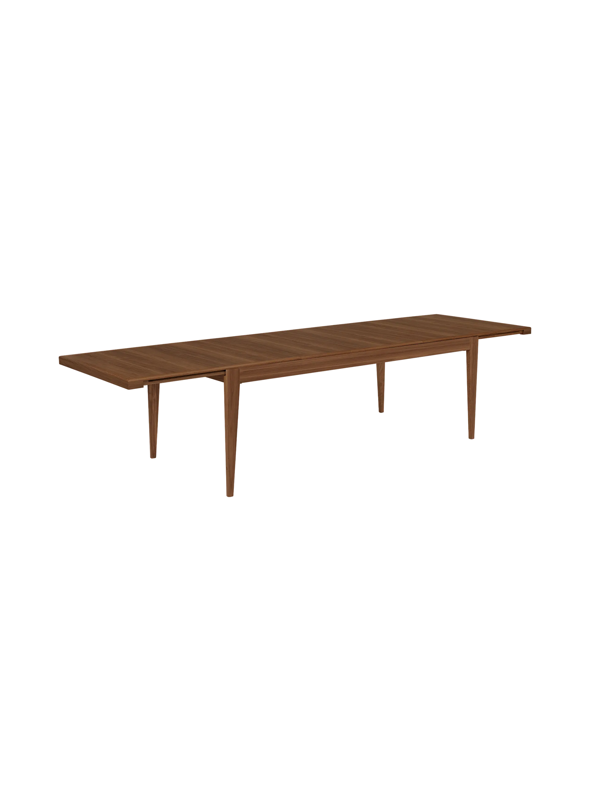 The S-Table designed in 1953 is part of a unified collection that also includes the B-Table, C-Chair and Trèfle Stool. With its simple tapered legs, sturdy frame and space-efficient rectangular tabletop - extends by a meter, adding an extra two place settings on either end, meaning it can now seat up to ten. The tabletop splits across the center and slides apart, creating space for two insert leaves, which are stored underneath when not in use. The entire table, even the extending mechanism, is made from solid and veneered oak or walnut.