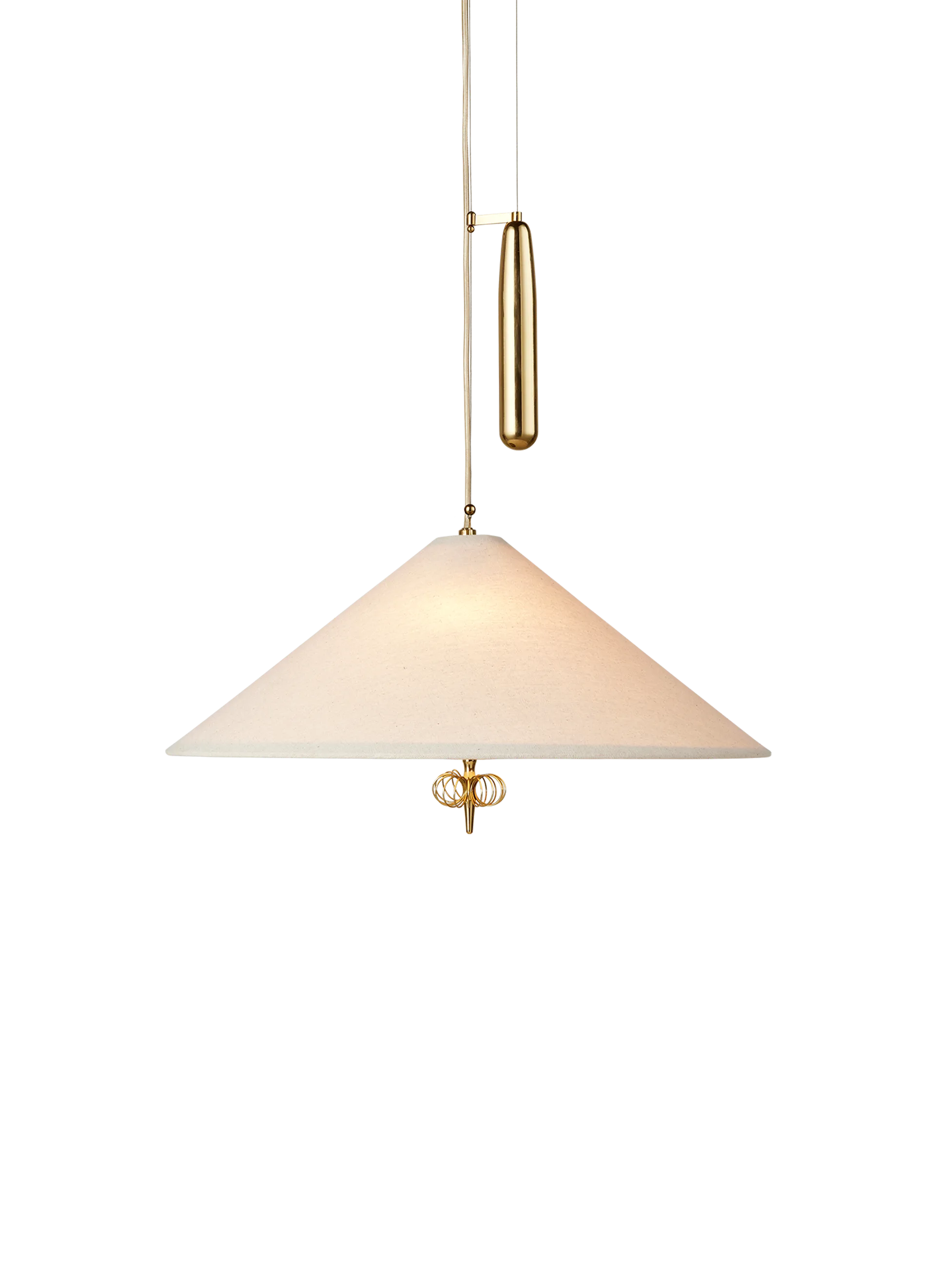 Introducing the 1967, a stunning piece distinguished by its conical canvas shade that emanates a gentle, warm ambient glow. Tynell's iconic brass hardware adds a touch of understated luxury to this luminary. Below the bulb, a fabric diffuser expertly modulates the light, while a captivating brass detail imparts a delightful character, subtly influencing the mesmerizing play of light it casts. Each lamp exudes a harmonious blend of elegance and artistry.