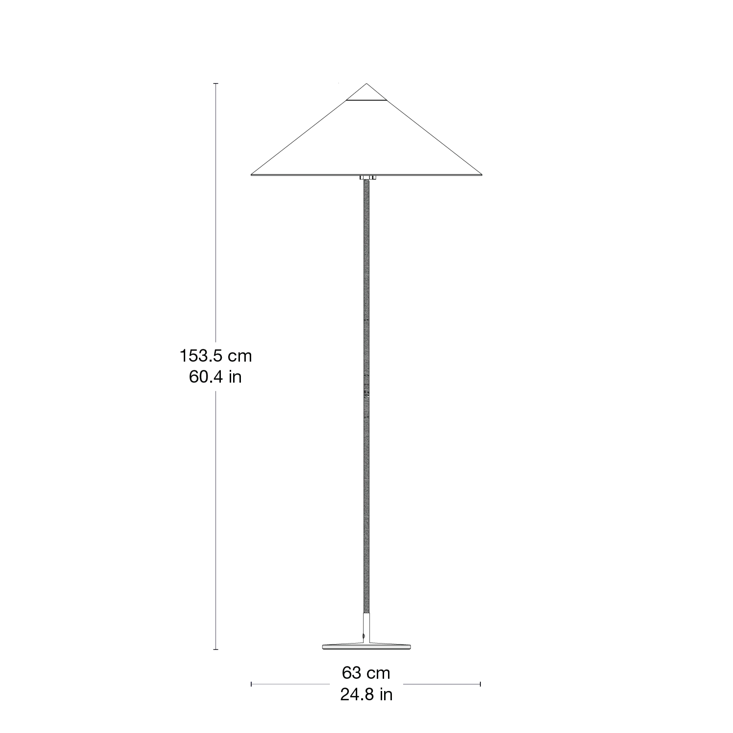 Discover the 9602 Floor Lamp, affectionately known as "Chinese Hat," a masterpiece envisioned by the esteemed Paavo Tynell back in 1935, specifically crafted for the iconic hotel Aulanko. Embodying elegance and airiness, this lamp showcases an exquisite lampshade and a delicately rattan-covered stem, an expression of the designer's boundless imagination and unmatched talent to conjure designs of enduring allure.