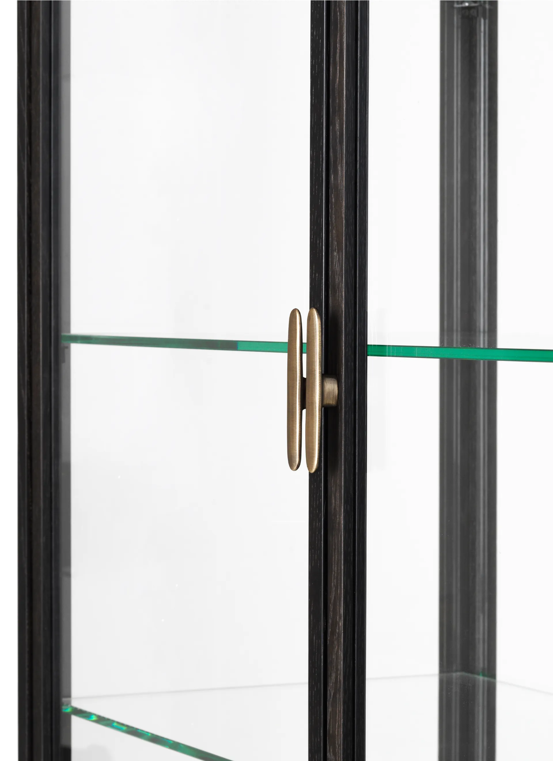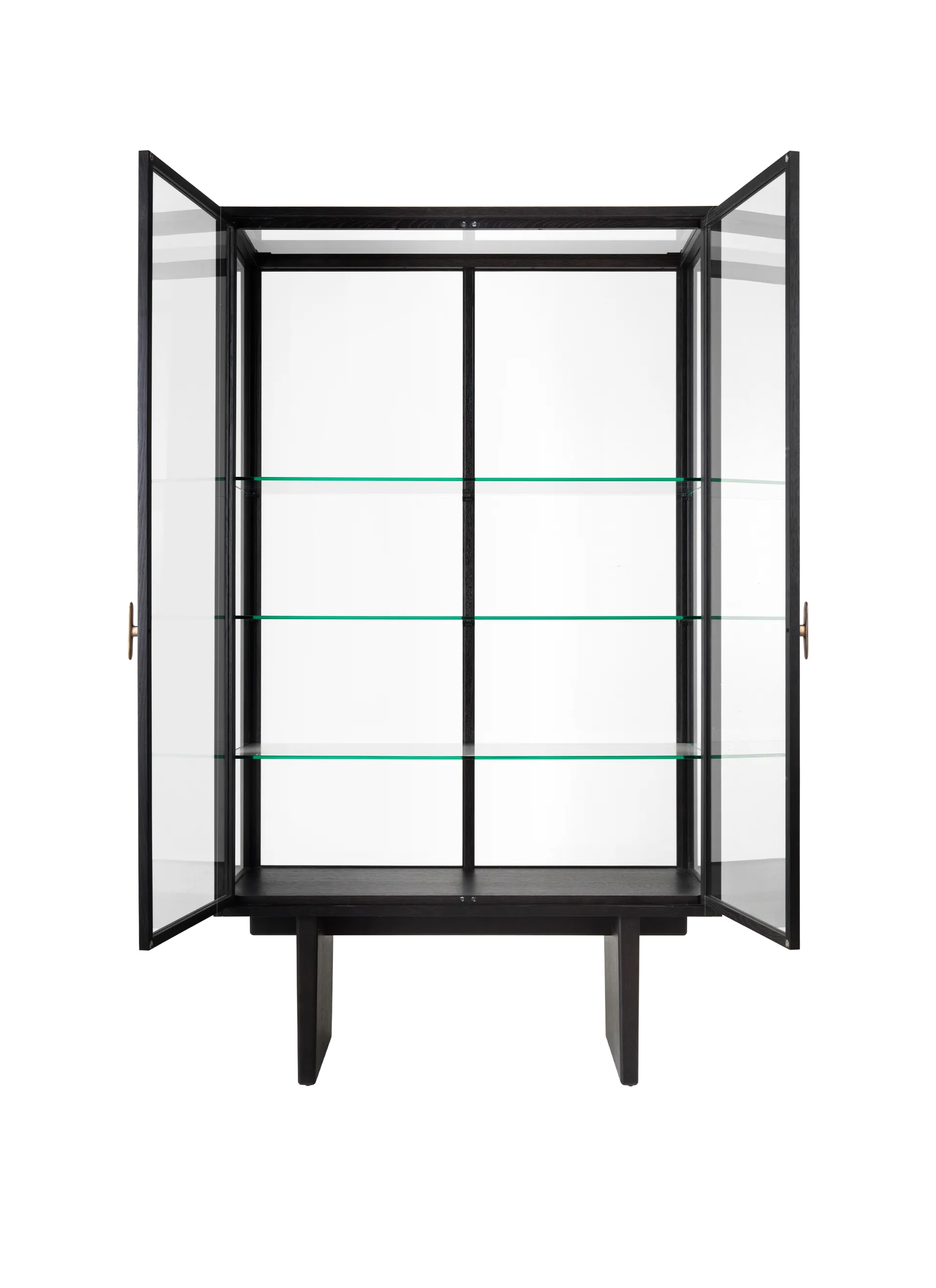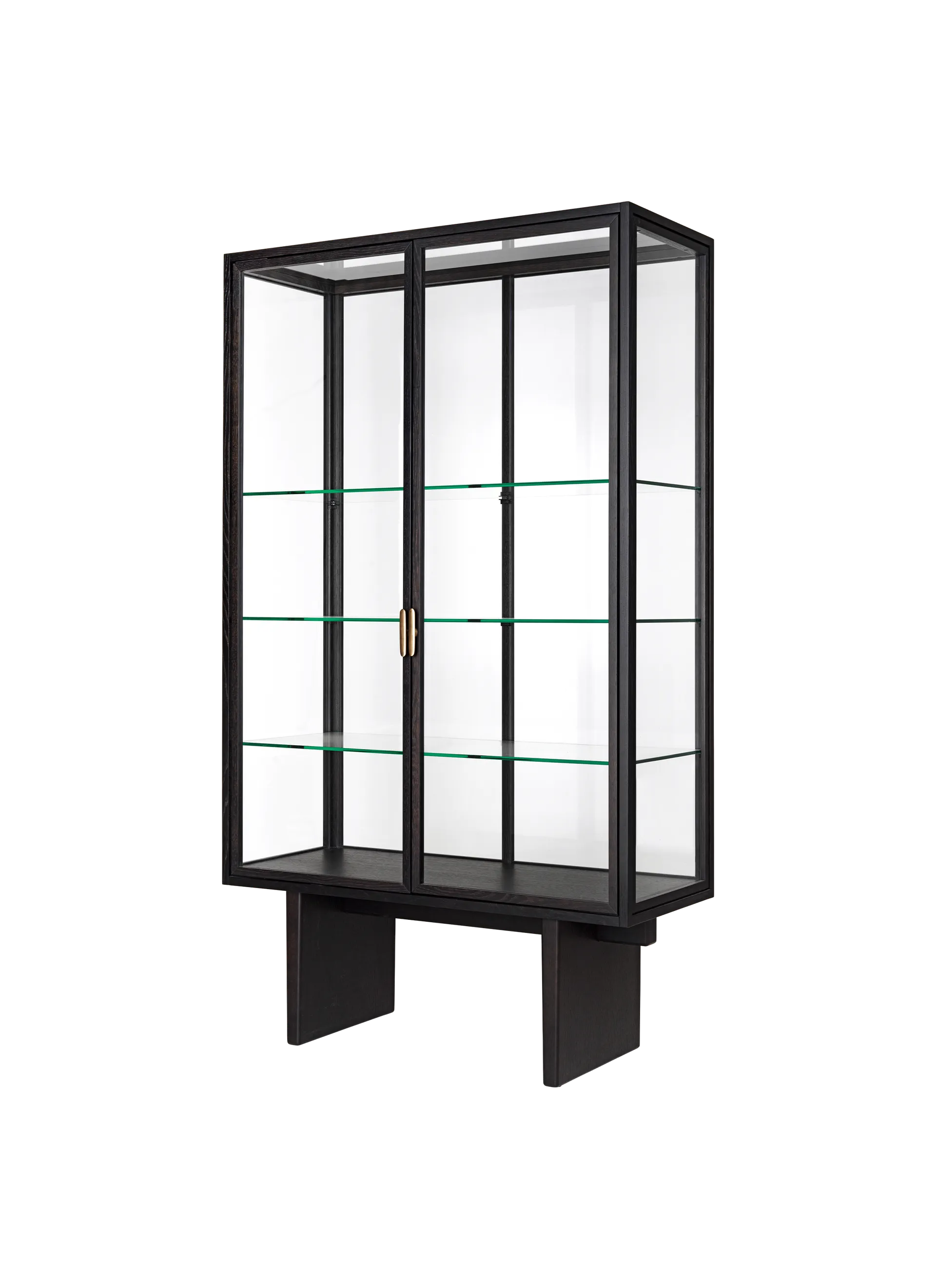 Understated sophistication, timeless aesthetics, and outstanding craftsmanship are the hallmarks of this statement display cabinet designed by Space Copenhagen. Inspired by antique Japanese furniture in both style and craft, this oak-veneered cabinet is elevated by two vertical legs, providing a lightness to its appearance and an understated elegance to its form. The frame secures a tall glass case, with three glass shelves, and two perfectly-aligned glass doors, completing the overall impression of lightness and transparency. Its very simplicity means the Private Vitrine can be used to store and display many types of possessions, from books to precious ornaments.