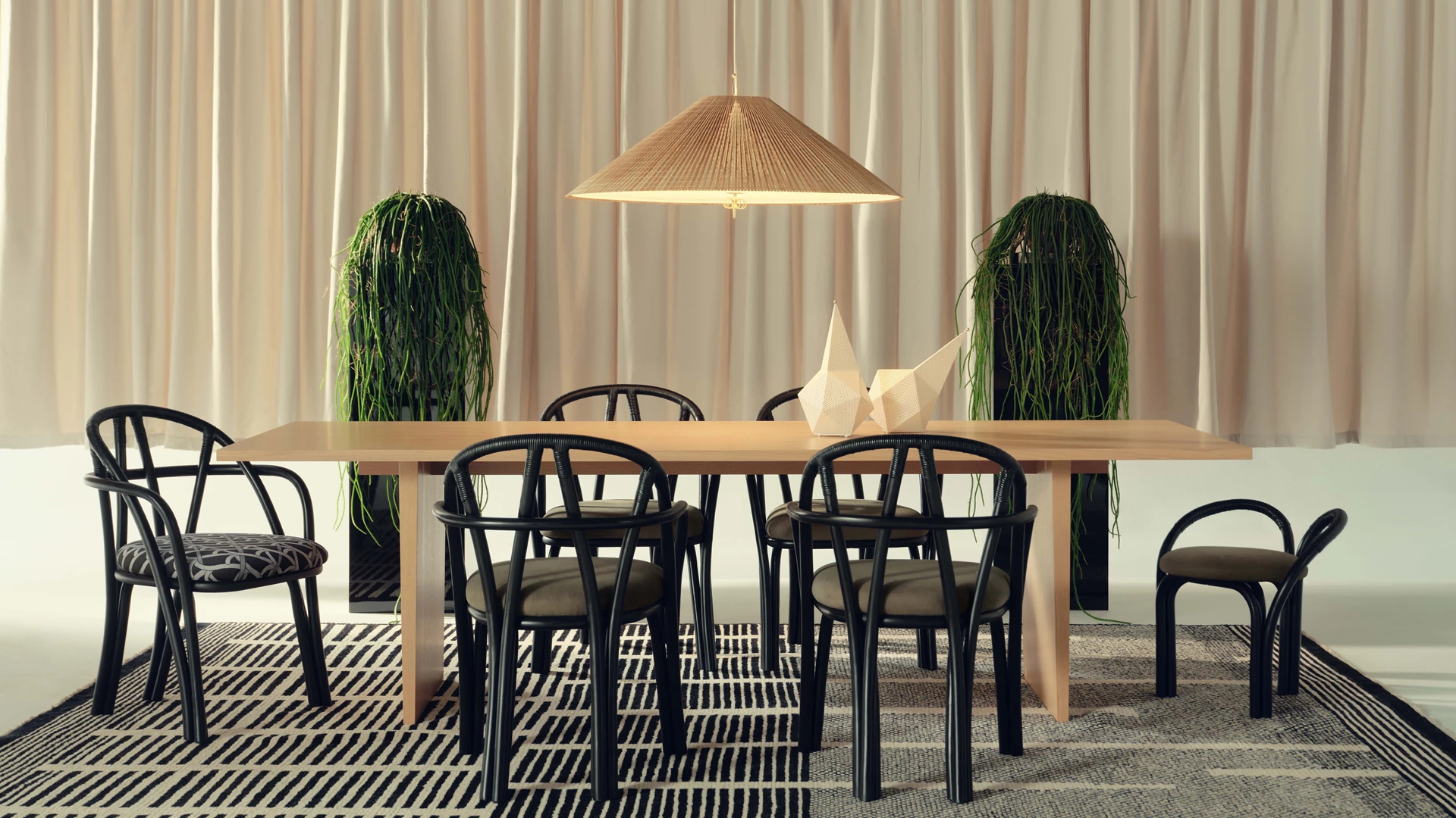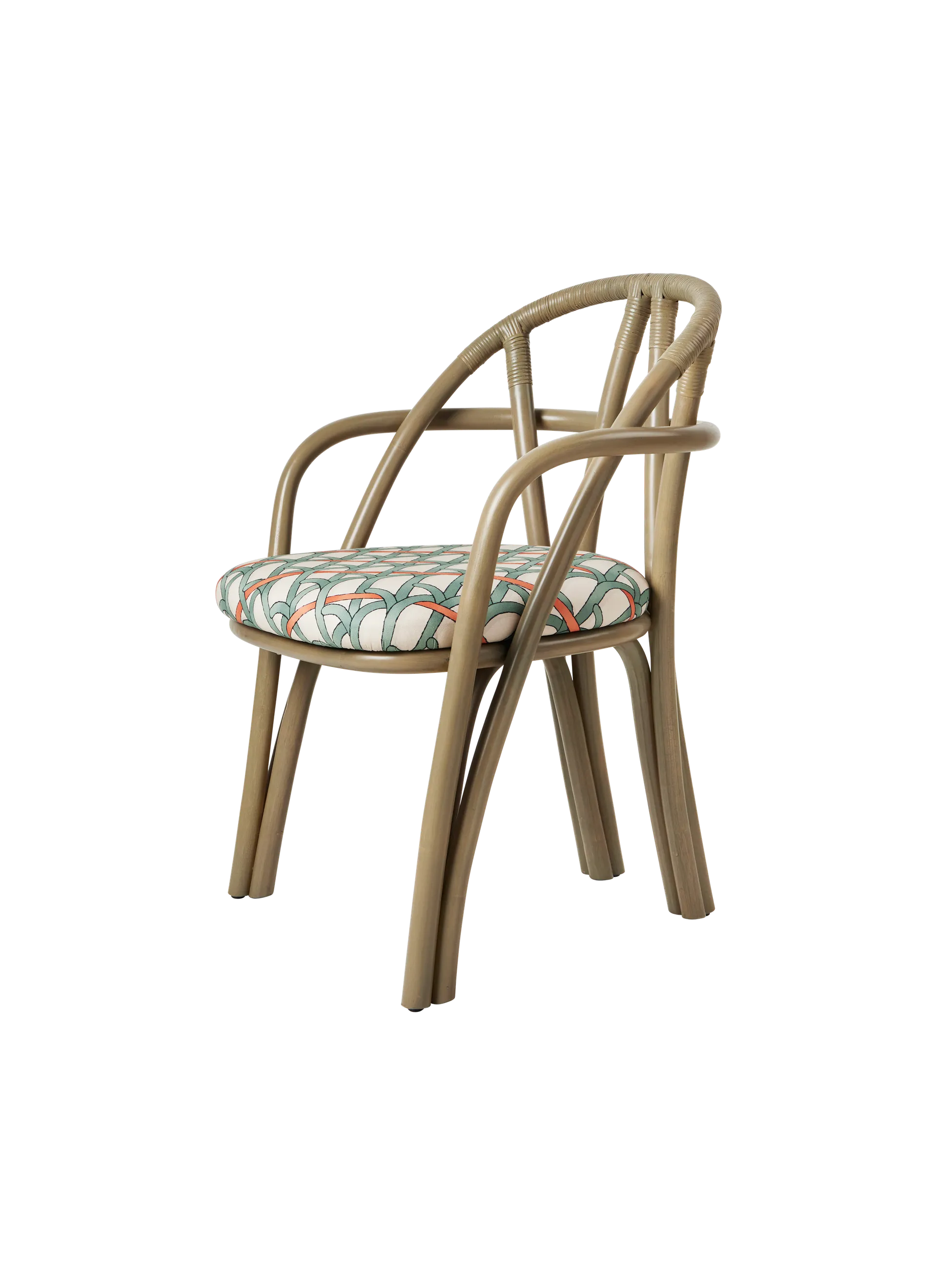 Designed for GUBI by Michele De Lucchi’s AMDL Circle, Bistra is a sculptural furniture collection that distills the classic bistro chair to its essential form, finding elegance and timelessness in its core structural elements. Comprising a dining armchair, a lounge chair, and a three-legged stool, the collection is rooted in its principal material: steam-bent rattan. Its visual language draws from the idea of organic growth, expressed in the tree-like contours of the legs, arms, and backrest, and echoed in the custom-designed upholstery, which features a botanical motif inspired by a Leonardo da Vinci fresco. Available in three frame colors and multiple upholstery fabrics, Bistra is a versatile seating collection that blends artisanal furniture-making traditions with exquisite contemporary craftsmanship.
