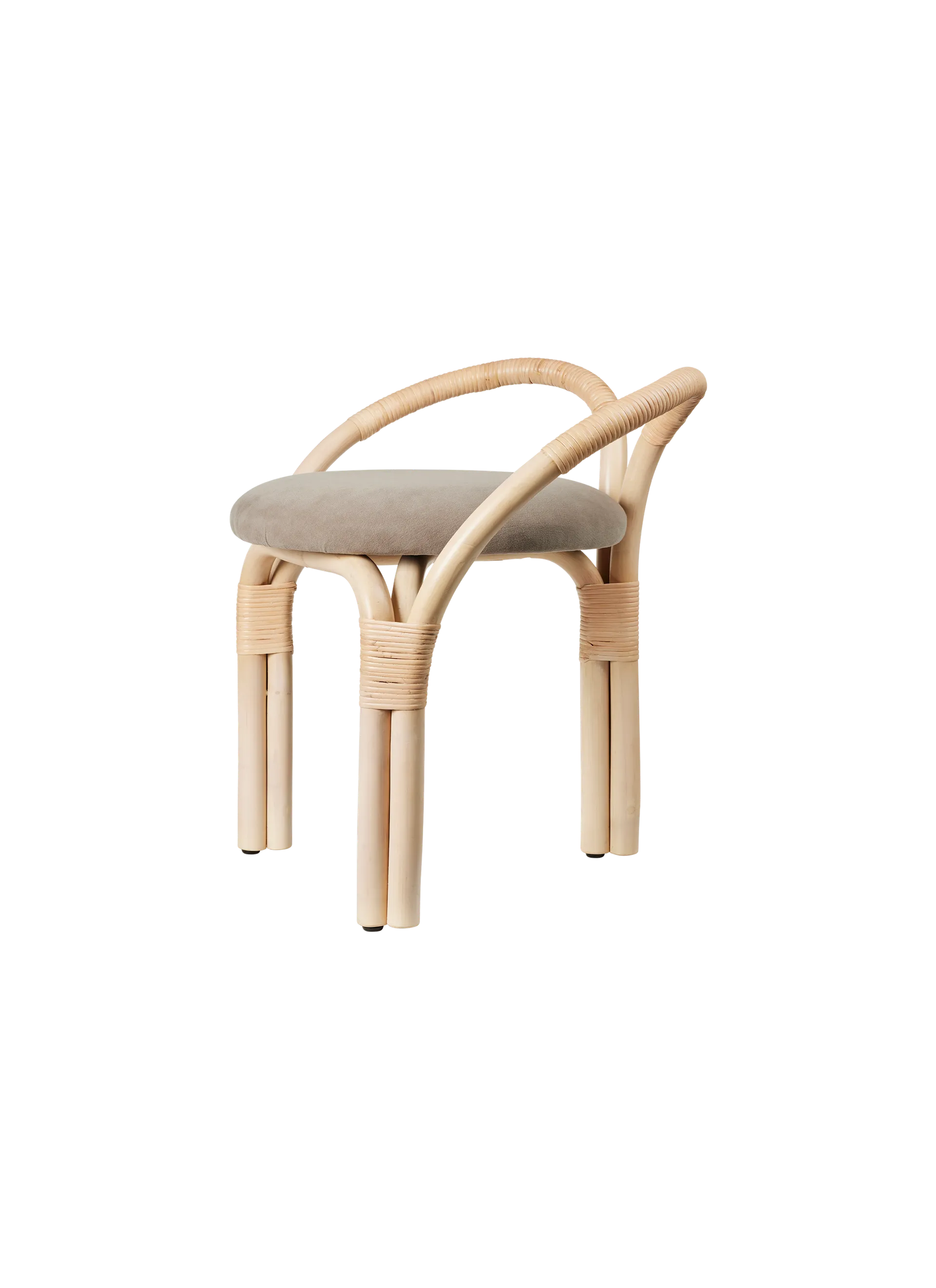 Designed for GUBI by Michele De Lucchi’s AMDL Circle, Bistra is a sculptural furniture collection that distills the classic bistro chair to its essential form, finding elegance and timelessness in its core structural elements. Comprising a dining armchair, a lounge chair, and a three-legged stool, the collection is rooted in its principal material: steam-bent rattan. Its visual language draws from the idea of organic growth, expressed in the tree-like contours of the legs, arms, and backrest, and echoed in the custom-designed upholstery, which features a botanical motif inspired by a Leonardo da Vinci fresco. Available in three frame colors and multiple upholstery fabrics, Bistra is a versatile seating collection that blends artisanal furniture-making traditions with exquisite contemporary craftsmanship.