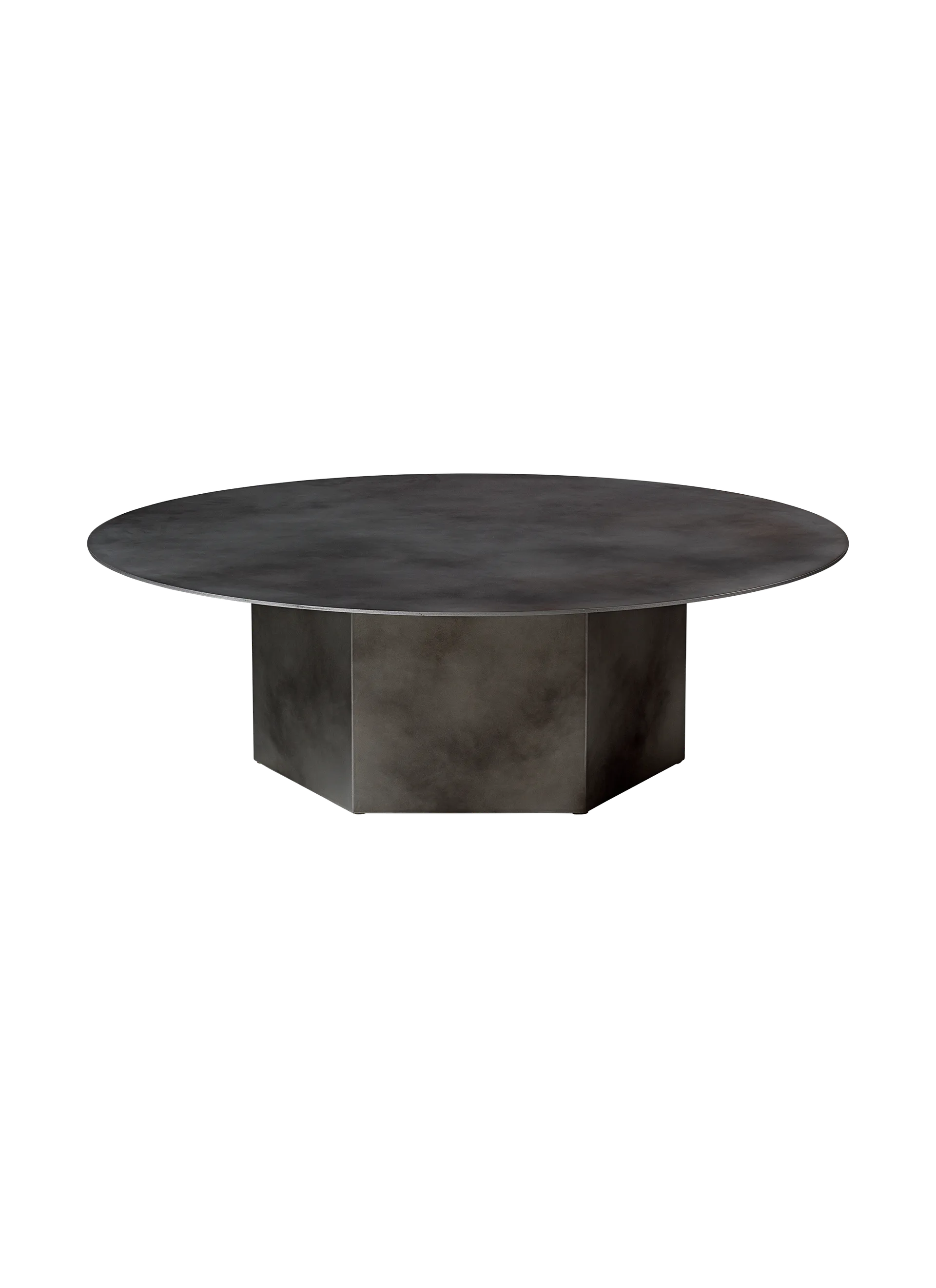 Named after the epic poems of ancient times, GamFratesi’s Epic Table for GUBI is a sculptural piece of furniture inspired by Greek columns and Roman architecture. Originally made in Italy from travertine stone, the table’s new variant marks the first time GamFratesi has worked with steel plates, which are galvanized, lacquered, and then treated with a series of hand-finishing processes to create a unique surface expression for each table. The table’s monolithic form remains, now with an industrial expression, in which a new detail can be discovered with every use. The collection brings personality to private settings and an intriguing sense of weight and tactility to public and hospitality spaces, where its resilient surfaces offer exceptional levels of durability. The varying heights and diameters within the Epic Table Collection mean a single monochromatic table can stand alone or be combined in dynamic clusters of varying material, height and color.