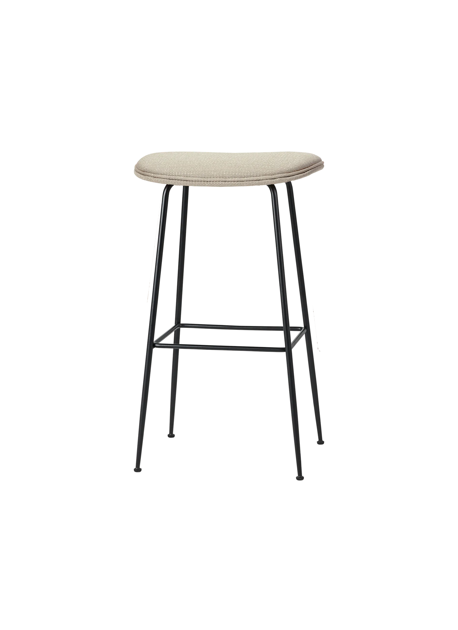 With the Beetle Bar Stool, the characteristic upholstered Beetle Chair gets a lighter appearance without a backrest. Taking its inspiration from a beetle, the bar stool has a protectively encompassing outer shell that is combined with a rounded and soft interior, providing the ultimate comfort while giving the right support. The Beetle Bar Stool by GamFratesi is designed to be used in smaller spaces like kitchens and restaurants.