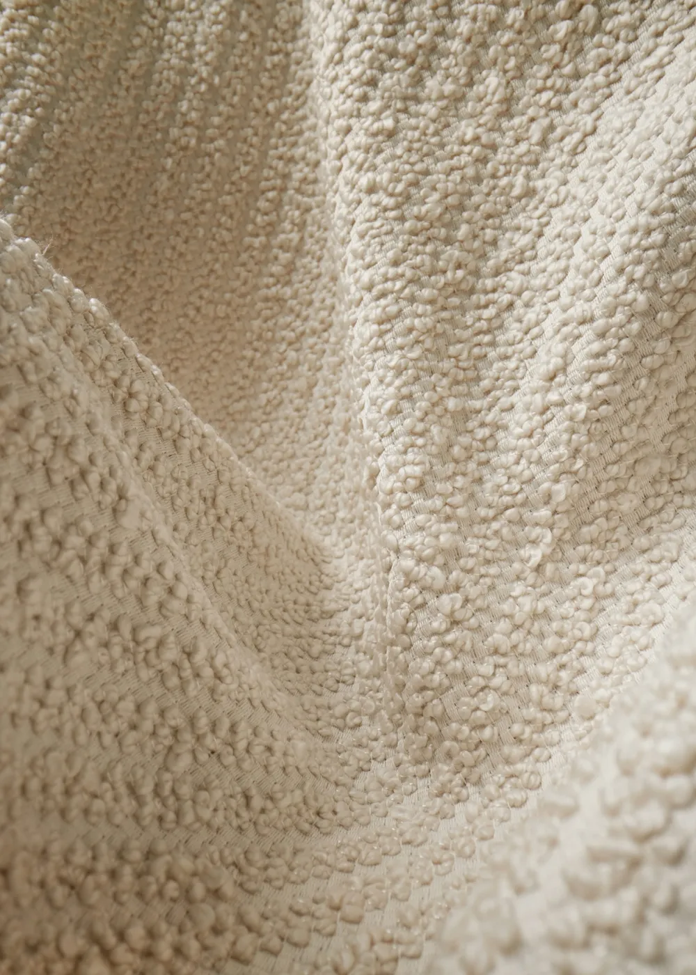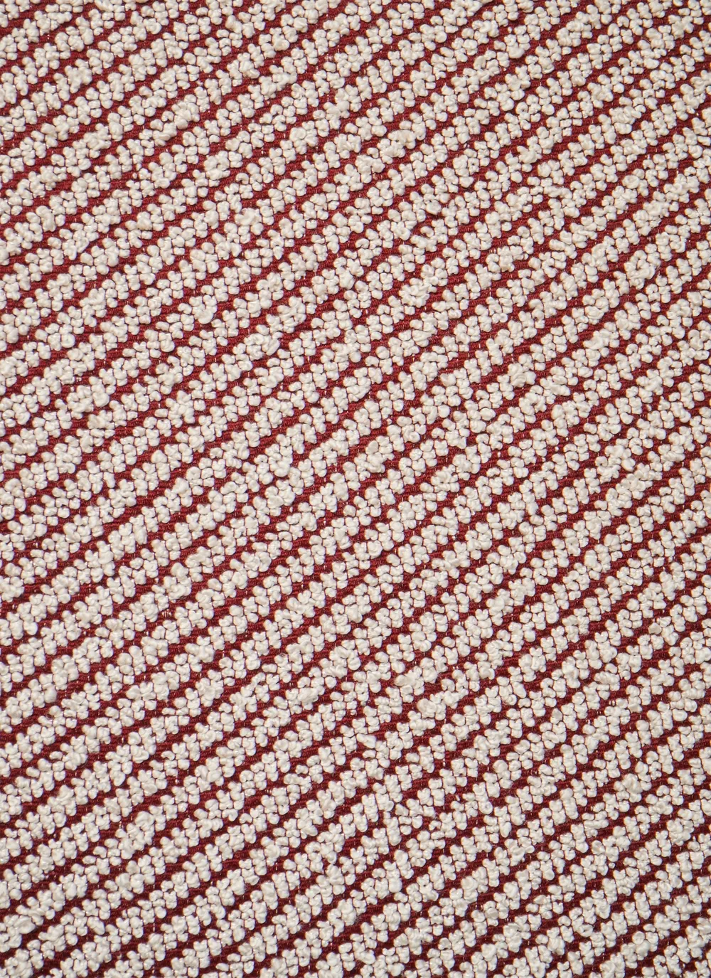 Classic, understated, and practical, GUBI’s durable bouclé features a characterful twill weave pattern of diagonal ribs. Perfectly suited for curvaceous sofas and lounge chairs, Lupo Special Diagonal Bouclé’s distinctive look and texture makes it an excellent choice for leisure areas. Joining the existing white with underlying natural tones are two new colorways – camel and burgundy. Together with the white, these additions both highlight the characteristic diagonal pattern, while the warm natural tones send a subtle nod to the earthy colors of the seventies.