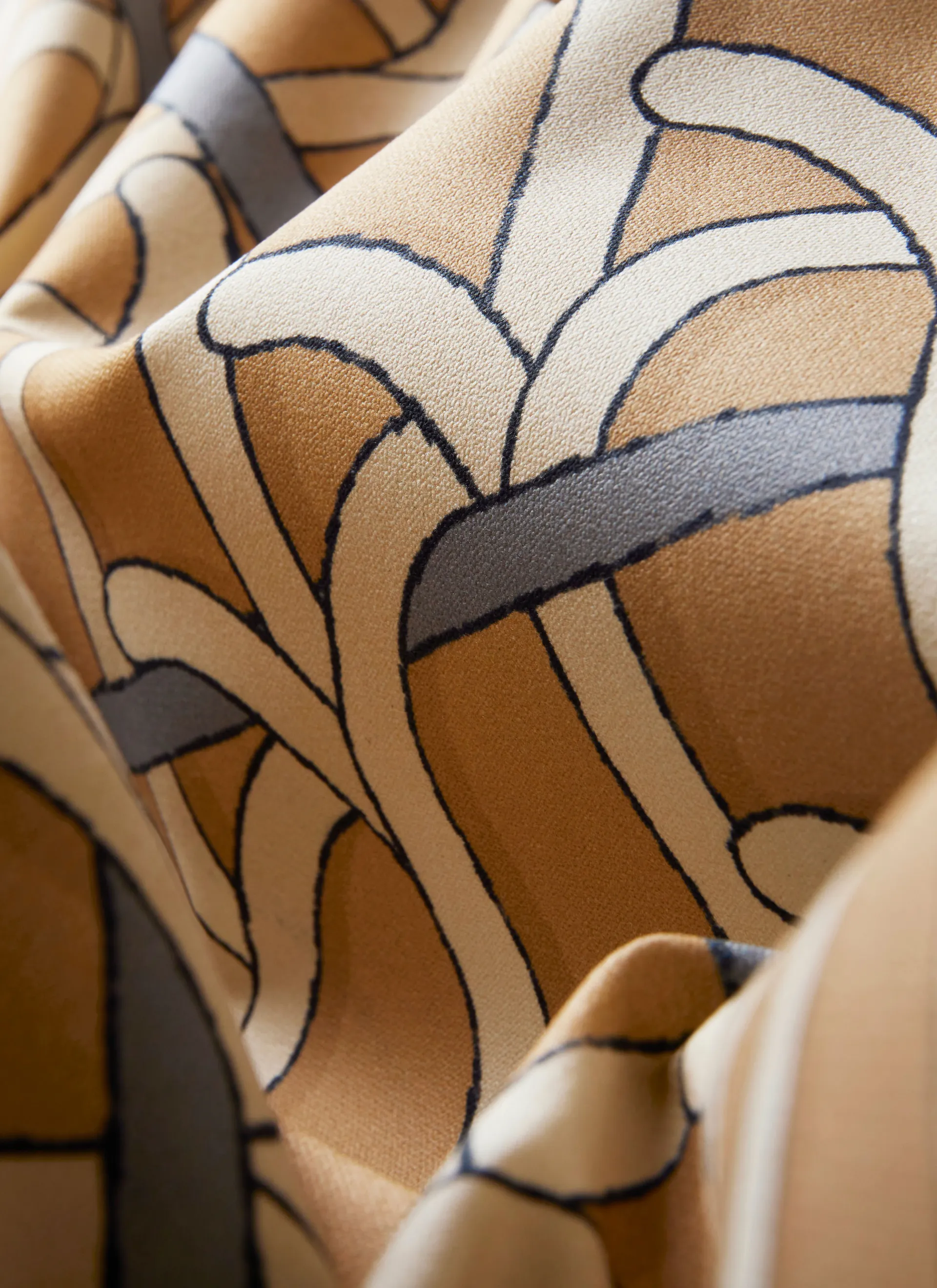 Reales Pattern is a bold evolution of Reales, a durable 100% cotton fabric handcrafted in Italy exclusively for GUBI. Created in collaboration with architect Michele De Lucchi and his Milan-based studio AMDL Circle for the Bistra Collection, the design features a rhythmic interplay of hand-drawn black lines that form a dynamic yet harmonious motif. It takes inspiration from the ceiling painted by Leonardo da Vinci in the Sala delle Asse at Milan’s Sforza Castle, which is adorned with a dense network of interwoven foliage. Reales Pattern translates the graphic lines of the design into a two-dimensional textile form, creating visual continuity between structure and upholstery. The hand-drawn style embraces the spontaneity and imperfection of a pencil sketch, lending the fabric an authentic, artisanal character. A subtle shadow layered beneath the weave adds quiet depth and dimension to the motif. The fabric is available in three distinct colorways: vibrant orange and green on beige for a lively, expressive look, silvery gray on dark olive green for a more architectural tone, and soft beige-on-beige with gray nuances for a calm, refined aesthetic. Each palette celebrates the botanical identity of the Bistra Collection, bringing a fresh, expressive accent to any interior.