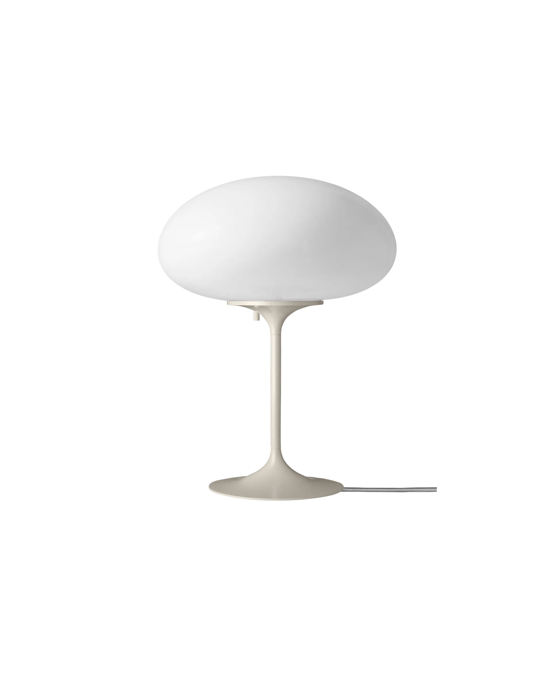 Opal glass was central to Bill Curry’s vision for Stemlite. Chosen for its smooth surface and balanced light diffusion, it gives the lamp a distinctive, refined presence. The glossy finish reflects its surroundings with gentle softness when unlit, and transforms when illuminated, diffusing light evenly across the globe.